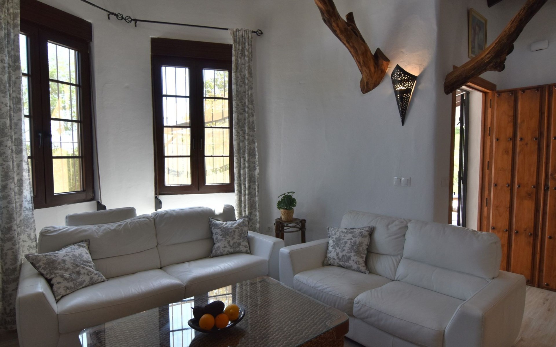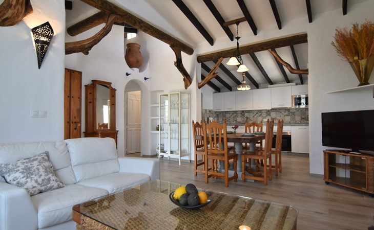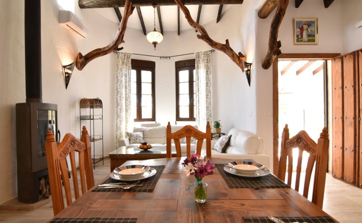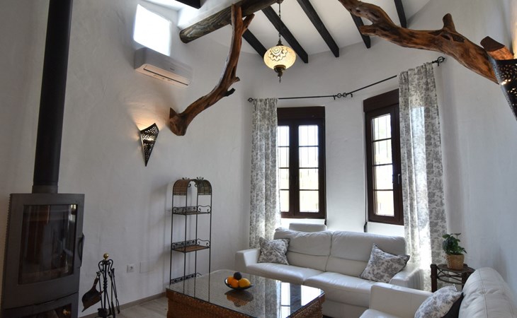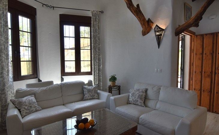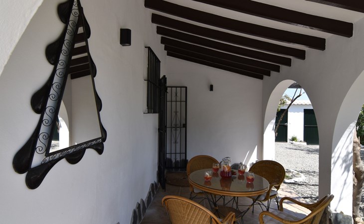 Wenn Sie das Eingangstor öffnen und das Gelände betreten, finden Sie sich in einem rustikalen, weißen andalusischen Bauernhaus wieder. Klein, aber fein, mit den natürlichen Holzdächern der Gegend und allen modernen Annehmlichkeiten, aber dennoch schlicht. Dies schafft eine romantische und zugleich spirituelle Atmosphäre, die Sie immer wieder anzieht.