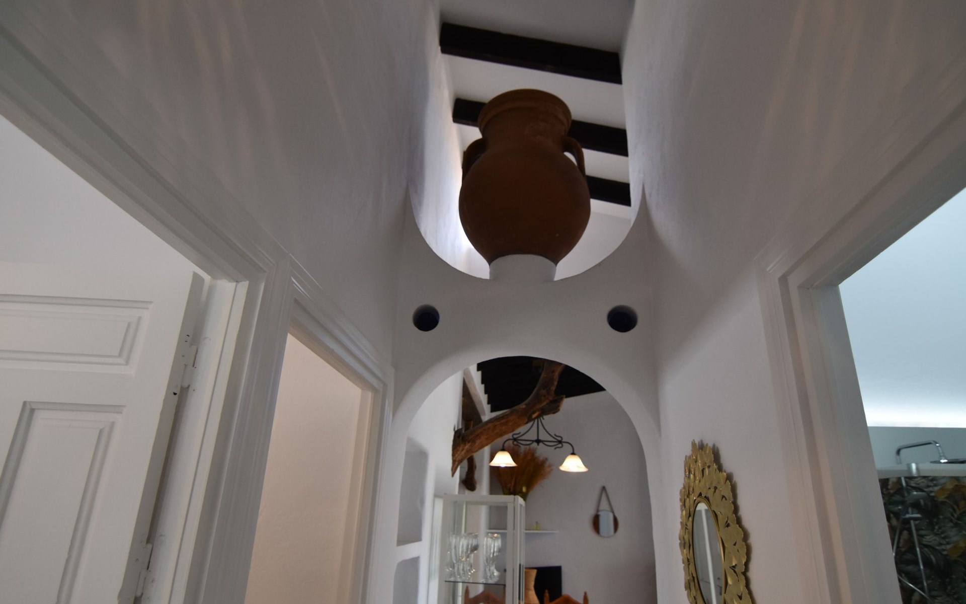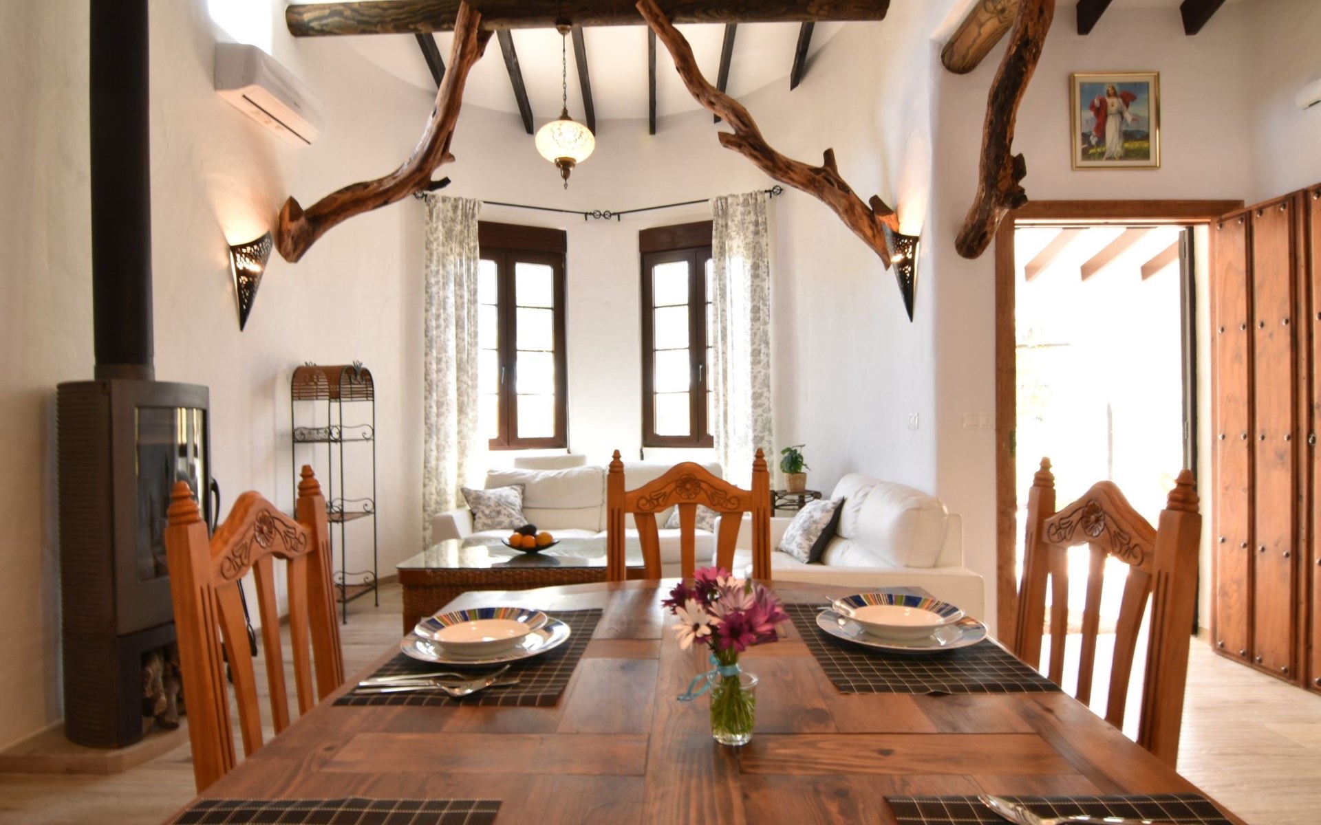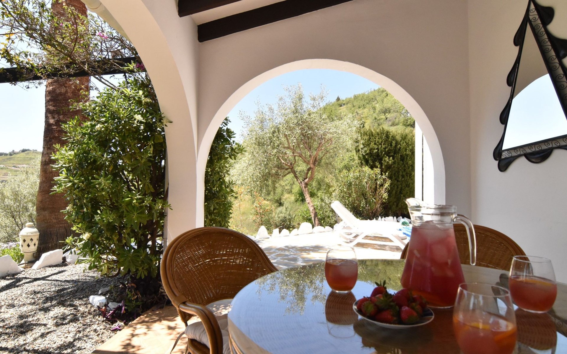 Wenn Sie das Eingangstor öffnen und das Gelände betreten, finden Sie sich in einem rustikalen, weißen andalusischen Bauernhaus wieder. Klein, aber fein, mit den natürlichen Holzdächern der Gegend und allen modernen Annehmlichkeiten, aber dennoch schlicht. Dies schafft eine romantische und zugleich spirituelle Atmosphäre, die Sie immer wieder anzieht.