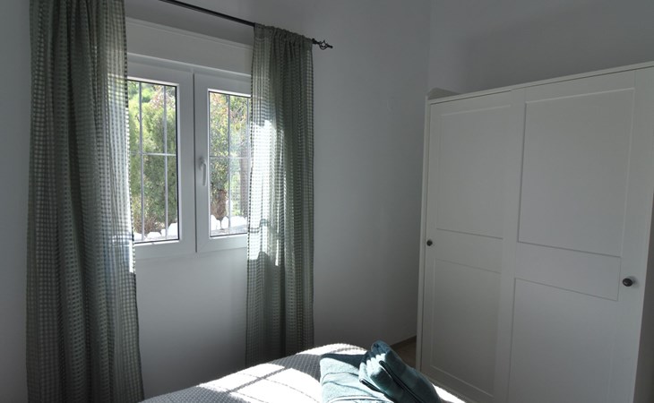 Das Haus, das erst kürzlich von Grund auf renoviert wurde, besteht aus einem geräumigen Wohnzimmer (mit Klimaanlage), einer voll ausgestatteten offenen Küche und drei kleinen, aber gemütlichen Schlafzimmern. Das erste Schlafzimmer ist ein Einzelzimmer mit Etagenbett (ohne Klimaanlage), das zweite Schlafzimmer hat ein Kingsize-Bett (150 cm), Klimaanlage und einen Kleiderschrank, und das dritte Schlafzimmer hat ebenfalls ein Doppelbett (135 cm), Klimaanlage und einen Kleiderschrank. Ein geräumiges neues Badezimmer mit einem intelligenten Spiegel und einer Regendusche bietet ein verjüngendes Erlebnis.