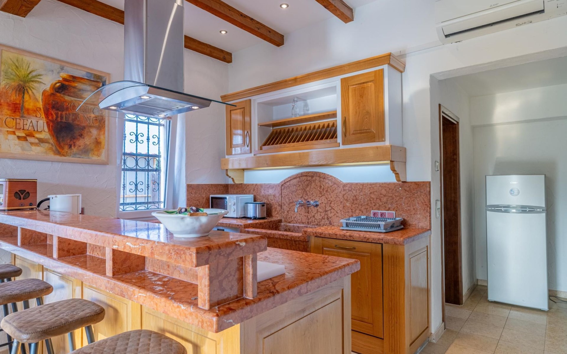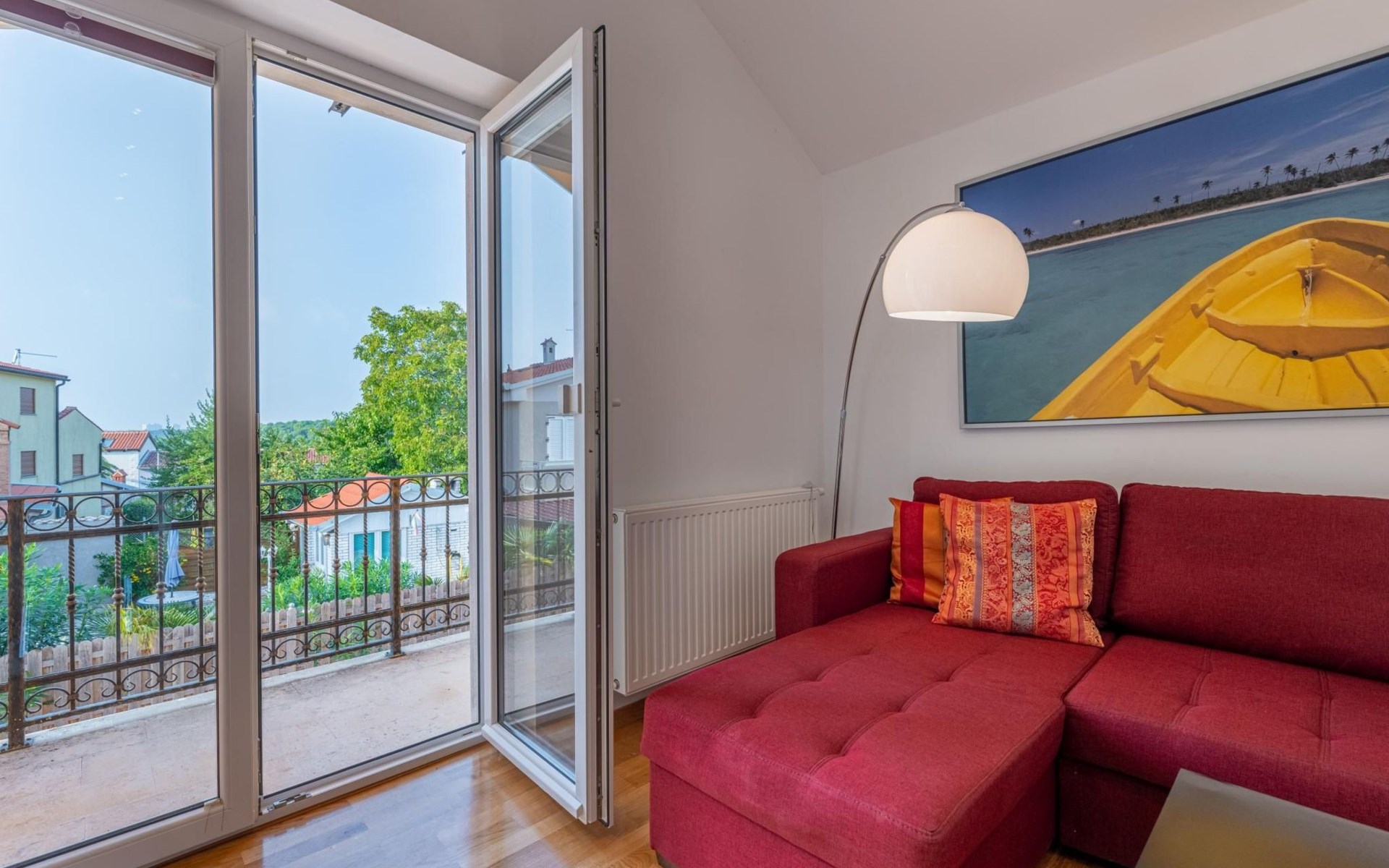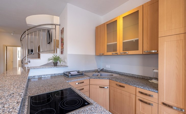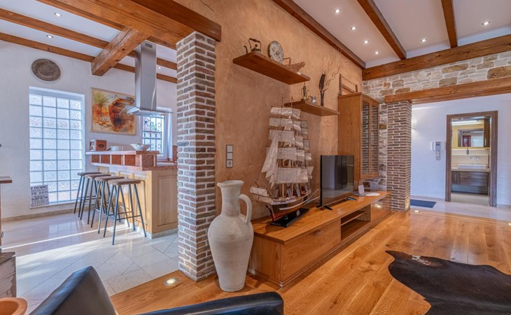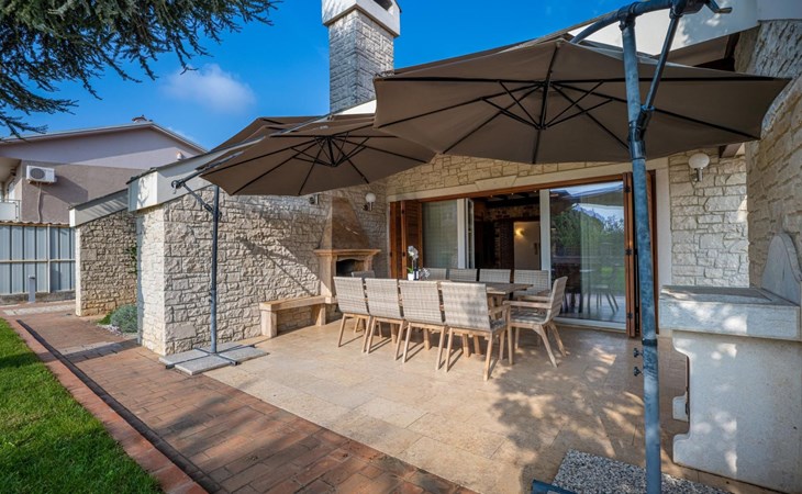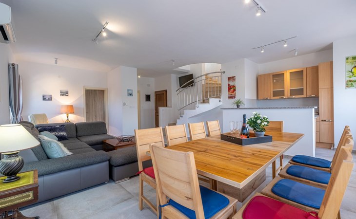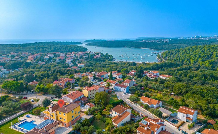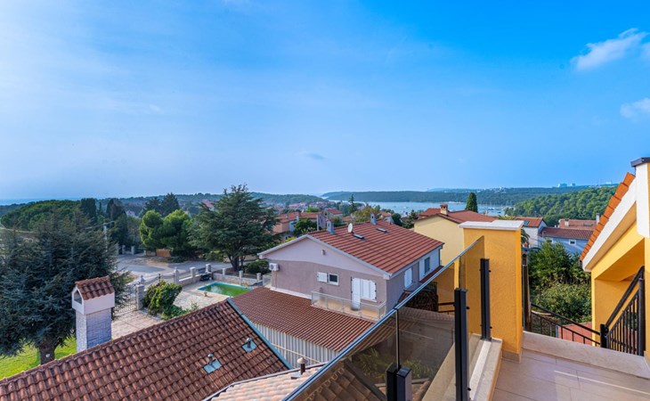 Das Haus befindet sich auf einem der höher gelegenen Aussichtspunkte in Banjole und bietet einen Blick auf das Meer.