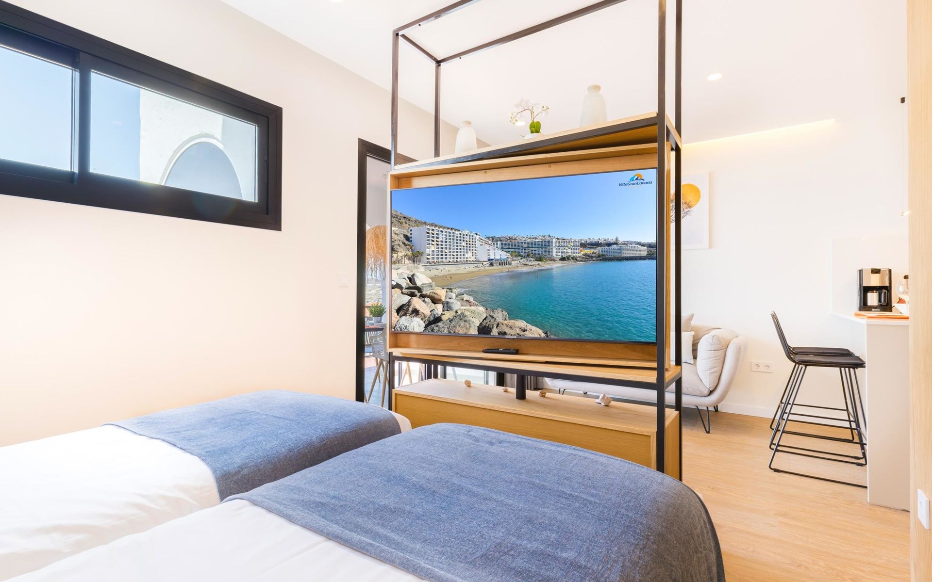Appartementhaus. Im Ort Arguineguín, zentrale, sonnige Lage, 2 km vom Meer, 2 km vom Strand. Zur Mitbenutzung: Schwimmbad eckig (saisonale Verfügbarkeit: 01.Jan. - 31.Dez.). Aussendusche, öffentliches Parkhaus. Bushaltestelle "Aguamarina" 4 km. Der Besitzer akzeptiert keine Jugendgruppen. Die Nachbarschaft ist sehr lärmempfindlich. Ruhe und gutes Benehmen wird erwartet. Bei später Anreise sind folgende Gebühren in bar zu bezahlen: 20:30-22:00: 30€, 22:00-00:00: 50€, 00:00-01:30: 80€.