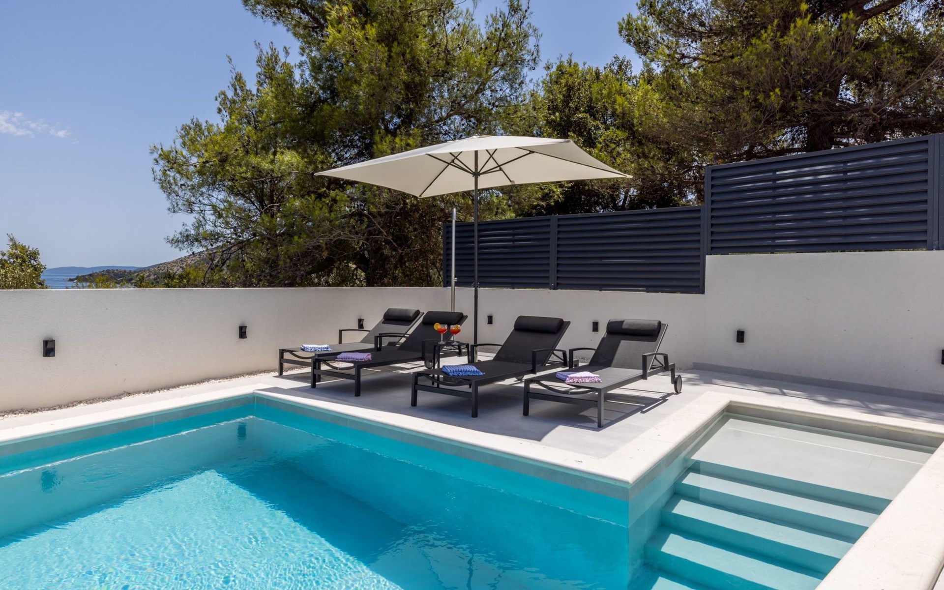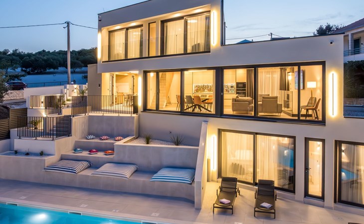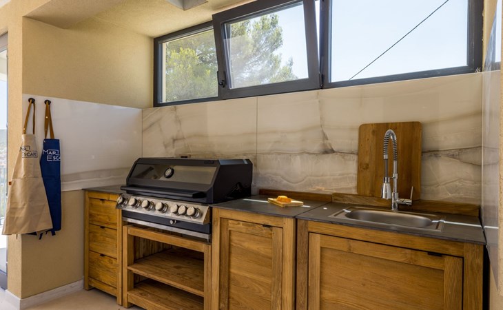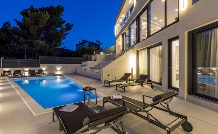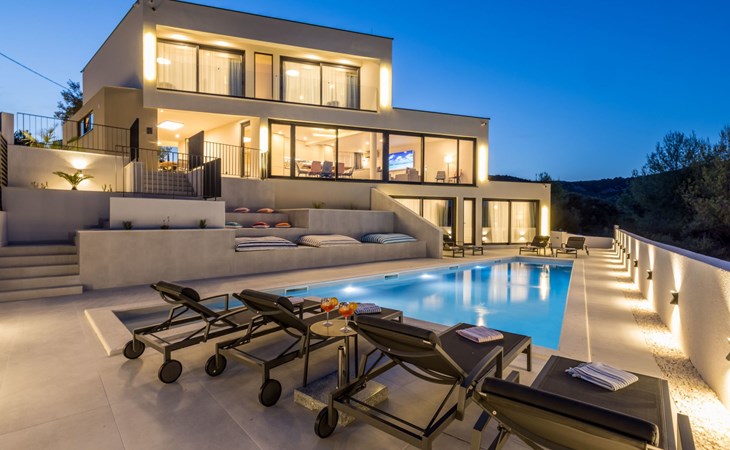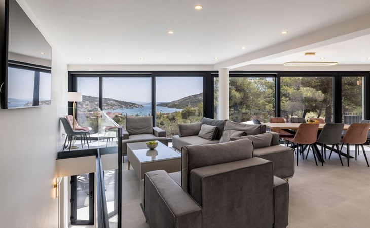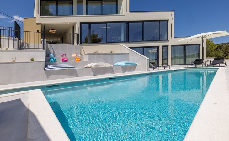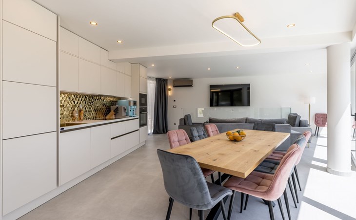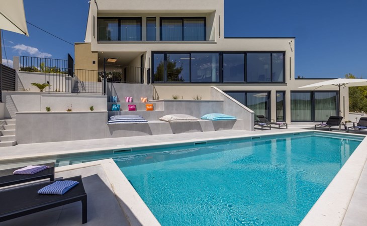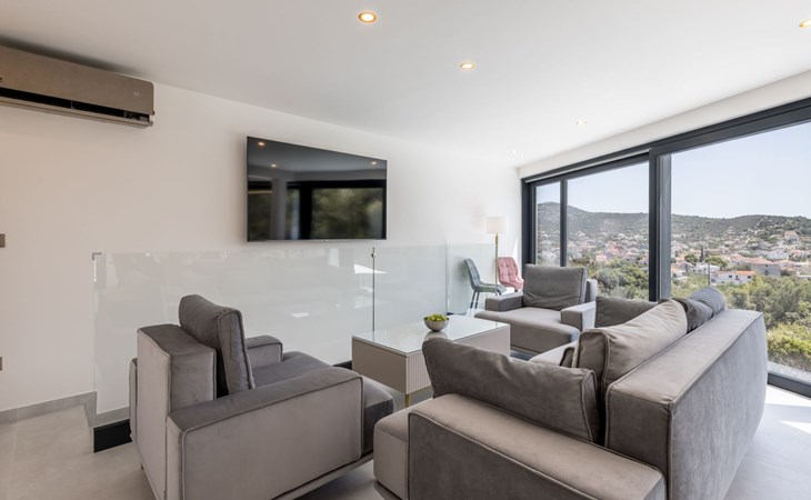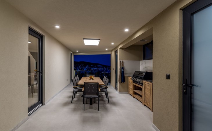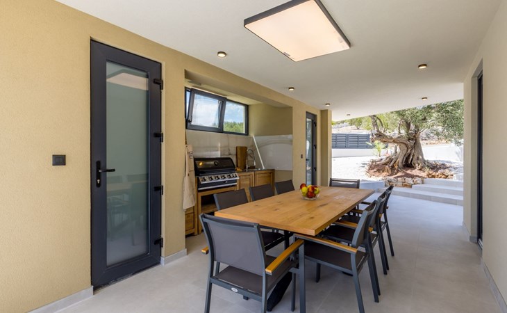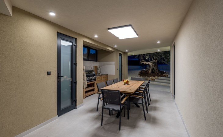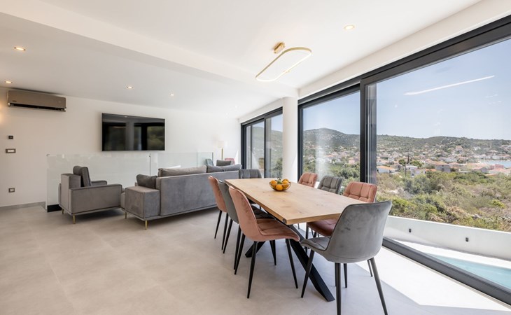 Der Außenbereich dieses Anwesens ist ebenso einladend, mit einer überdachten Küche mit Gasgrill und einem großen Pool mit großzügigem Lounge-Bereich, der Ihnen zur alleinigen Nutzung zur Verfügung steht. Die Villa ist komplett eingezäunt, was sie zu einem sicheren Ort für Ihre kleinen Hunde macht. Die beiden Schlafzimmer im Obergeschoss verfügen über einen Balkon, auf dem Sie die frische dalmatinische Luft in aller Ruhe genießen können.