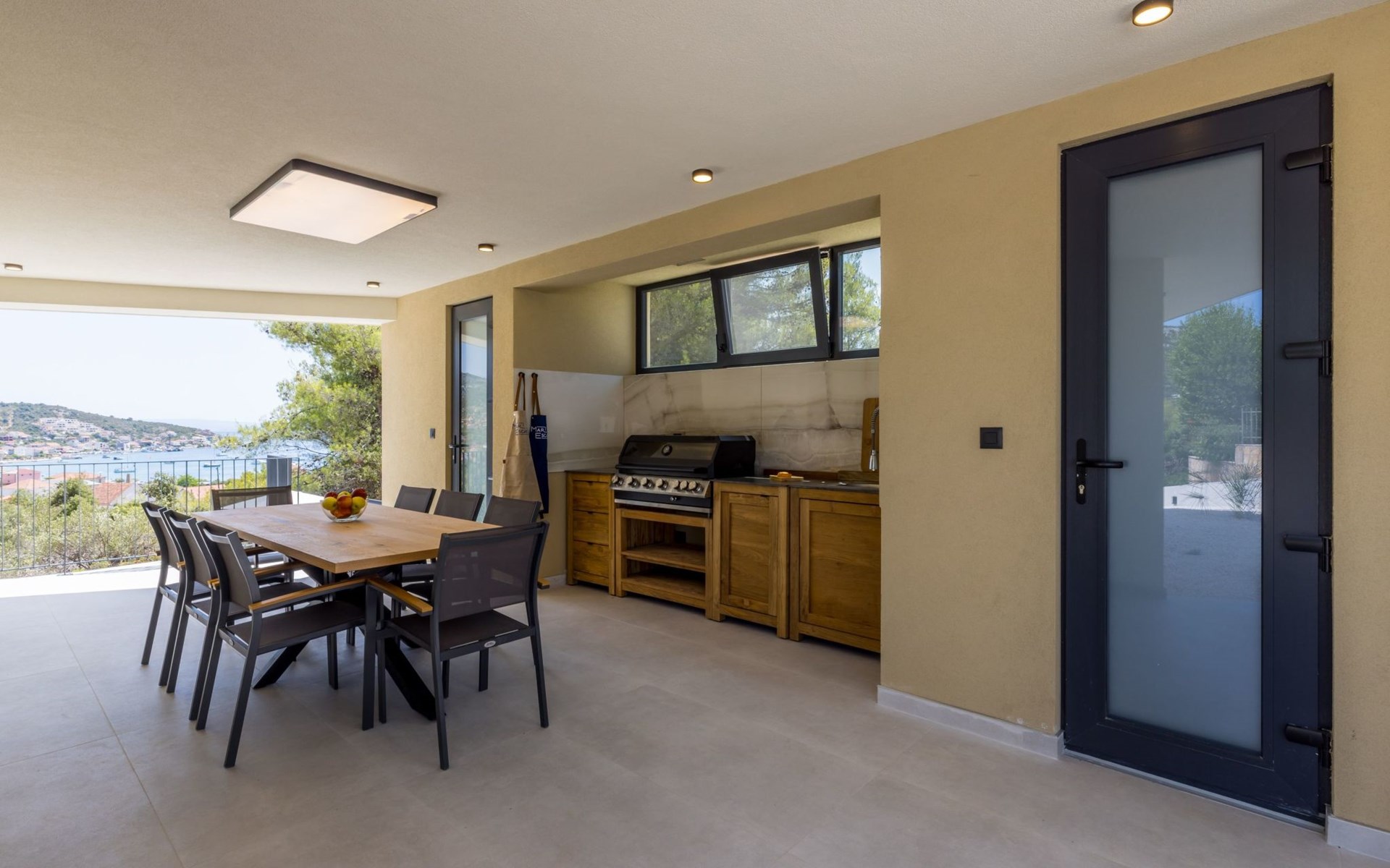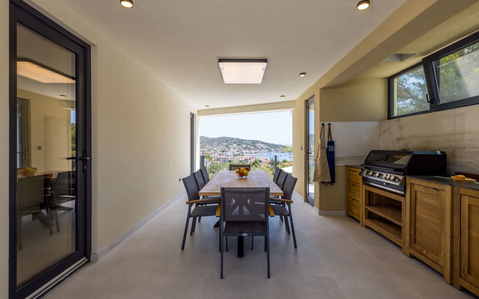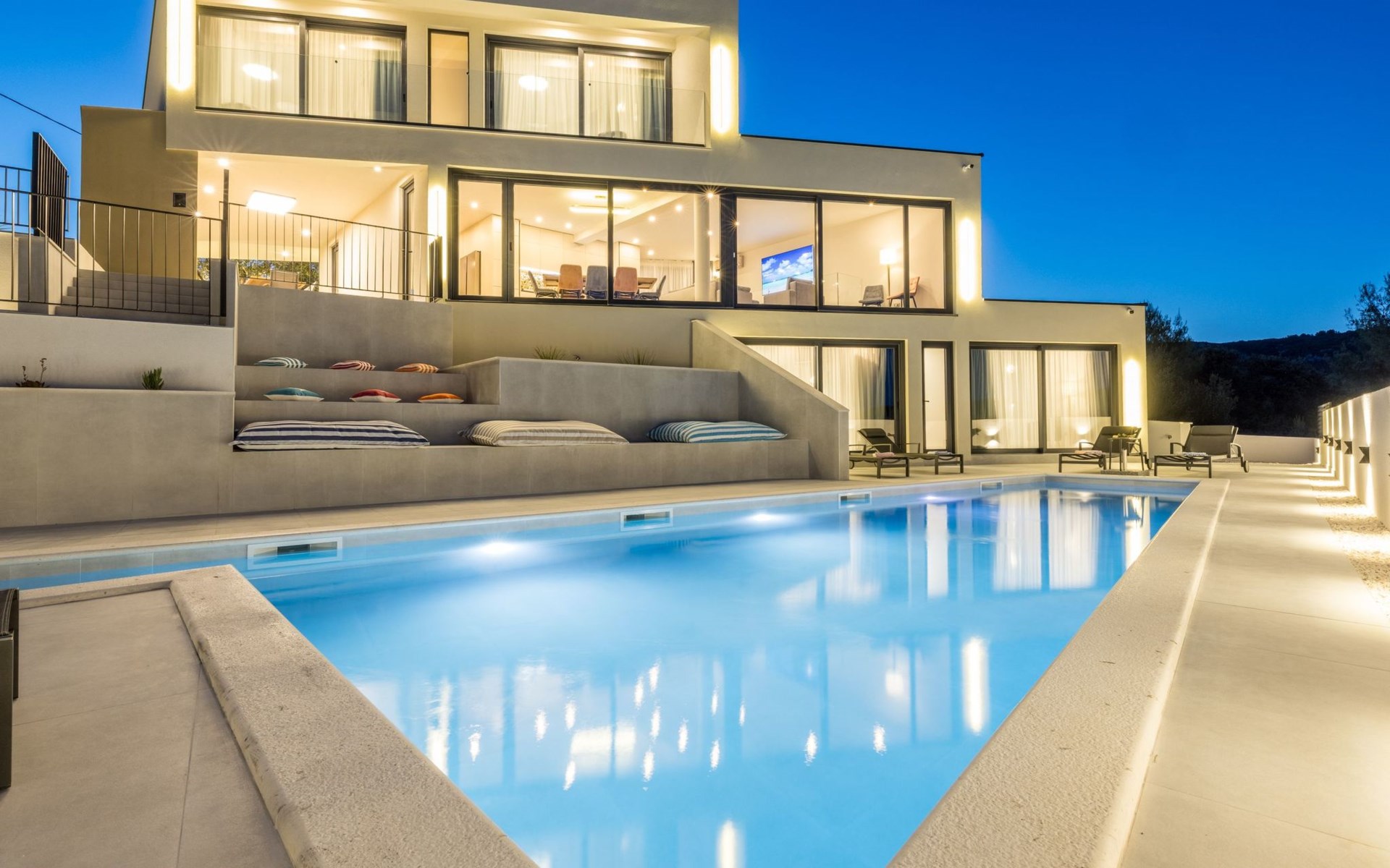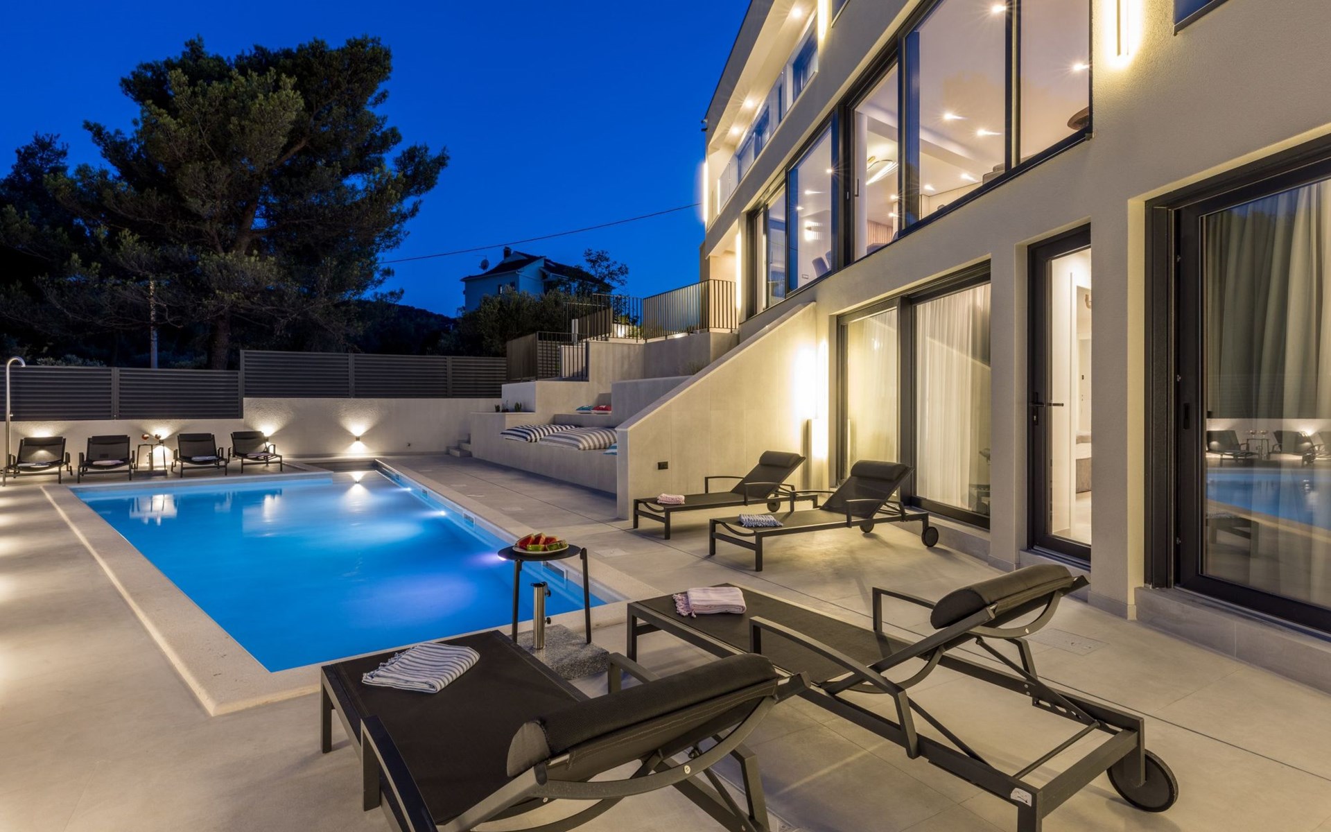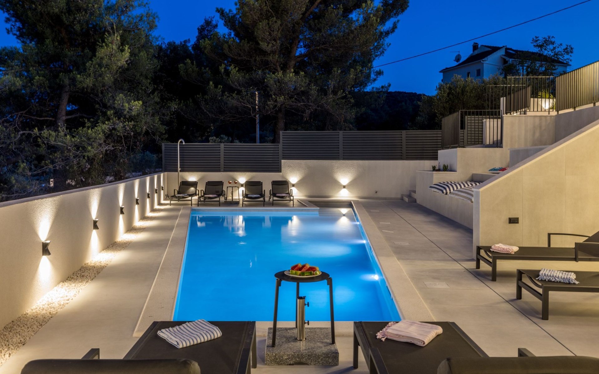 Der Außenbereich dieses Anwesens ist ebenso einladend, mit einer überdachten Küche mit Gasgrill und einem großen Pool mit großzügigem Lounge-Bereich, der Ihnen zur alleinigen Nutzung zur Verfügung steht. Die Villa ist komplett eingezäunt, was sie zu einem sicheren Ort für Ihre kleinen Hunde macht. Die beiden Schlafzimmer im Obergeschoss verfügen über einen Balkon, auf dem Sie die frische dalmatinische Luft in aller Ruhe genießen können.