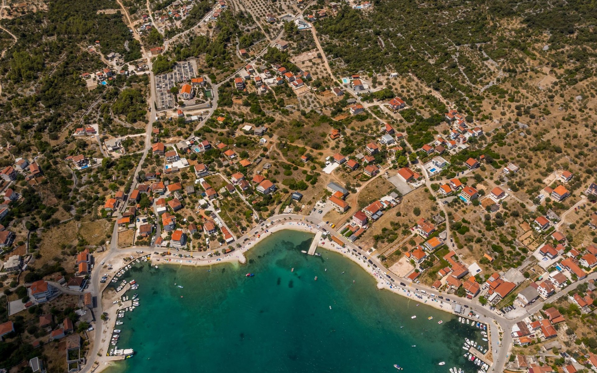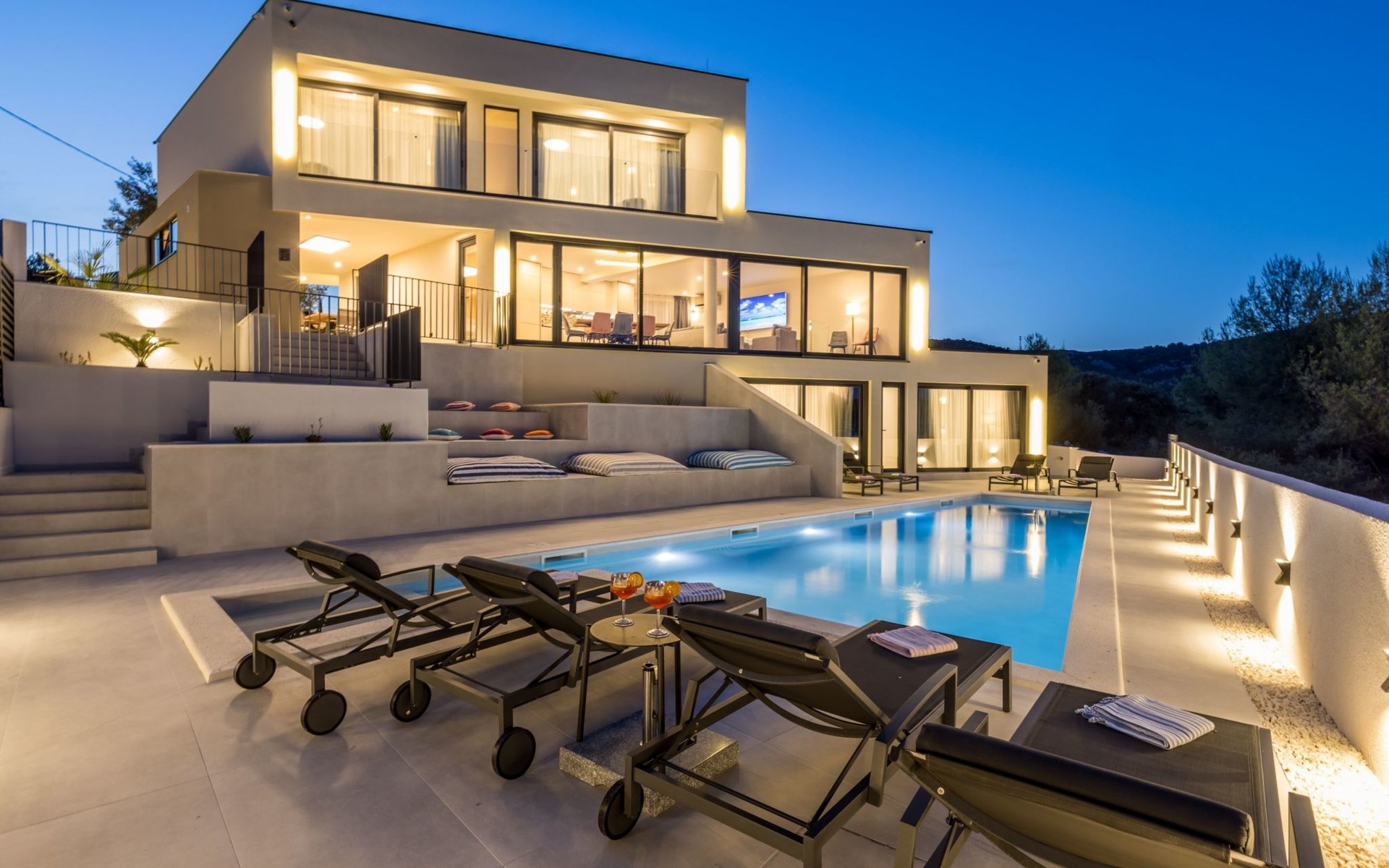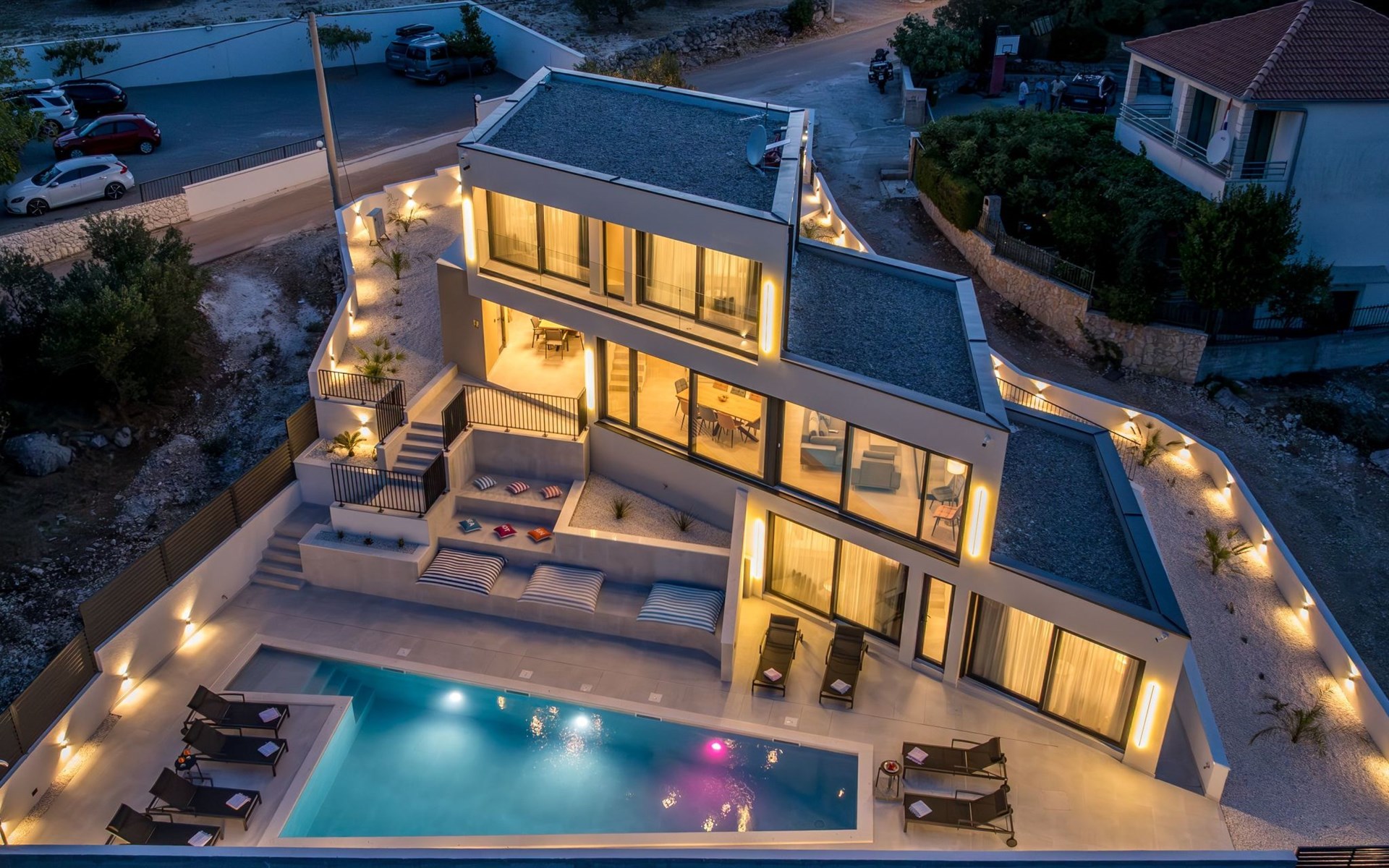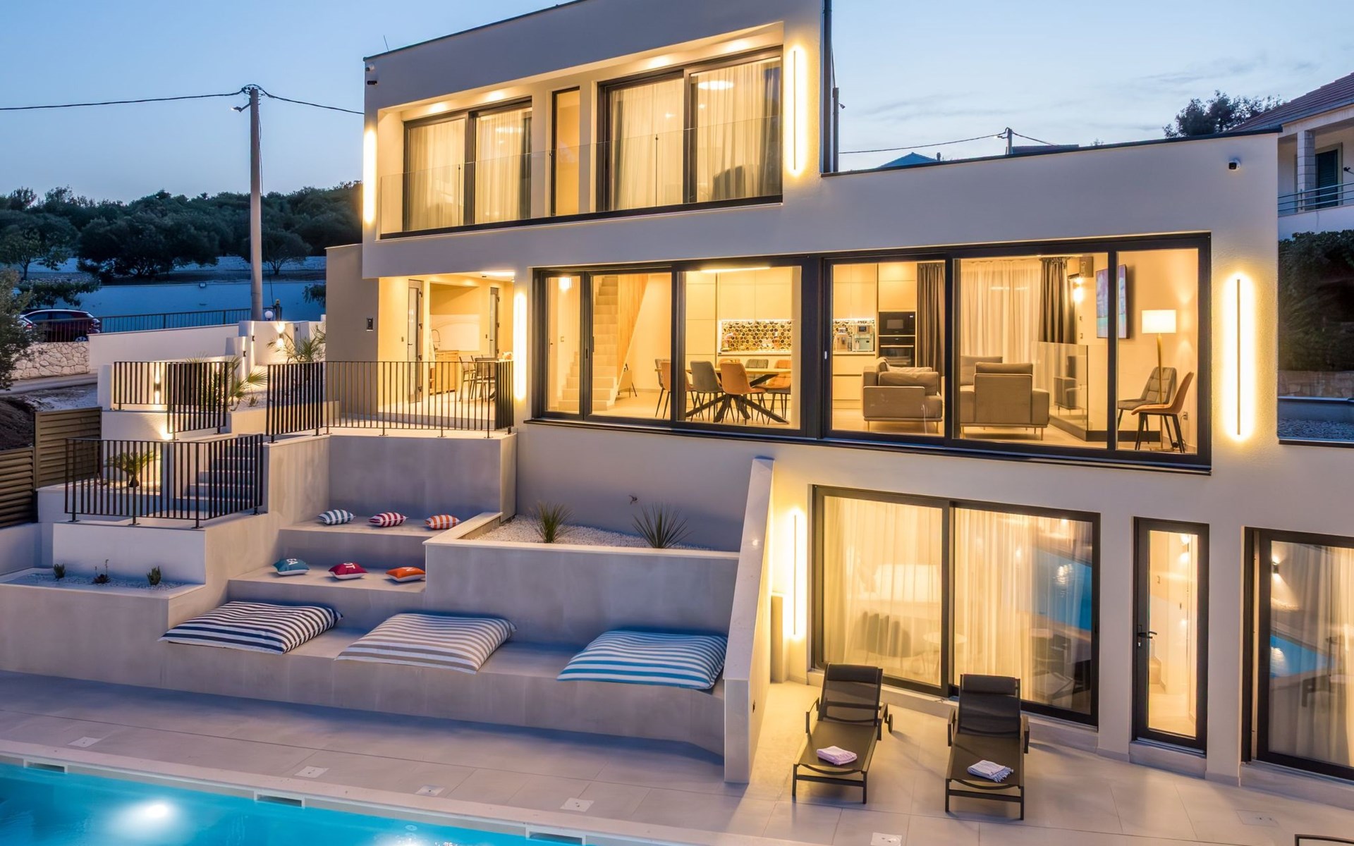 Der Außenbereich dieses Anwesens ist ebenso einladend, mit einer überdachten Küche mit Gasgrill und einem großen Pool mit großzügigem Lounge-Bereich, der Ihnen zur alleinigen Nutzung zur Verfügung steht. Die Villa ist komplett eingezäunt, was sie zu einem sicheren Ort für Ihre kleinen Hunde macht. Die beiden Schlafzimmer im Obergeschoss verfügen über einen Balkon, auf dem Sie die frische dalmatinische Luft in aller Ruhe genießen können.