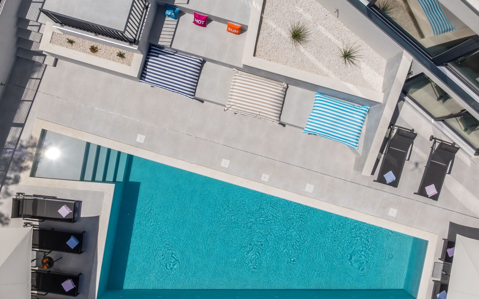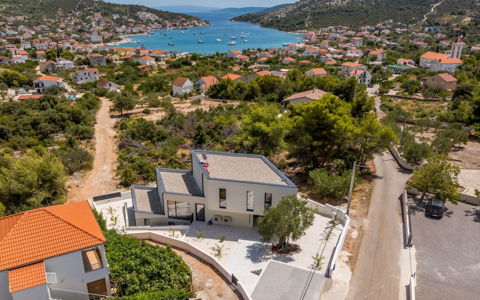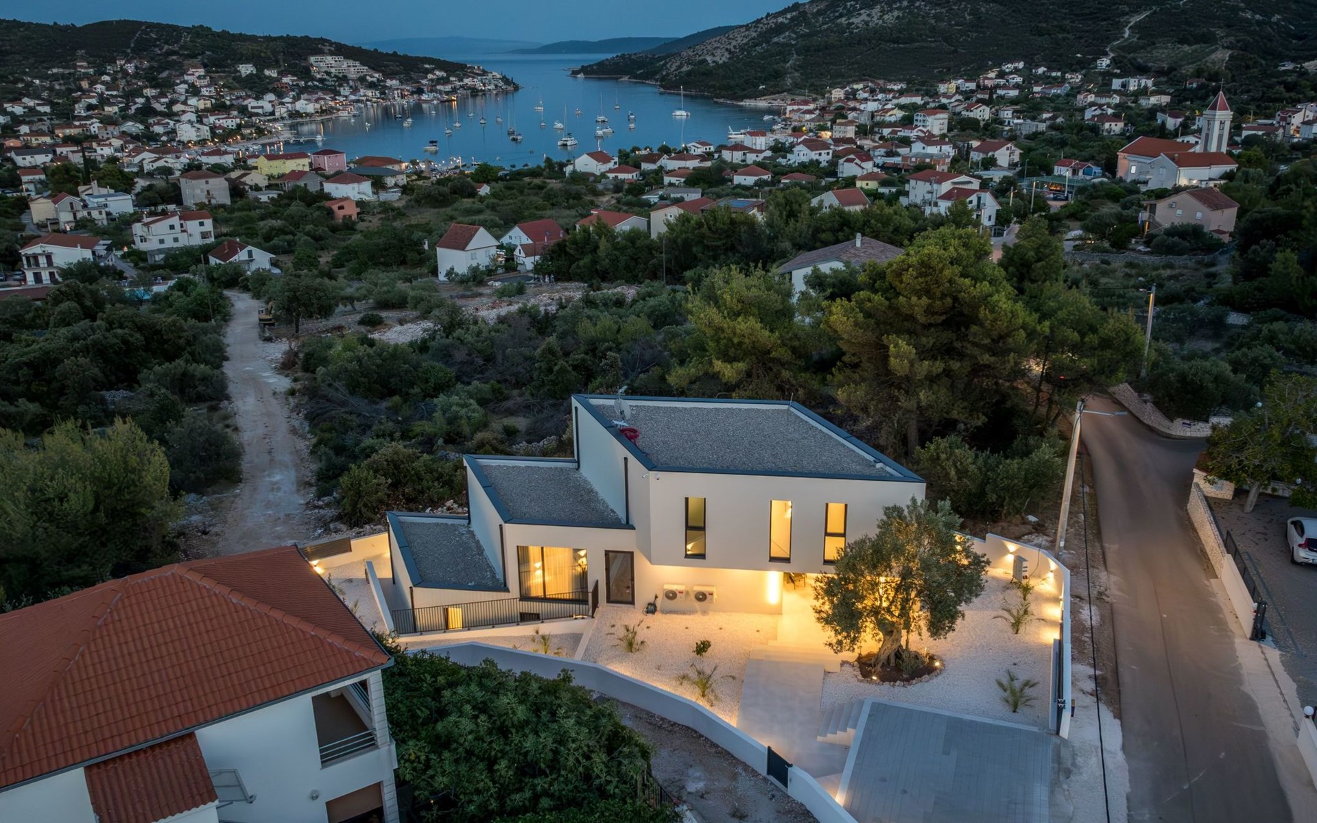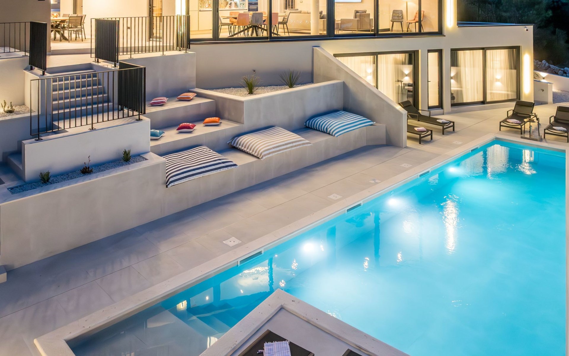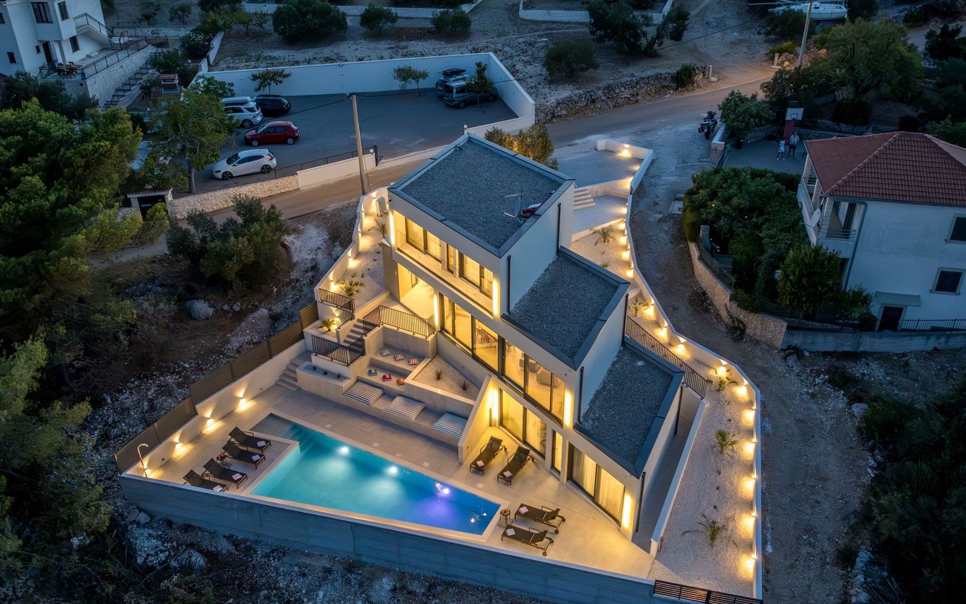 Der Außenbereich dieses Anwesens ist ebenso einladend, mit einer überdachten Küche mit Gasgrill und einem großen Pool mit großzügigem Lounge-Bereich, der Ihnen zur alleinigen Nutzung zur Verfügung steht. Die Villa ist komplett eingezäunt, was sie zu einem sicheren Ort für Ihre kleinen Hunde macht. Die beiden Schlafzimmer im Obergeschoss verfügen über einen Balkon, auf dem Sie die frische dalmatinische Luft in aller Ruhe genießen können.