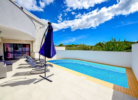 Der Außenbereich dieses Anwesens ist ebenso einladend, mit einer überdachten Küche mit Gasgrill und einem großen Pool mit großzügigem Lounge-Bereich, der Ihnen zur alleinigen Nutzung zur Verfügung steht. Die Villa ist komplett eingezäunt, was sie zu einem sicheren Ort für Ihre kleinen Hunde macht. Die beiden Schlafzimmer im Obergeschoss verfügen über einen Balkon, auf dem Sie die frische dalmatinische Luft in aller Ruhe genießen können.