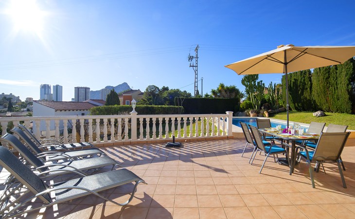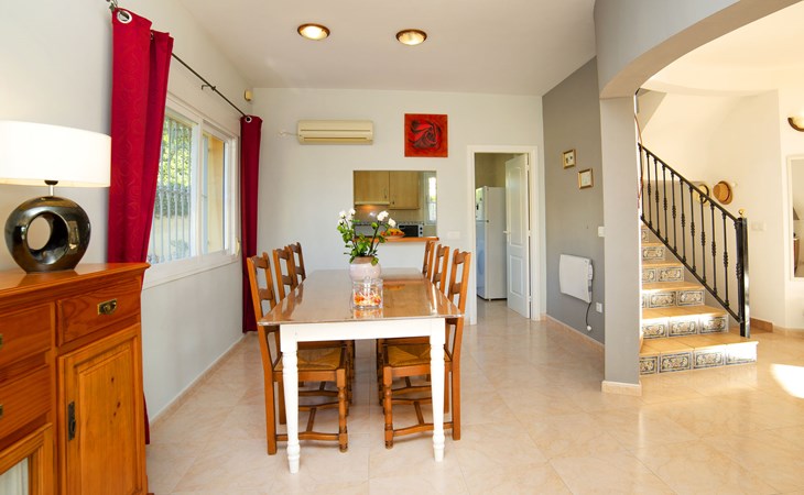 Costeres 1 km von Playa La Fossa: Grosses, kinderfreundliches Haus "Hawaii", auf 2 Stockwerken. Ausserhalb des Ortes, 3 km vom Zentrum von Calpe, im Bezirk Costeres, ruhige Lage im Villenviertel, 900 m vom Meer, vom Strand. Zur Alleinbenutzung: Grundstück 800 m2 (eingezäunt) mit Rasen, Naturgarten, Schwimmbad (8 x 4 m, 100 - 200 cm tief, saisonale Verfügbarkeit: 01.Jan. - 31.Dez.) mit Innentreppe. Aussendusche, Gartenmöbel, Grill, Parkplatz auf dem Grundstück. Einkaufsgeschäft 1 km, Lebensmittelgeschäft 1 km, Supermarkt 1 km, Restaurant, Bar, Café 750 m, Biergarten 750 m, Zentrum zu Fuss in 43 Minuten erreichbar, Bushaltestelle "Bus Local" 750 m, Sandstrand "Playa de la Fossa" 1.1 km, Tauchzentrum 2.5 km, Badebucht 900 m. Sporthafen 2.5 km, Jacht-Hafen 2.5 km, Golfplatz (9 Loch) 9.7 km, Surfschule 2.5 km, Segelschule 2.5 km, Tennis 2.5 km. Nahe gelegene Sehenswürdigkeiten: Peñon de Ifach 2.5 km, Salinas de Calpe 2.3 km. Wandergebiete: Siera de Olta 10.2 km, Sierra de Bernia 22.2 km, Sendero Calalga 900 m. Bitte beachten: geeignet für Familien. Jugendgruppen nur auf Anfrage. Die Nachbarschaft ist sehr lärmempfindlich. Ruhe und gutes Benehmen wird erwartet.
