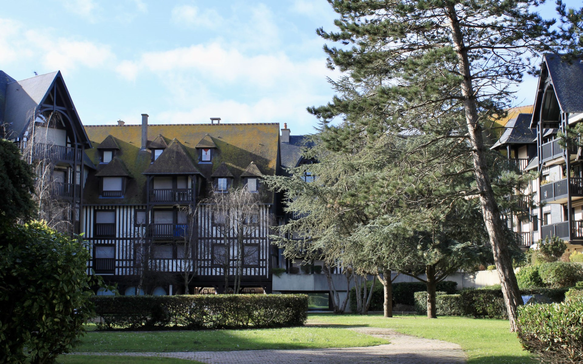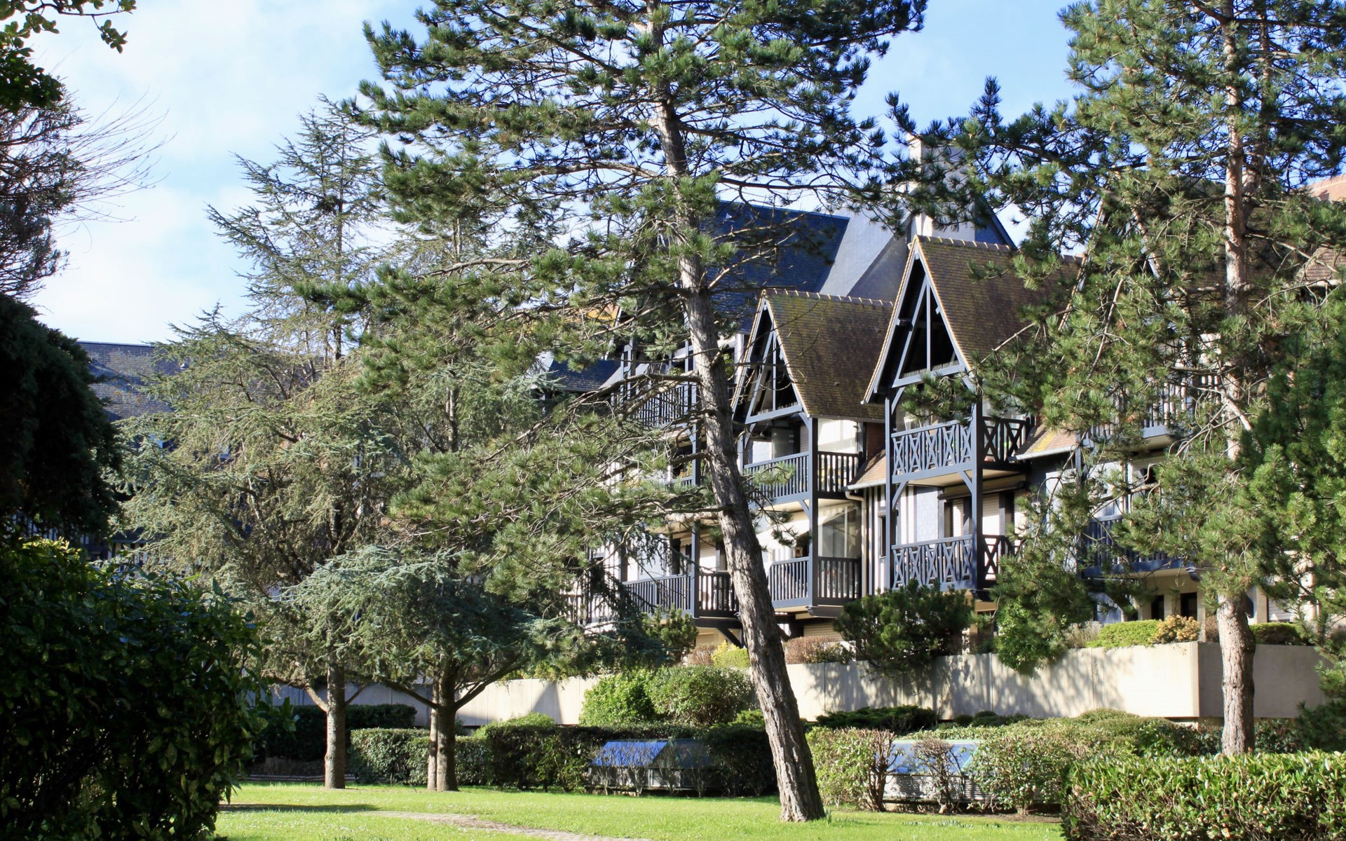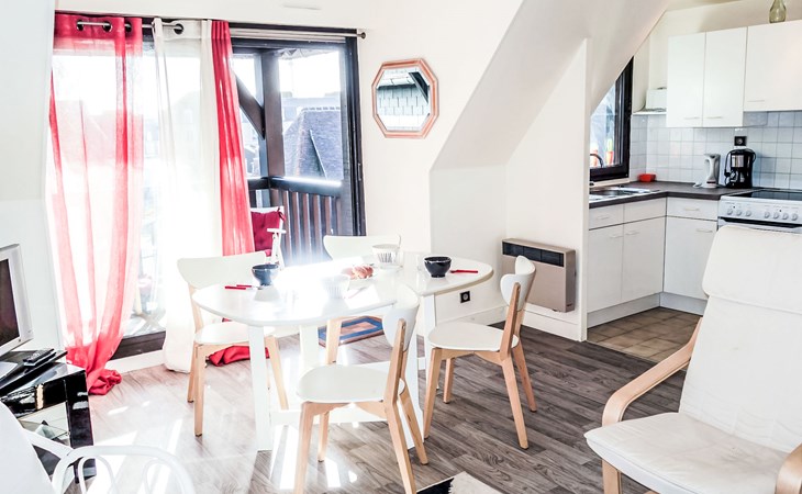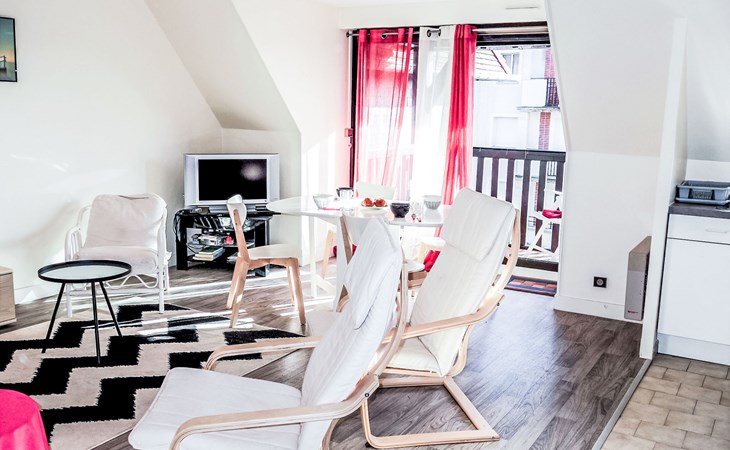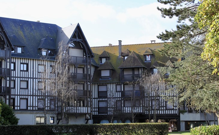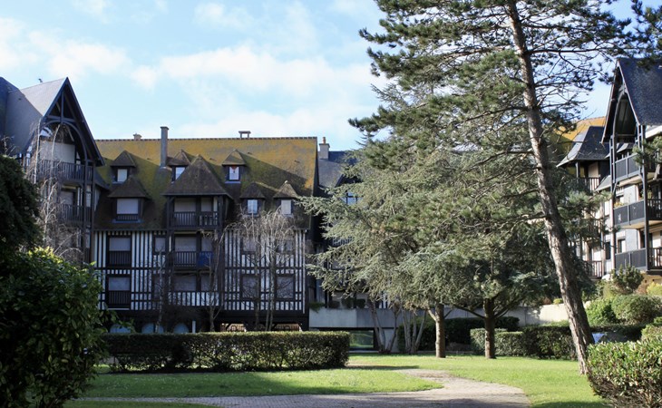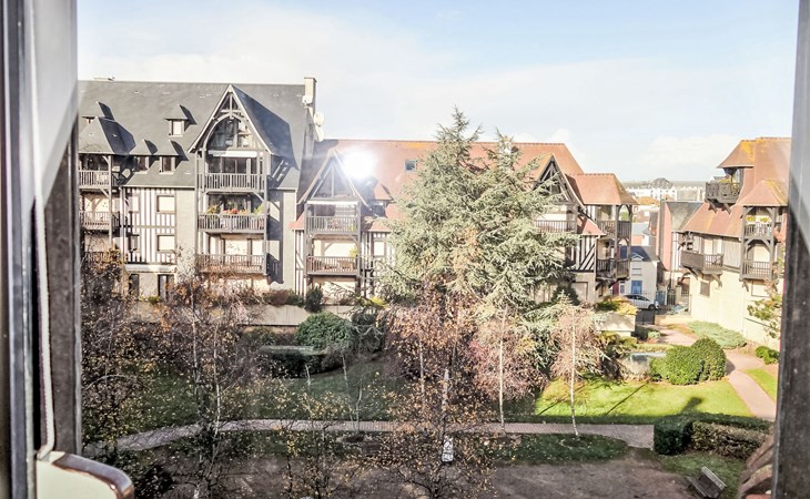 Deauville: Schöne Residenz "Les Jardins du Yacht Club". Zentrale Lage, 900 m vom Meer, 900 m vom Strand. In der Anlage: Fahrstuhl. (5 Stufen). Einkaufsgeschäft, Lebensmittelgeschäft 200 m, Supermarkt 400 m, Restaurant 200 m, Bushaltestelle "Yacht Club - Marché" 200 m, Bahnstation "Deauville - Trouville" 400 m, Hallenbad 1 km, Thermalbad "Deauville" 1 km. Golfplatz (18 Loch) 3.9 km, Tennis 1 km, Reitstall 1 km. Nahe gelegene Sehenswürdigkeiten: Centre International Deauville - CID 900 m, Hippodrome Deauville - La Touques 900 m, Mémorial de Caen 54 km, Plages du débarquement d'Arromanches 82 km. Die Schlüsselübergabe findet bei der Agentur Interhome in Deauville statt.