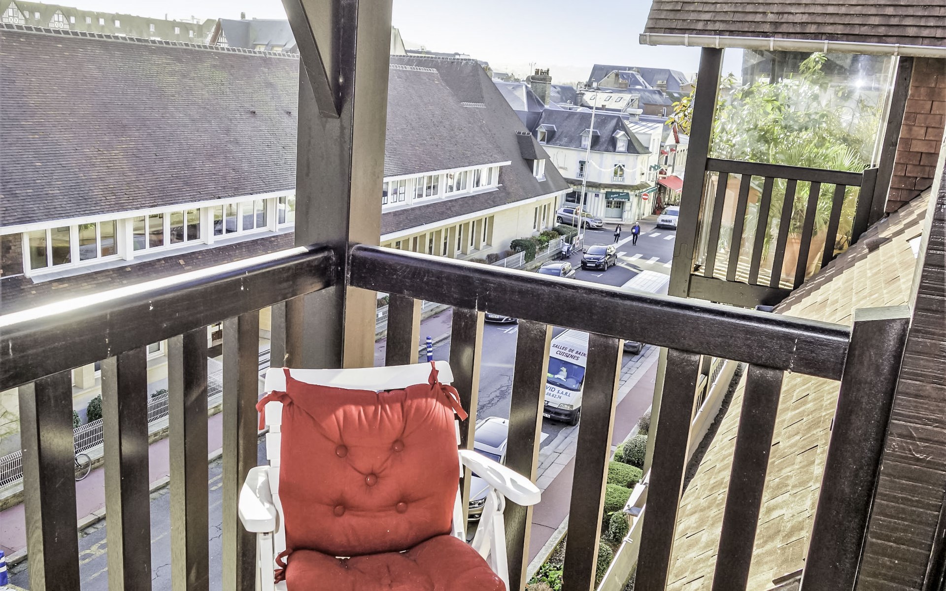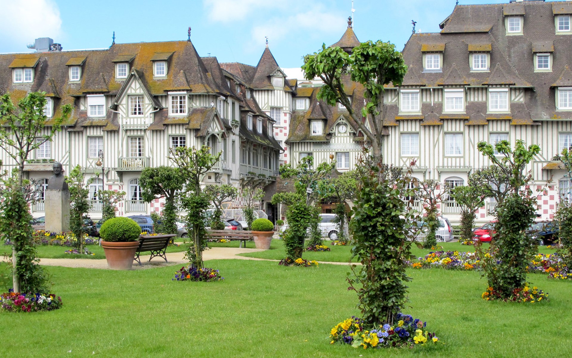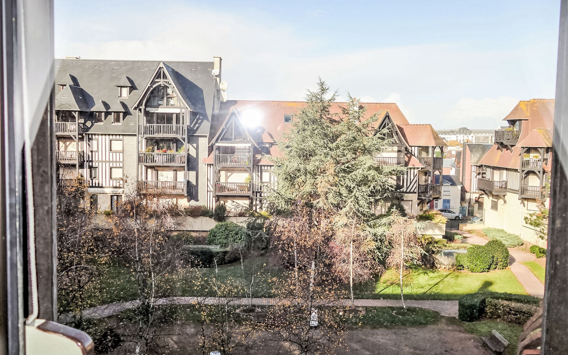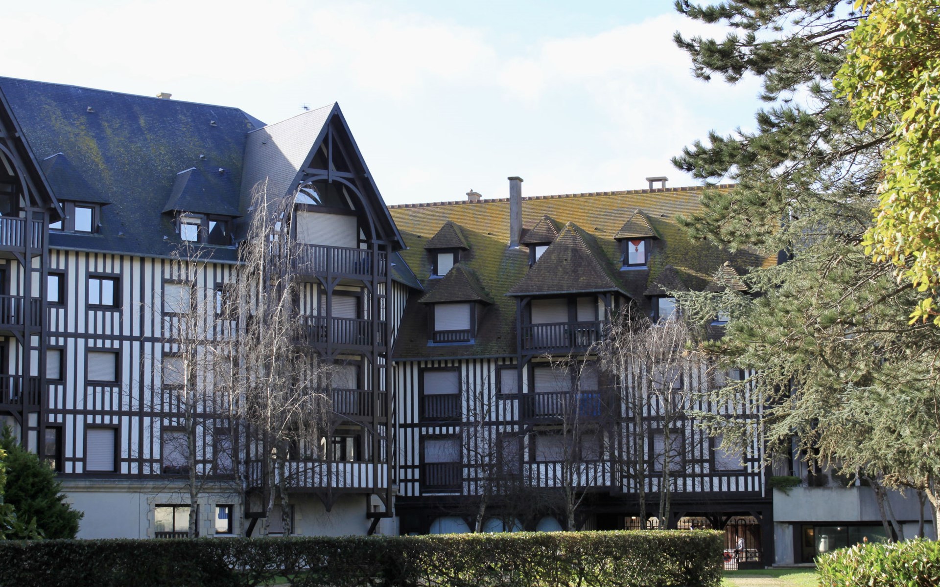 Deauville: Schöne Residenz "Les Jardins du Yacht Club". Zentrale Lage, 900 m vom Meer, 900 m vom Strand. In der Anlage: Fahrstuhl. (5 Stufen). Einkaufsgeschäft, Lebensmittelgeschäft 200 m, Supermarkt 400 m, Restaurant 200 m, Bushaltestelle "Yacht Club - Marché" 200 m, Bahnstation "Deauville - Trouville" 400 m, Hallenbad 1 km, Thermalbad "Deauville" 1 km. Golfplatz (18 Loch) 3.9 km, Tennis 1 km, Reitstall 1 km. Nahe gelegene Sehenswürdigkeiten: Centre International Deauville - CID 900 m, Hippodrome Deauville - La Touques 900 m, Mémorial de Caen 54 km, Plages du débarquement d'Arromanches 82 km. Die Schlüsselübergabe findet bei der Agentur Interhome in Deauville statt.