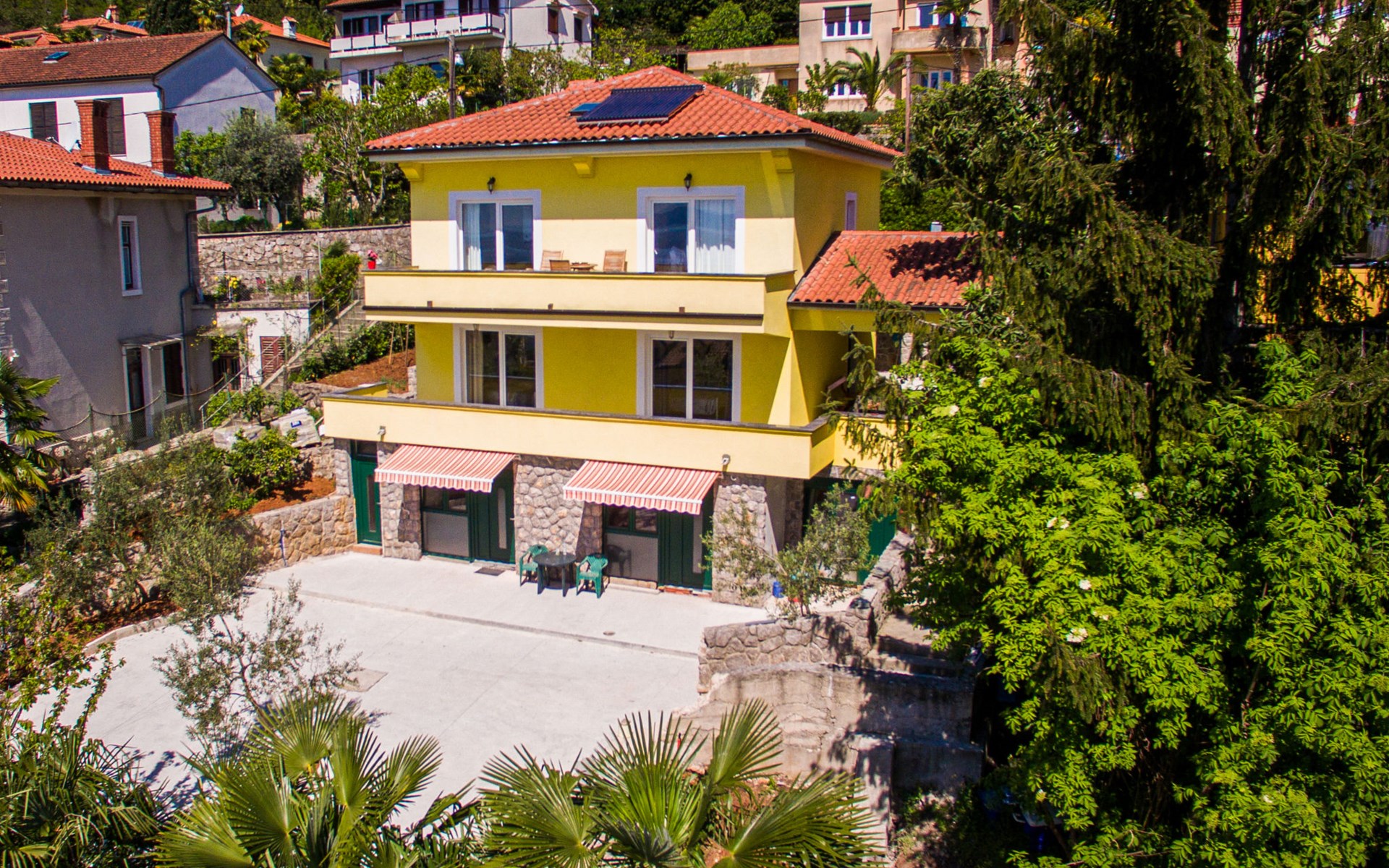 Mehrfamilienhaus "Vero". 400 m vom Zentrum von Opatija, sonnige Lage, 400 m vom Meer, vom Strand. Zur Mitbenutzung: Grundstück 1'000 m2 mit Pflanzen und Bäumen. Terrasse (30 m2), Gartenmöbel, Grill. Im Hause: Internetzugang. Parkplatz beim Haus auf dem Grundstück. Einkaufsgeschäft 450 m, Supermarkt 1.2 km, Restaurant 400 m, Bushaltestelle 500 m, Strandbad, betonierter Strand 400 m. Tennis 250 m, Wanderwege ab Haus 400 m.