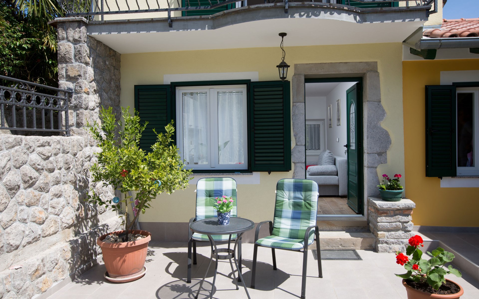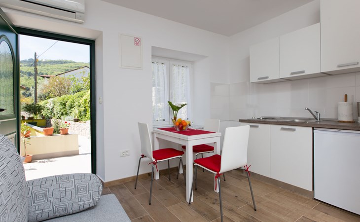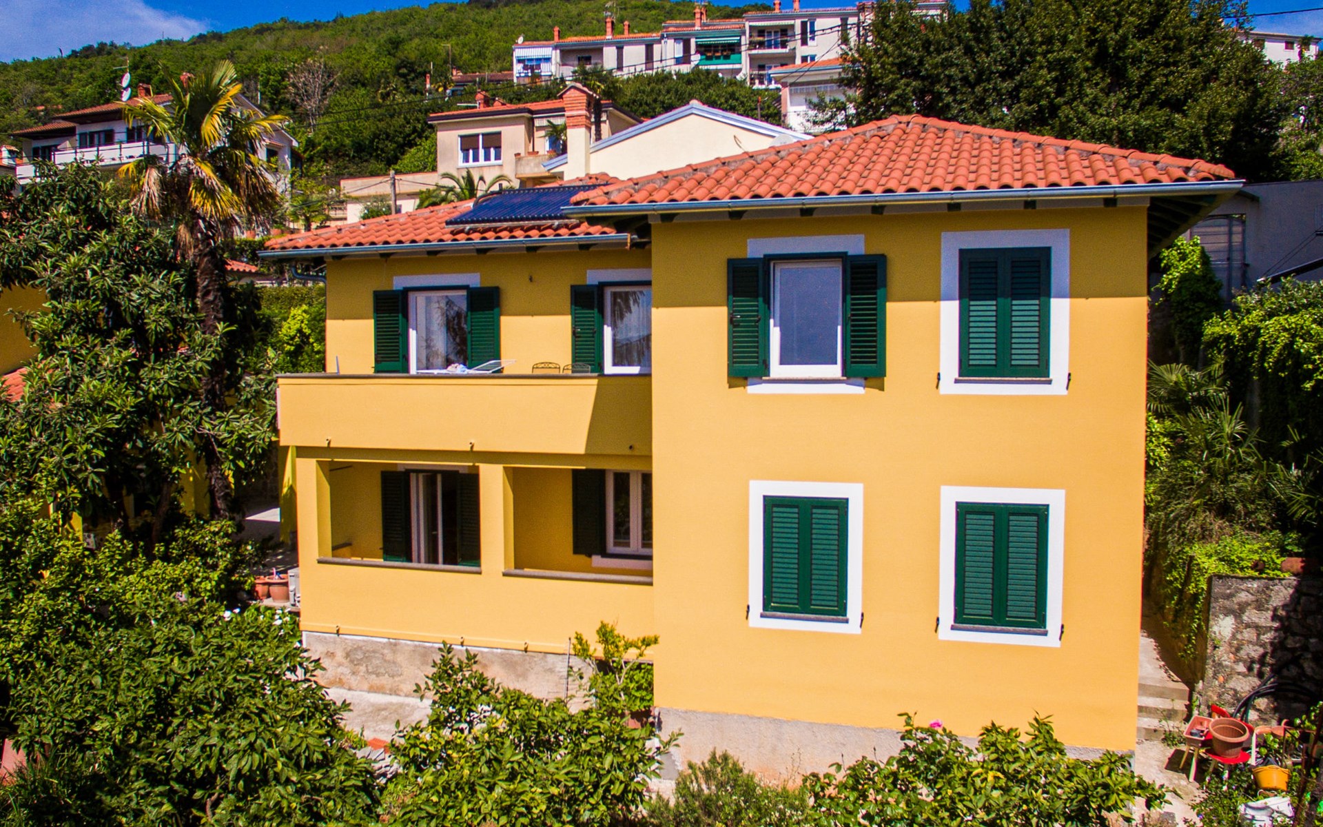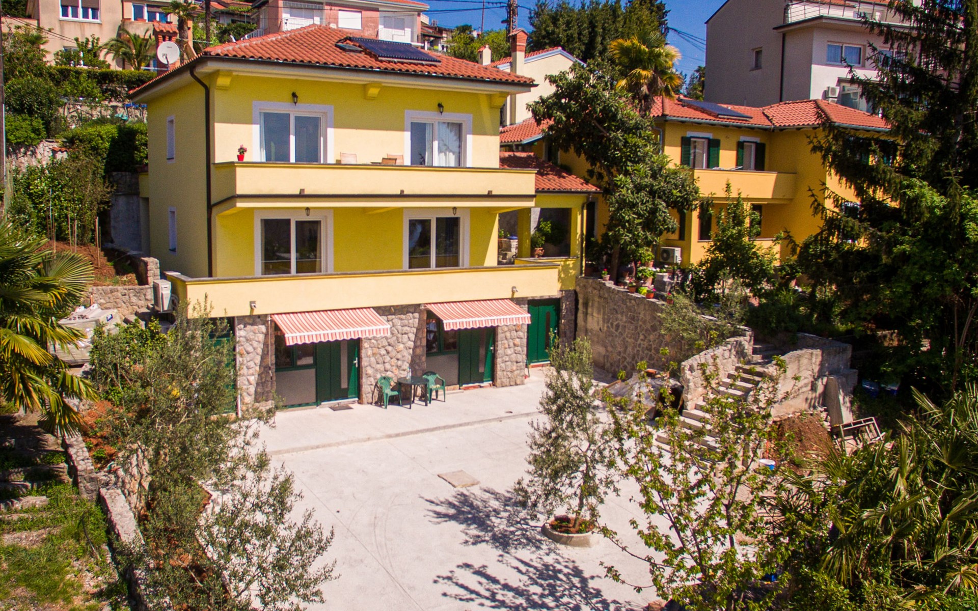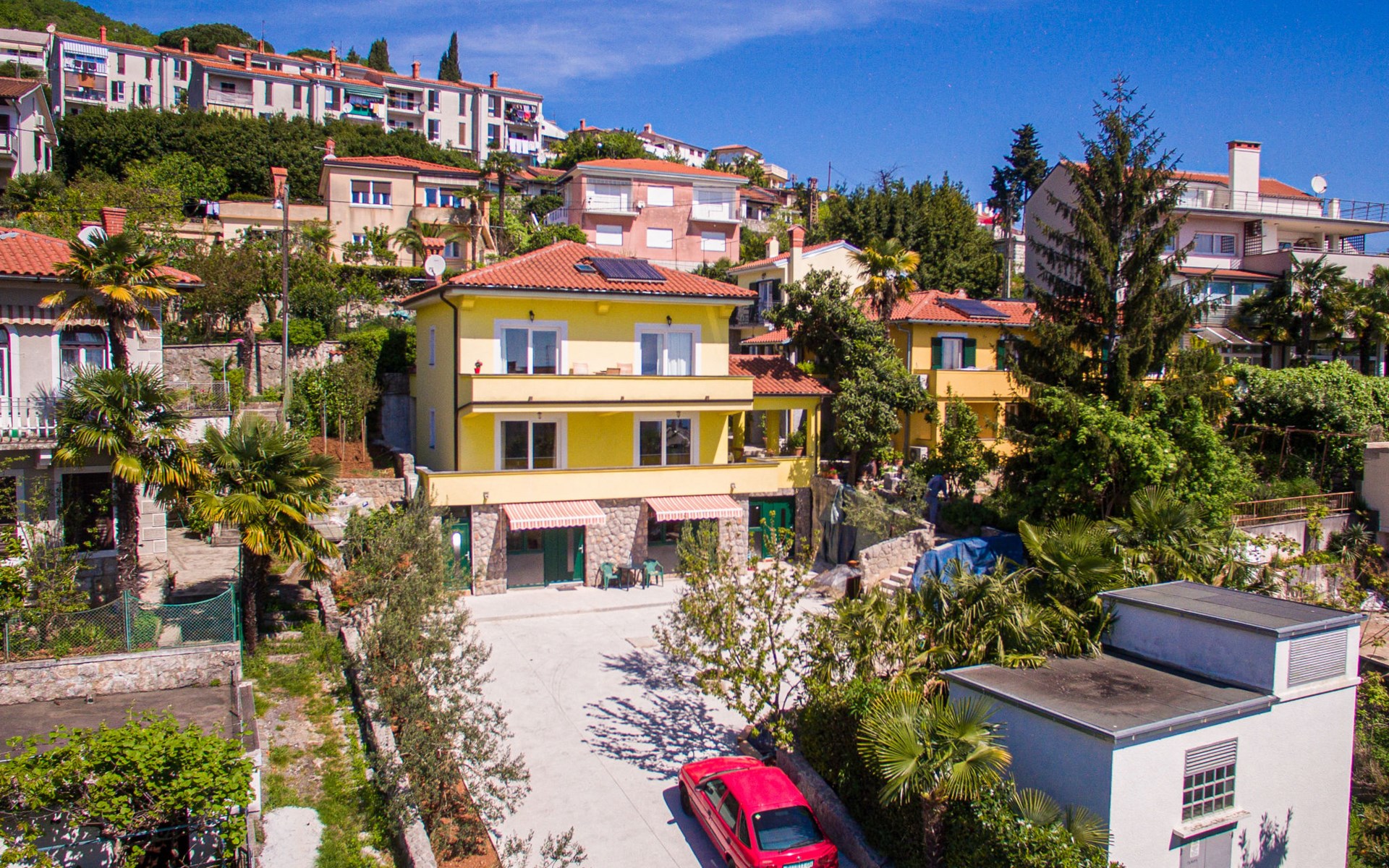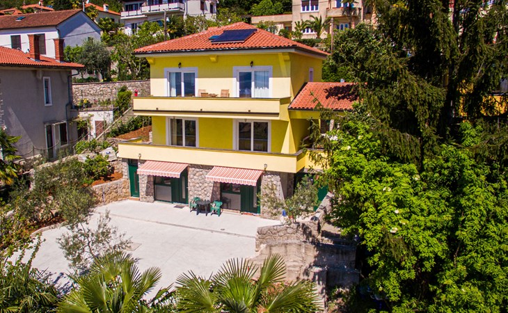Mehrfamilienhaus "Vero". 400 m vom Zentrum von Opatija, sonnige Lage, 400 m vom Meer, vom Strand. Zur Mitbenutzung: Grundstück 1'000 m2 mit Pflanzen und Bäumen. Terrasse (30 m2), Gartenmöbel, Grill. Im Hause: Internetzugang. Parkplatz beim Haus auf dem Grundstück. Einkaufsgeschäft 450 m, Supermarkt 1.2 km, Restaurant 400 m, Bushaltestelle 500 m, Strandbad, betonierter Strand 400 m. Tennis 250 m, Wanderwege ab Haus 400 m.