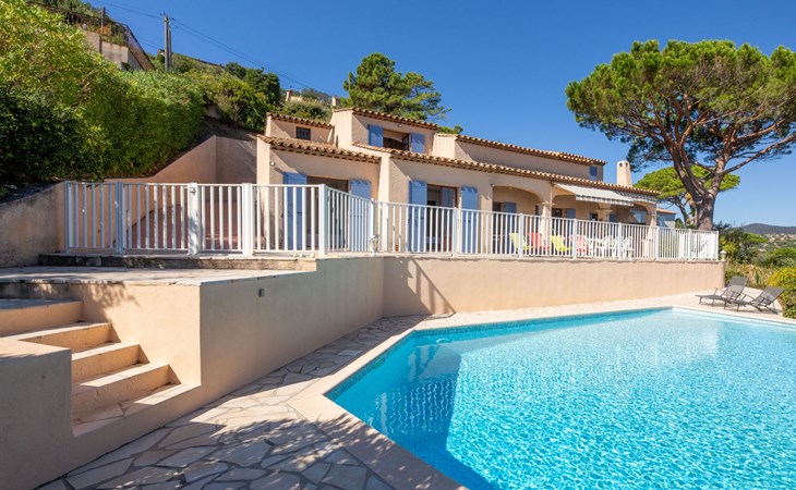 Provenzalisches Landhaus, Villa "La Baïassière". Am Ortsrand, 3 km vom Zentrum von Sainte Maxime, am Hang, 300 m vom Meer, 300 m vom Strand. Zur Alleinbenutzung: Grundstück 1'000 m2 (eingezäunt), Pflanzen, Schwimmbad (10 x 4 m, 80 - 250 cm tief, saisonale Verfügbarkeit: 01.Jun. - 30.Sep.) mit Innentreppe. Aussendusche, Grill, Parkplatz auf dem Grundstück. Einkaufsgeschäft 4 km, Lebensmittelgeschäft 1.5 km, Supermarkt 1.5 km, Einkaufszentrum 4 km, Restaurant 600 m, Bäckerei 3 km, Bushaltestelle 350 m, Bahnstation "Saint-Raphael", Sandstrand "La Nartelle" 800 m, Thermalbad "Thalasso Les Issambres" 7 km. Sporthafen 3 km, Golfplatz (18 Loch) 4 km, Tennis 1.5 km. Nahe gelegene Sehenswürdigkeiten: Aqualand waterpark 7 km, Azur Park attractions 16 km, Saint-Tropez/Ramatuelle 18 km, Port Grimaud 13 km, Gorges du Verdon 95 km, Navette / shuttle boat St-Tropez 15min 3 km. Wandergebiete: Massif des Maures 5 km, Massif de l'Esterel 38 km. Bitte beachten: Fahrzeug empfohlen. Die Schlüsselübergabe findet bei der Agentur Interhome in Sainte-Maxime statt. Flugplatz 70 km vom Haus. Keine Schwimmbadbeleuchtung.