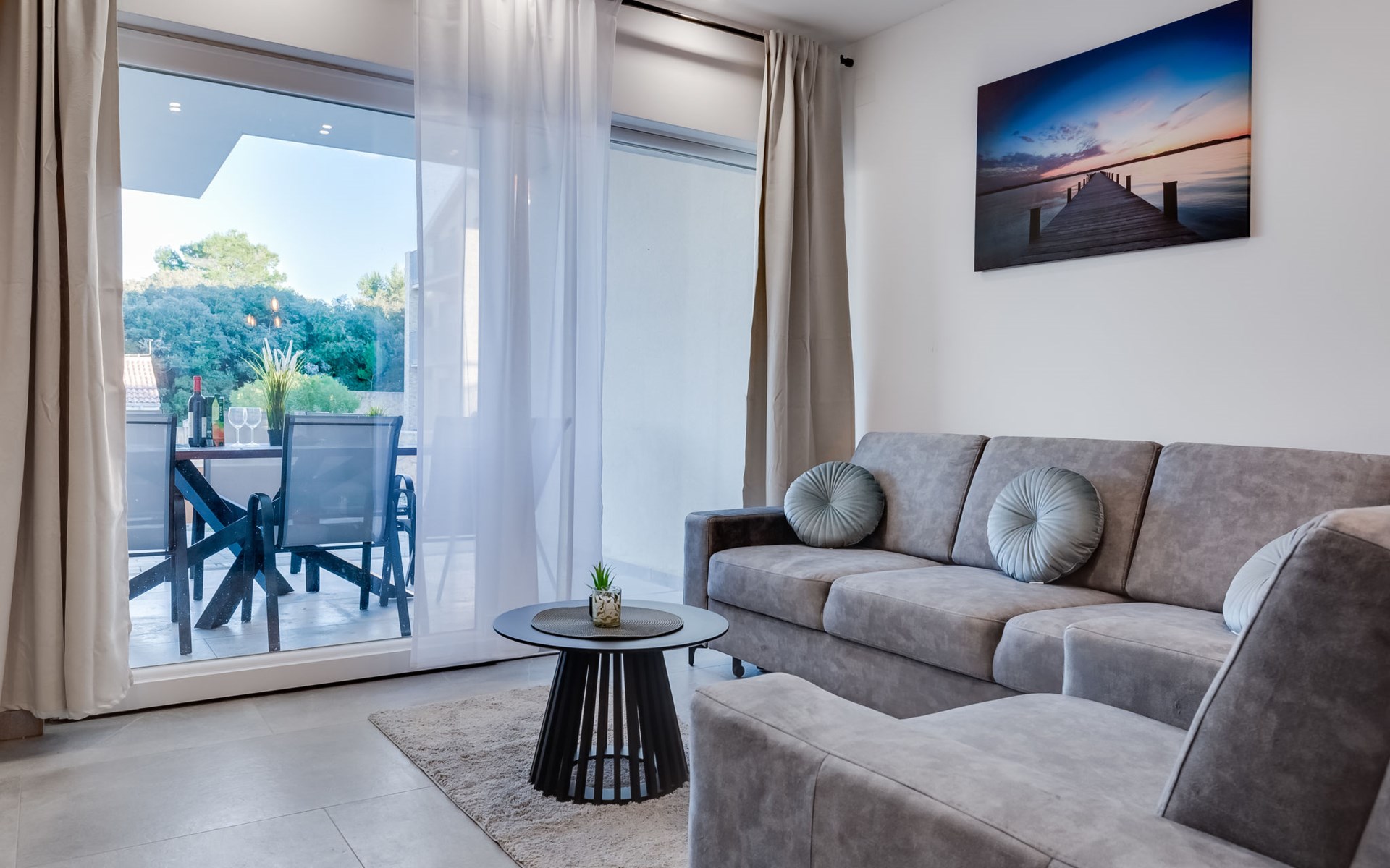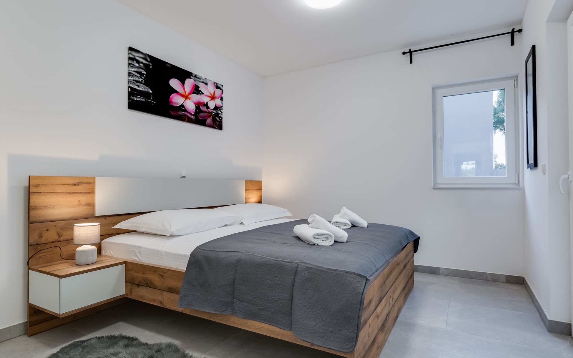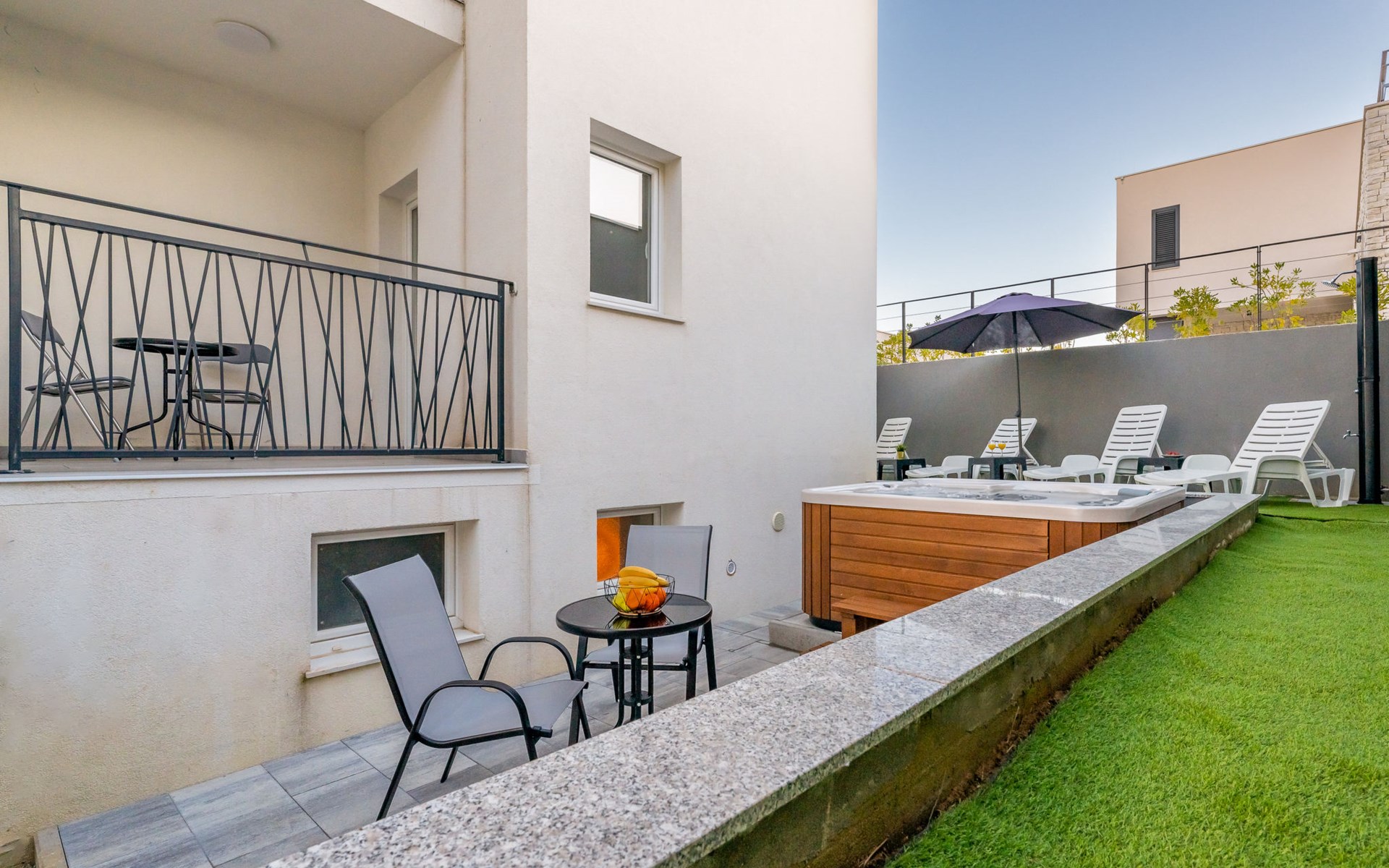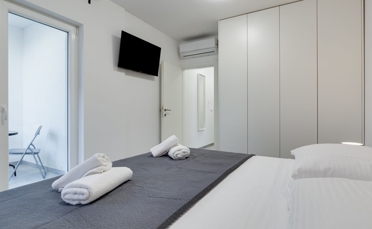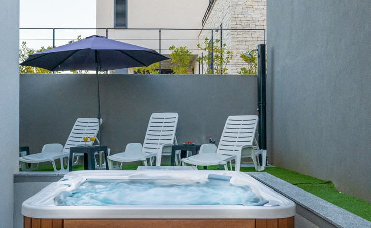 Reihenhaus "Tica", auf 3 Stockwerken, Baujahr 2023. 1.3 km vom Zentrum von Zaton, 4 km vom Zentrum von Nin, 14 km vom Zentrum von Zadar, sonnige Lage am Hang, 150 m vom Meer, 150 m vom Strand. Zur Alleinbenutzung: Grundstück 50 m2. Sprudelbad. Im Hause: Internetzugang, Waschmaschine. Parkplatz (für 2 Autos) beim Haus auf dem Grundstück. Einkaufsgeschäft 1 km, Restaurant 1.2 km, Bushaltestelle 3.8 km, Sandstrand 150 m. Nahe gelegene Sehenswürdigkeiten: Holiday complex Zaton 2 km. Bitte beachten: Flugplatz 25 km vom Haus.