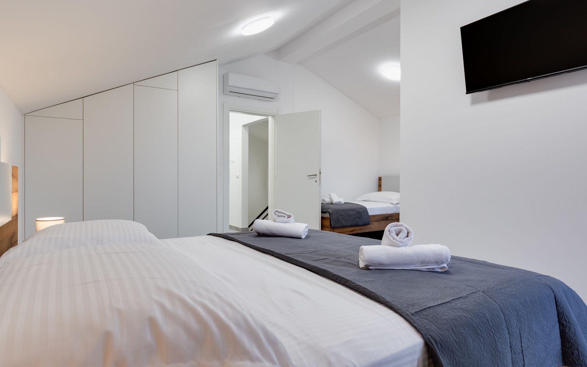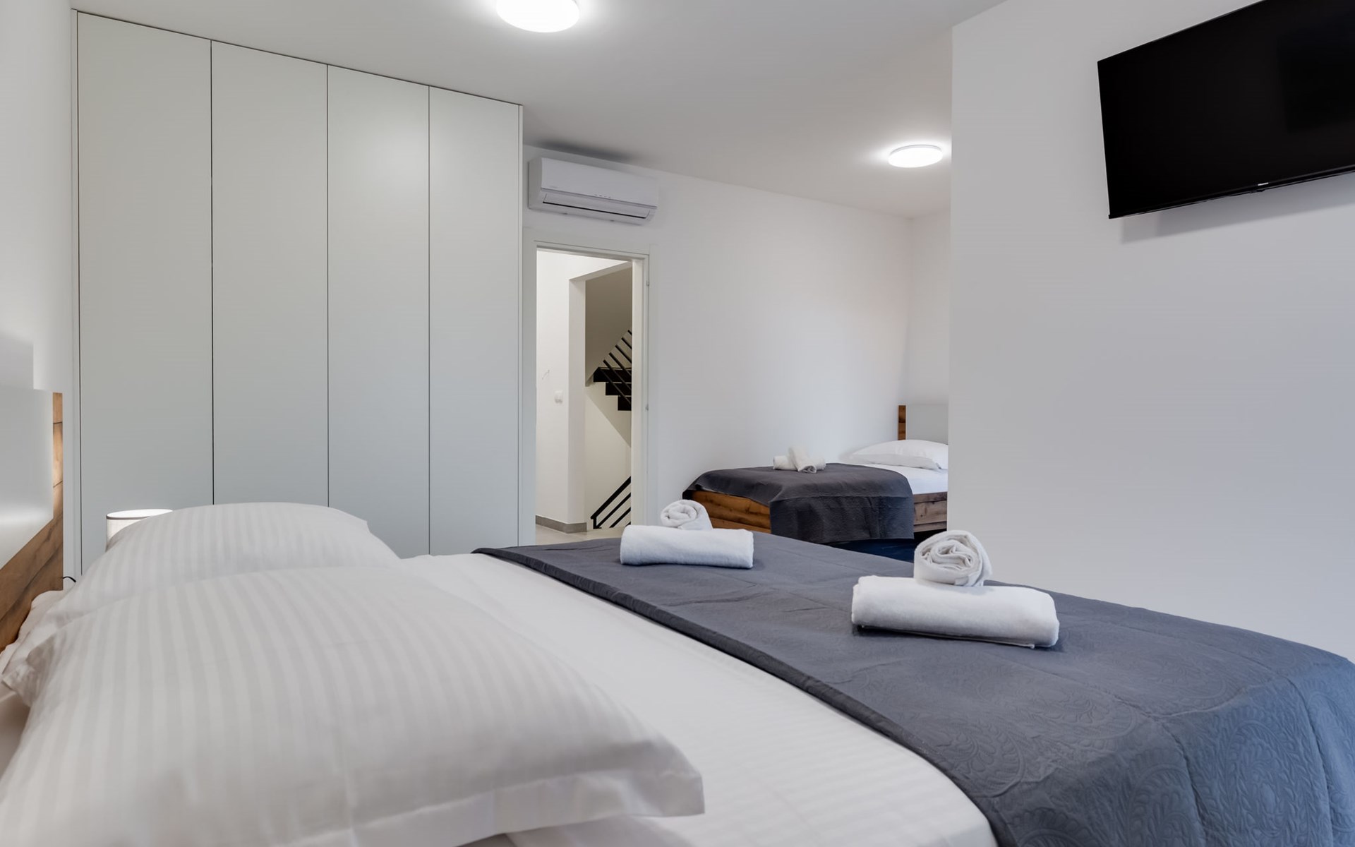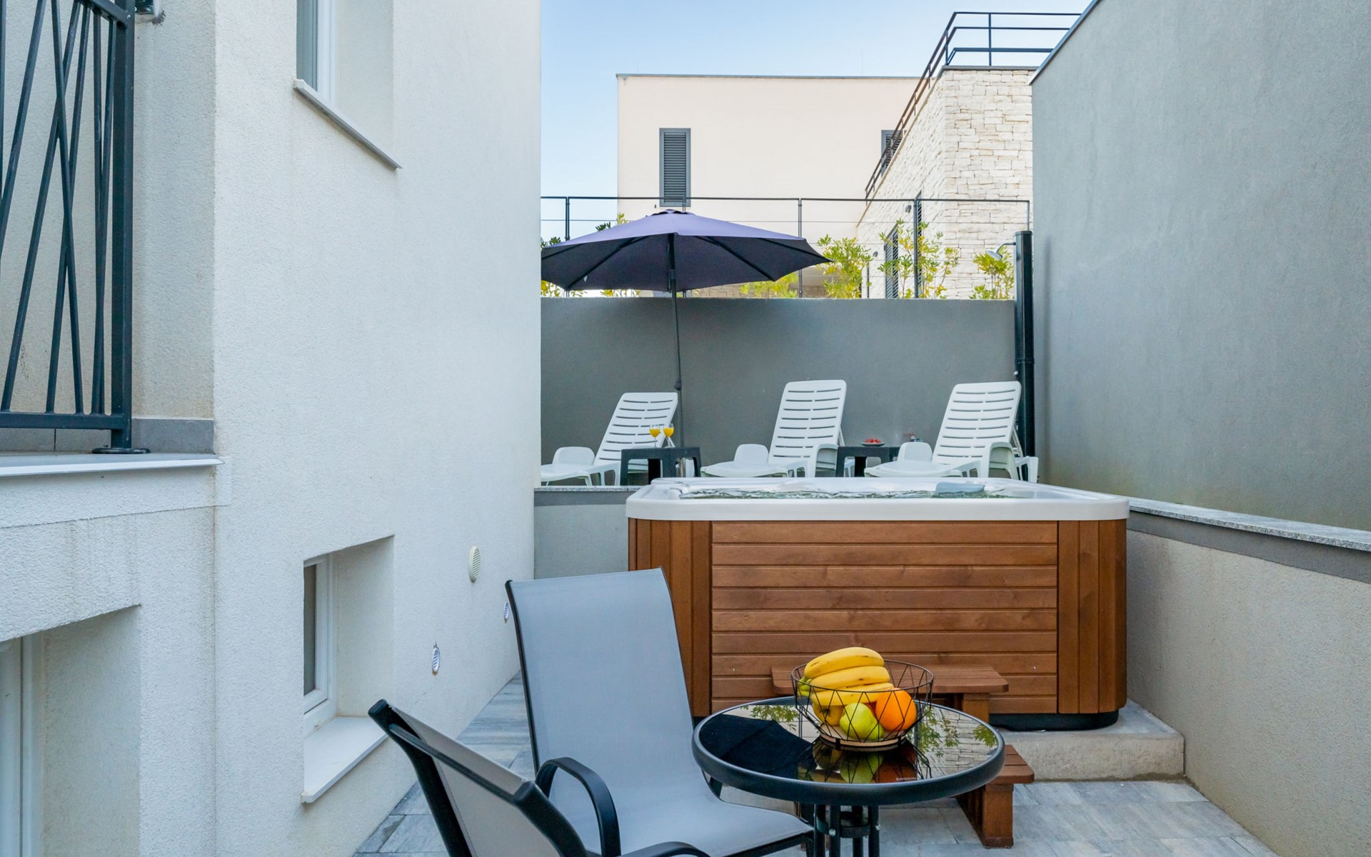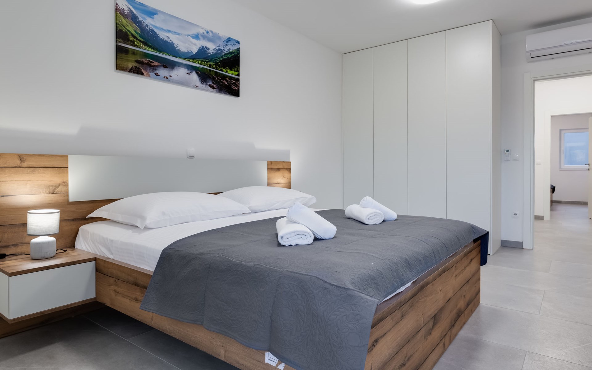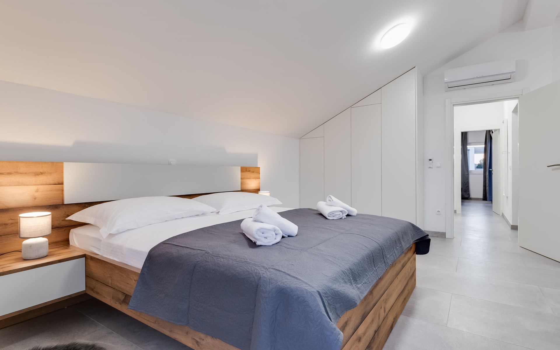 Reihenhaus "Tica", auf 3 Stockwerken, Baujahr 2023. 1.3 km vom Zentrum von Zaton, 4 km vom Zentrum von Nin, 14 km vom Zentrum von Zadar, sonnige Lage am Hang, 150 m vom Meer, 150 m vom Strand. Zur Alleinbenutzung: Grundstück 50 m2. Sprudelbad. Im Hause: Internetzugang, Waschmaschine. Parkplatz (für 2 Autos) beim Haus auf dem Grundstück. Einkaufsgeschäft 1 km, Restaurant 1.2 km, Bushaltestelle 3.8 km, Sandstrand 150 m. Nahe gelegene Sehenswürdigkeiten: Holiday complex Zaton 2 km. Bitte beachten: Flugplatz 25 km vom Haus.