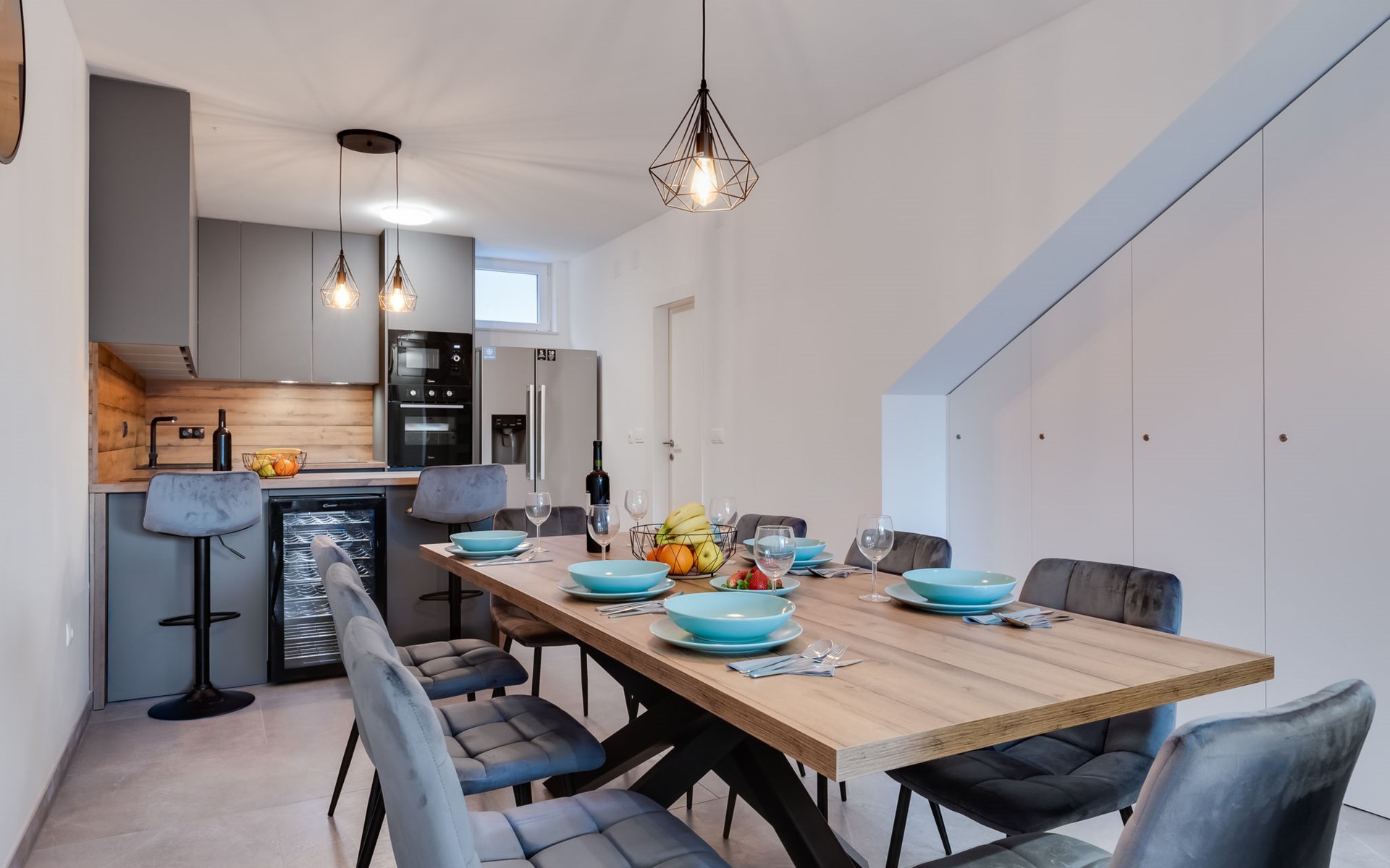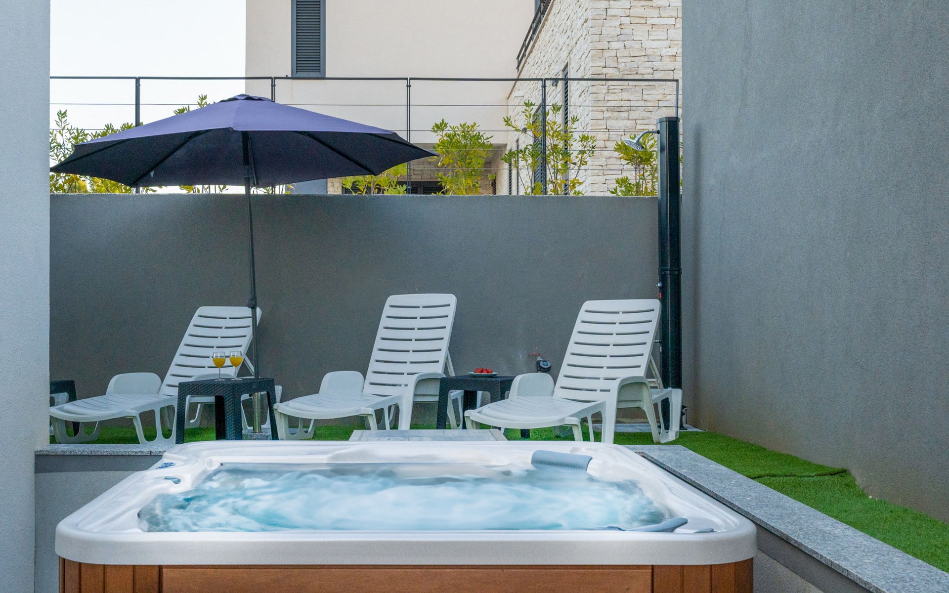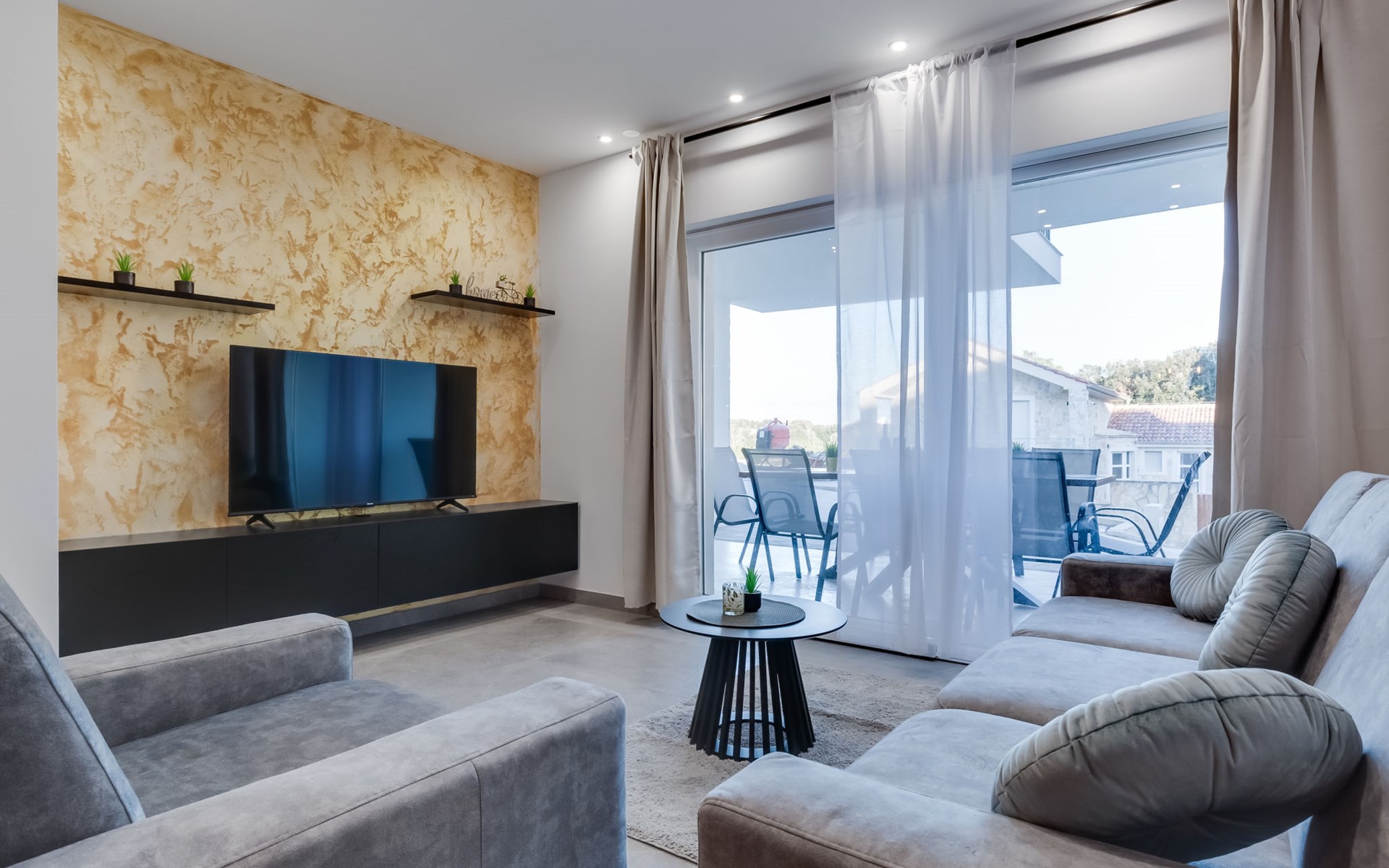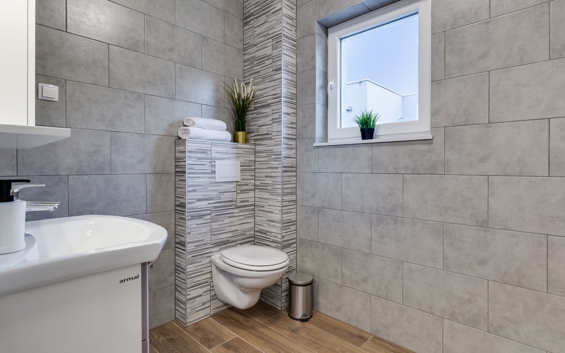 Reihenhaus "Tica", auf 3 Stockwerken, Baujahr 2023. 1.3 km vom Zentrum von Zaton, 4 km vom Zentrum von Nin, 14 km vom Zentrum von Zadar, sonnige Lage am Hang, 150 m vom Meer, 150 m vom Strand. Zur Alleinbenutzung: Grundstück 50 m2. Sprudelbad. Im Hause: Internetzugang, Waschmaschine. Parkplatz (für 2 Autos) beim Haus auf dem Grundstück. Einkaufsgeschäft 1 km, Restaurant 1.2 km, Bushaltestelle 3.8 km, Sandstrand 150 m. Nahe gelegene Sehenswürdigkeiten: Holiday complex Zaton 2 km. Bitte beachten: Flugplatz 25 km vom Haus.