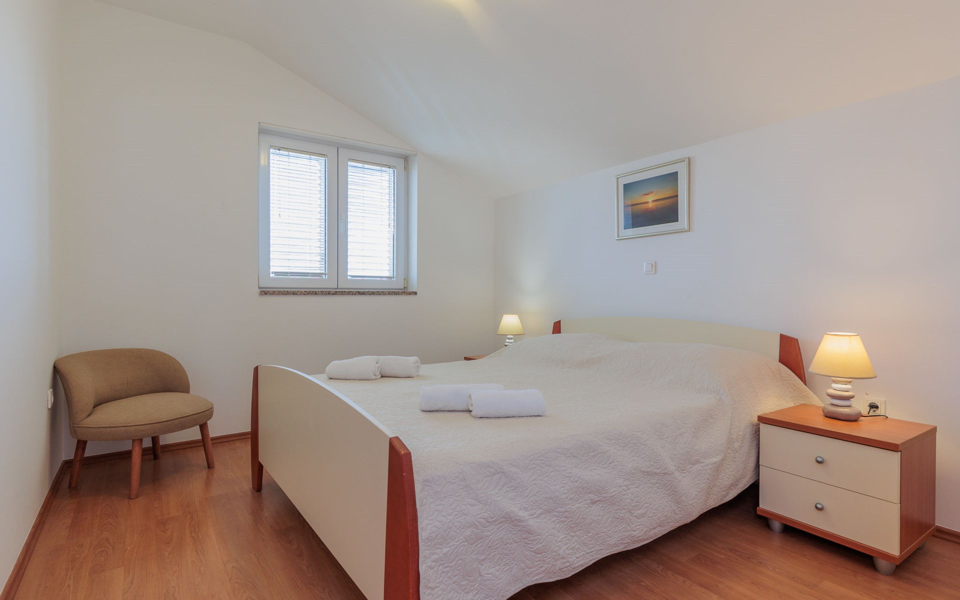 Mehrfamilienhaus "Irena". 200 m vom Zentrum von Privlaka, 5 km vom Zentrum von Nin, 23 km vom Zentrum von Zadar, 250 m vom Meer, 250 m vom Strand. Zur Mitbenutzung: Grundstück 500 m2, Garten mit Bäumen. Grill. Im Hause: Internetzugang. Parkplatz auf dem Grundstück. Einkaufsgeschäft, Restaurant 200 m, Bushaltestelle 4.6 km, Sandstrand 300 m, Felsstrand 250 m. Bitte beachten: Flugplatz 30 km vom Haus.