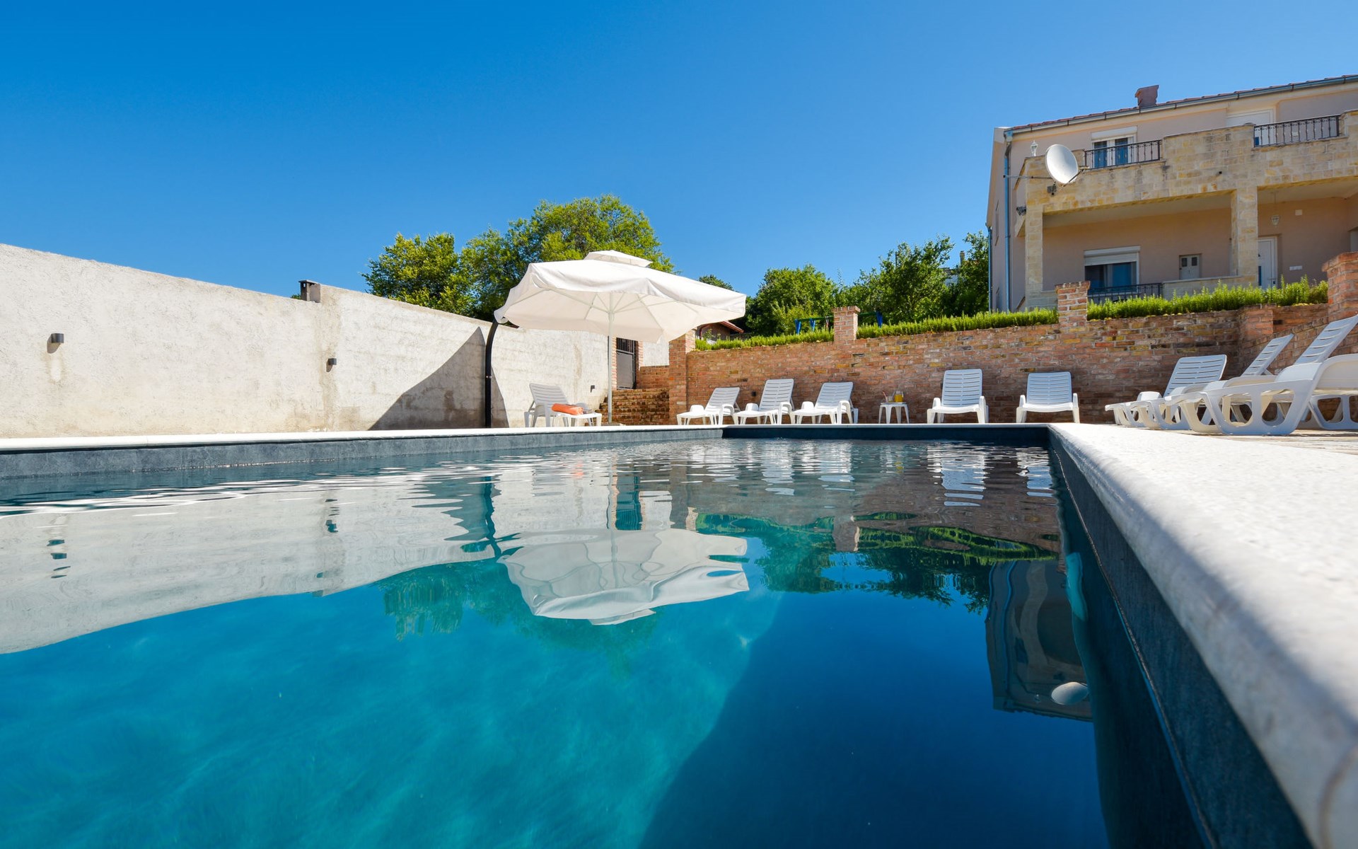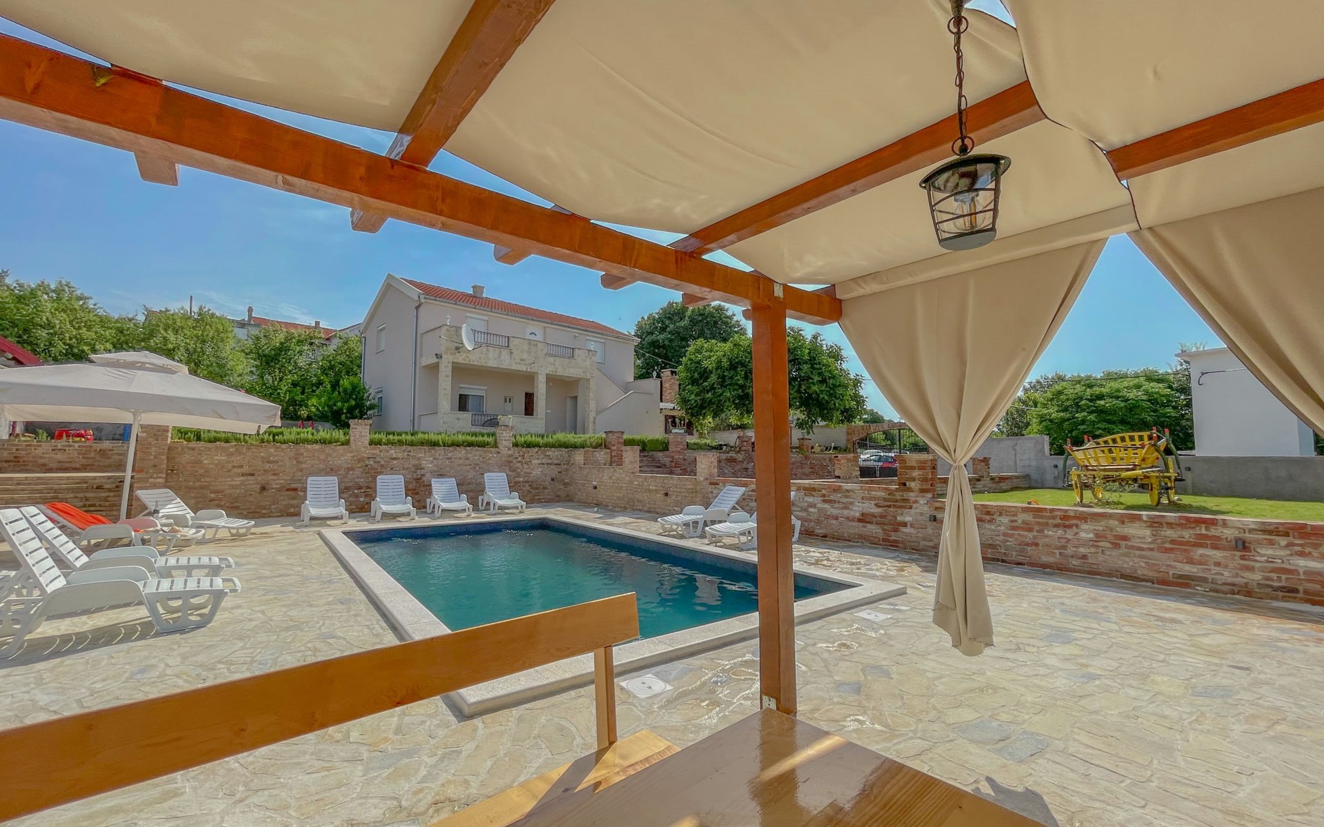 Korlat 13 km von Novigrad: Einfamilienhaus "Villa Meri", auf 2 Stockwerken. 11 km vom Zentrum von Benkovac, 16 km vom Meer. Zur Alleinbenutzung: Grundstück 400 m2 (eingezäunt), Schwimmbad eckig (8 x 4 m, 145 cm tief, saisonale Verfügbarkeit: 01.Mai. - 01.Okt.). Aussendusche, Terrasse (20 m2), Gartenmöbel, Grill. Im Hause: Internetzugang, Waschmaschine. Parkplatz (für 5 Autos) auf dem Grundstück. Einkaufsgeschäft 11 km, Restaurant 13 km, Bushaltestelle 7.4 km, Kieselstrand 16 km.