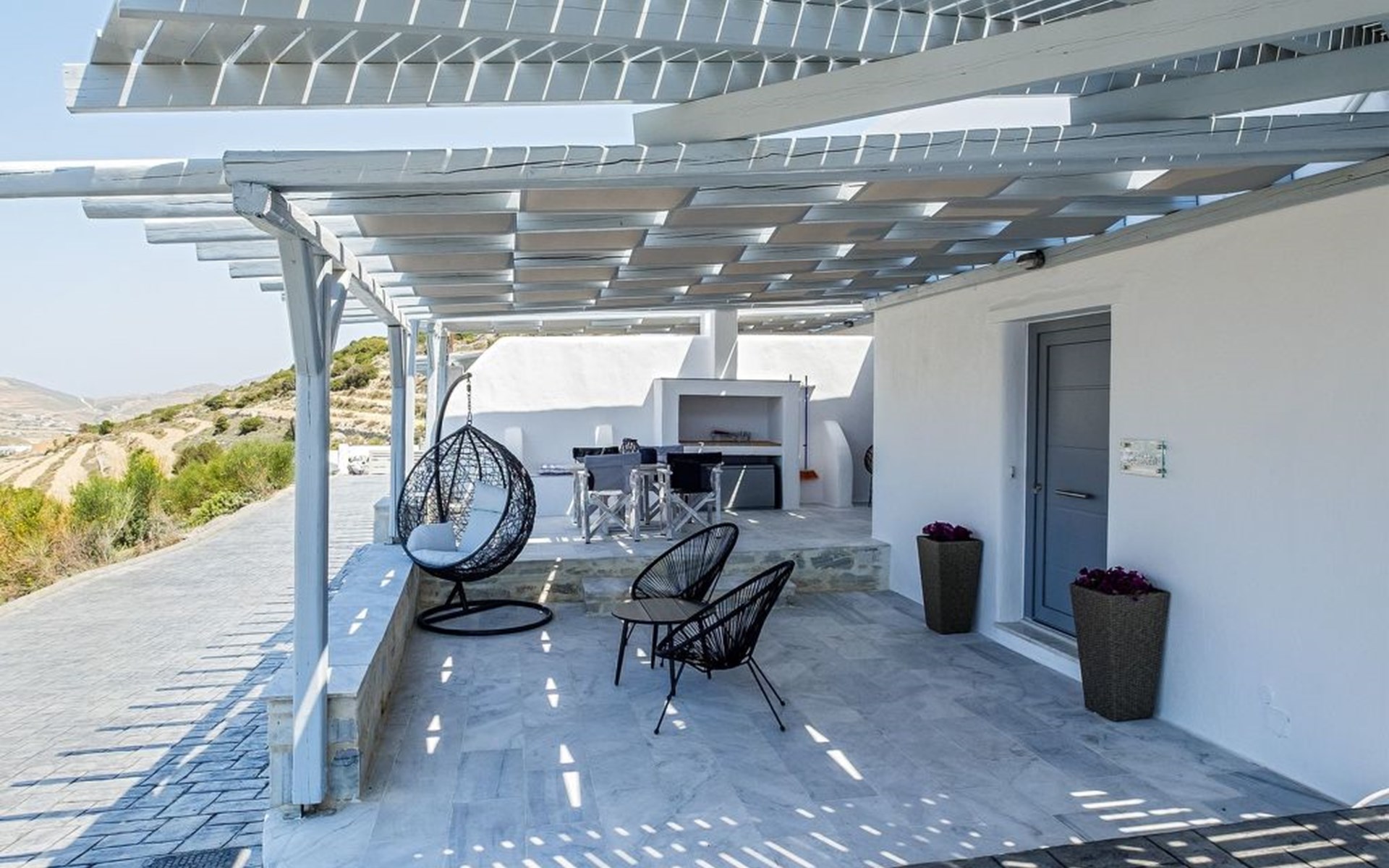 Obwohl die Villa einen abgelegenen Zufluchtsort bietet, ist sie dennoch nahe am Zentrum von Parikia gelegen. Das nächstgelegene Lebensmittelgeschäft ist nur 2800 m entfernt, so dass Ihre Bedürfnisse leicht erfüllt werden können. Für Strandliebhaber ist der nächstgelegene Strand nur 3100 m entfernt und lädt Sie ein, das kristallklare Wasser und die wunderschöne Küste von Paros zu erleben. Darüber hinaus bietet das lebhafte Stadtzentrum, nur 3000 m von der Villa entfernt, einen Vorgeschmack auf die lokale Kultur, Küche und lebhafte Unterhaltung.