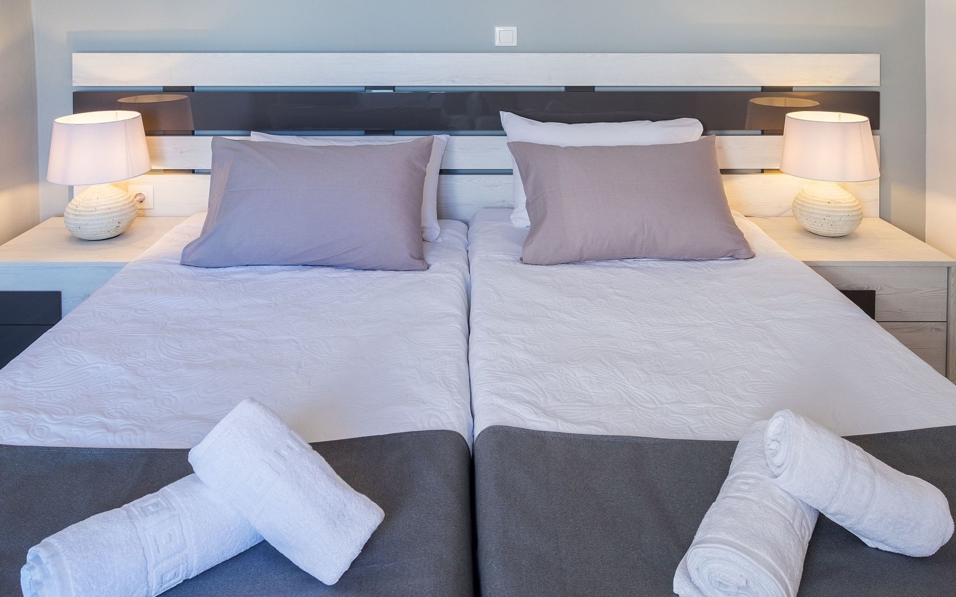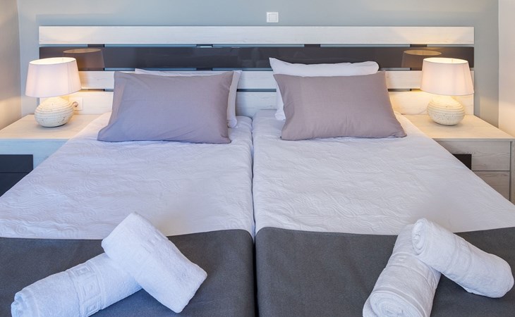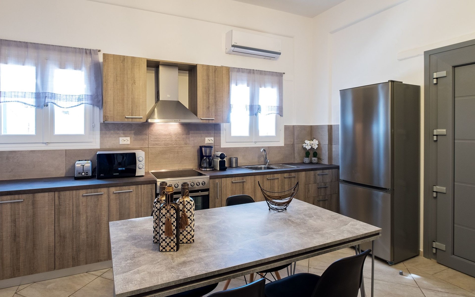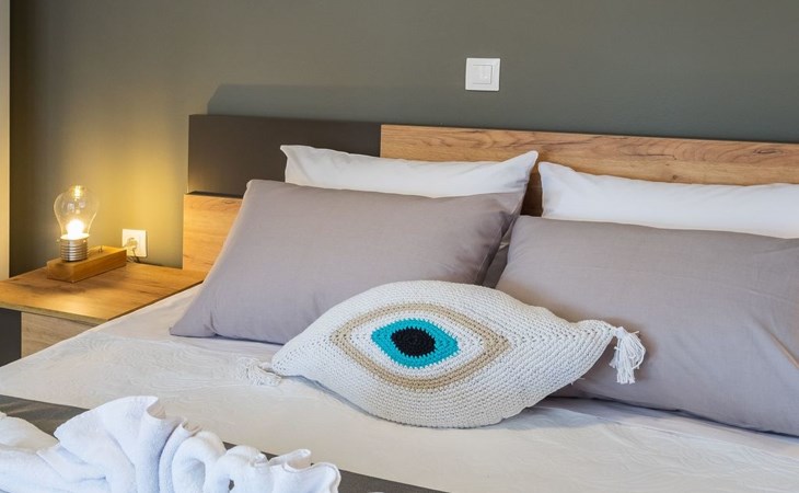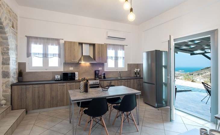 Das Innere der Villa hat eine Fläche von 70 m2 und ist für Ihren Komfort und Ihre Bequemlichkeit eingerichtet. Das gemütliche Interieur ist mit allen wichtigen Annehmlichkeiten ausgestattet, einschließlich einer teilweisen Klimaanlage, damit Ihr Aufenthalt zu jeder Jahreszeit angenehm ist. Das Haus verfügt über zwei einladende Schlafzimmer, die bis zu vier Gästen einen erholsamen Schlaf bieten - eines mit einem gemütlichen Doppelbett und das andere mit der Möglichkeit, zwei Einzelbetten oder ein Kingsize-Doppelbett aufzustellen. In der Küche stehen Ihnen eine Waschmaschine, eine Filterkaffeemaschine, eine Kapselkaffeemaschine, eine Spülmaschine und ein Wasserkocher zur Verfügung, damit Sie sich wie zu Hause fühlen.