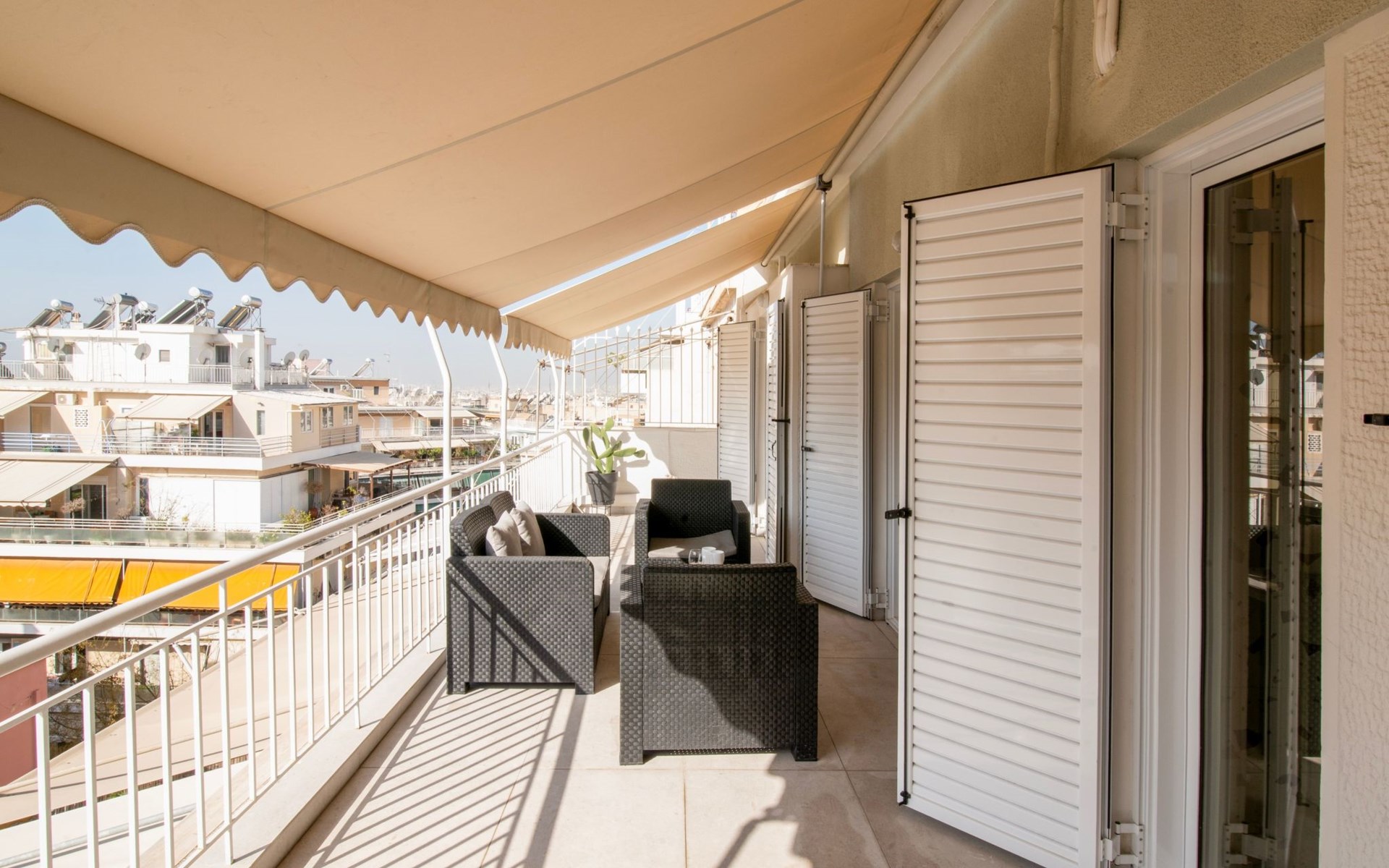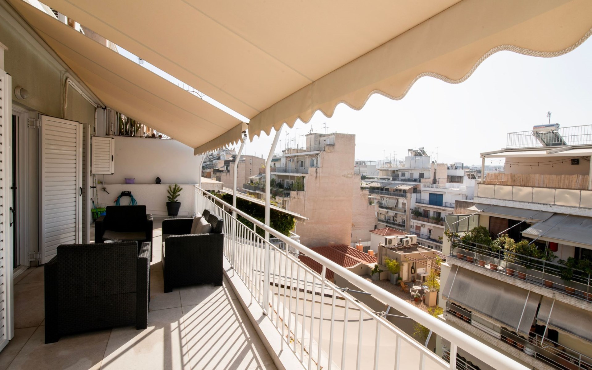 Gehen Sie nach draußen, um die charmanten Außenbereiche des Ferienhauses zu entdecken. Ein schöner Wintergarten bietet einen ruhigen Rückzugsort, der sich perfekt für entspannte Momente in Gelassenheit eignet. Die Dachterrasse, ein Highlight des Hauses, bietet einen majestätischen Ausblick und einen idyllischen Ort, um die Athener Atmosphäre zu genießen. Diese Außenbereiche sind für die ultimative Entspannung und das Aufsaugen der friedlichen Vibes der griechischen Landschaft gedacht.