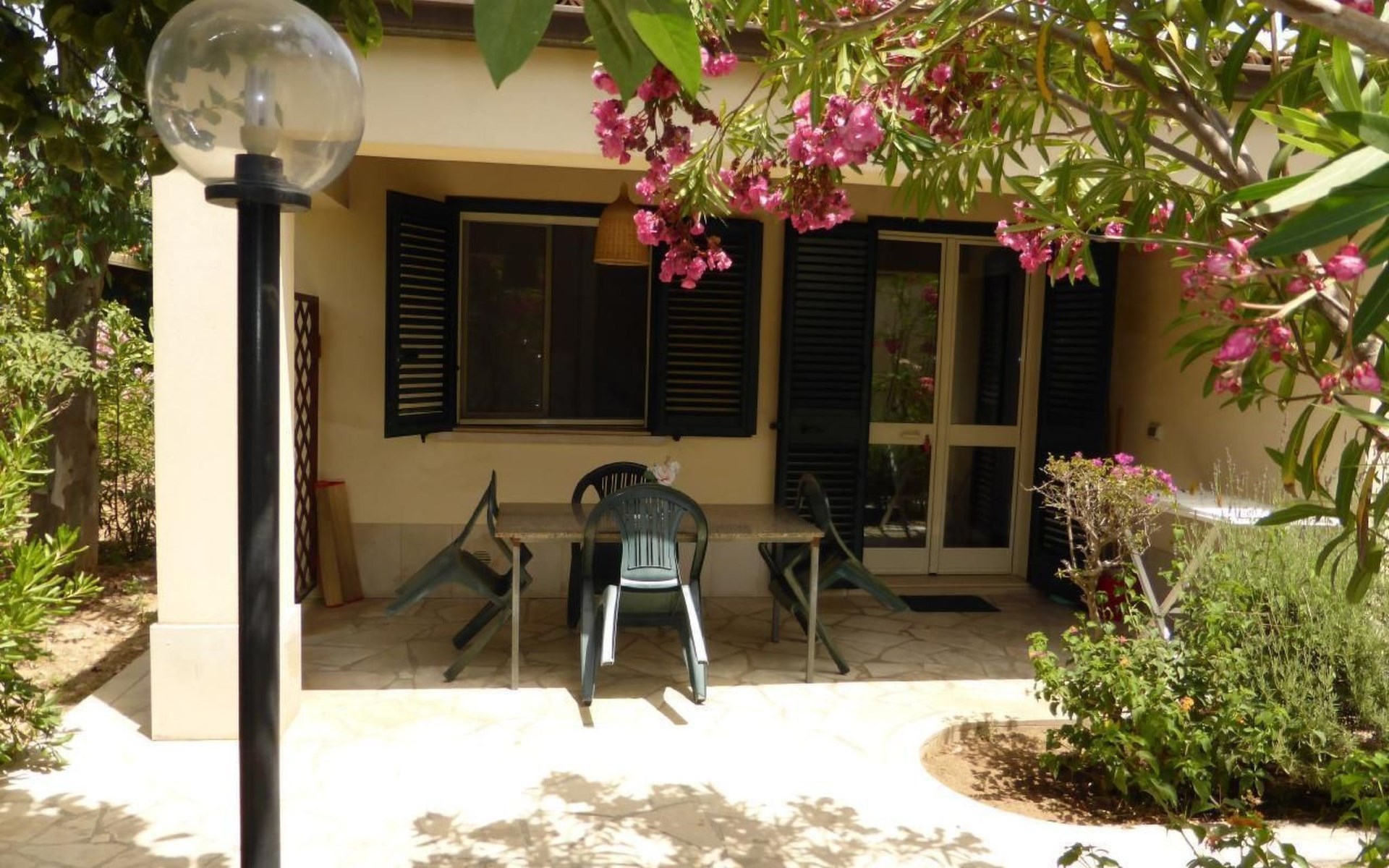 Die freistehenden Bungalows im Park sind von mediterraner Vegetation wie Palmen, Oleander, Hibiscus, Eukalytusbäumen, und vielem mehr umgeben (siehe Beispielfotos auf der Internetpräsentation). Für Spielspass der Kinder sorgen, ein ganz neu angelegter Spielplatz und eine Tischtennisplatte.Das Auto kann ausserhalb direkt neben der Parkanlage auf einer verkehrsberuhigten Sackgasse oder einem privaten Parkplatz der Gartenanlage (ausserhalb) geparkt werden. Gerne stehen wir Ihnen für Fragen und Tipps vor Ort zur Verfügung! Aufgrund der zentralen Lage der Parkanlage, direkt am Sandstrand und Zentrum des Badeortes könnte in den Hauptmonaten Juli und August bis spät in die Nacht hinein laut Musik gemacht werden.