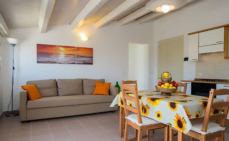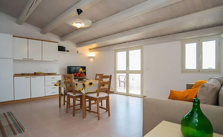 Die Wohnung Luna befindet sich im ersten Stock und verfügt über ein Schlafzimmer mit Doppelbett, eine Wohnküche mit Schlafsofa und ein Bad. Die klimatisierte Umgebung ist mit allem Komfort ausgestattet, um einen angenehmen und entspannenden Aufenthalt zu gewährleisten. Die Terrasse mit ihrem atemberaubenden Blick auf das Meer bietet einzigartige Momente, ideal für einen Aperitif bei Sonnenuntergang oder ein ruhiges Frühstück im Morgengrauen.