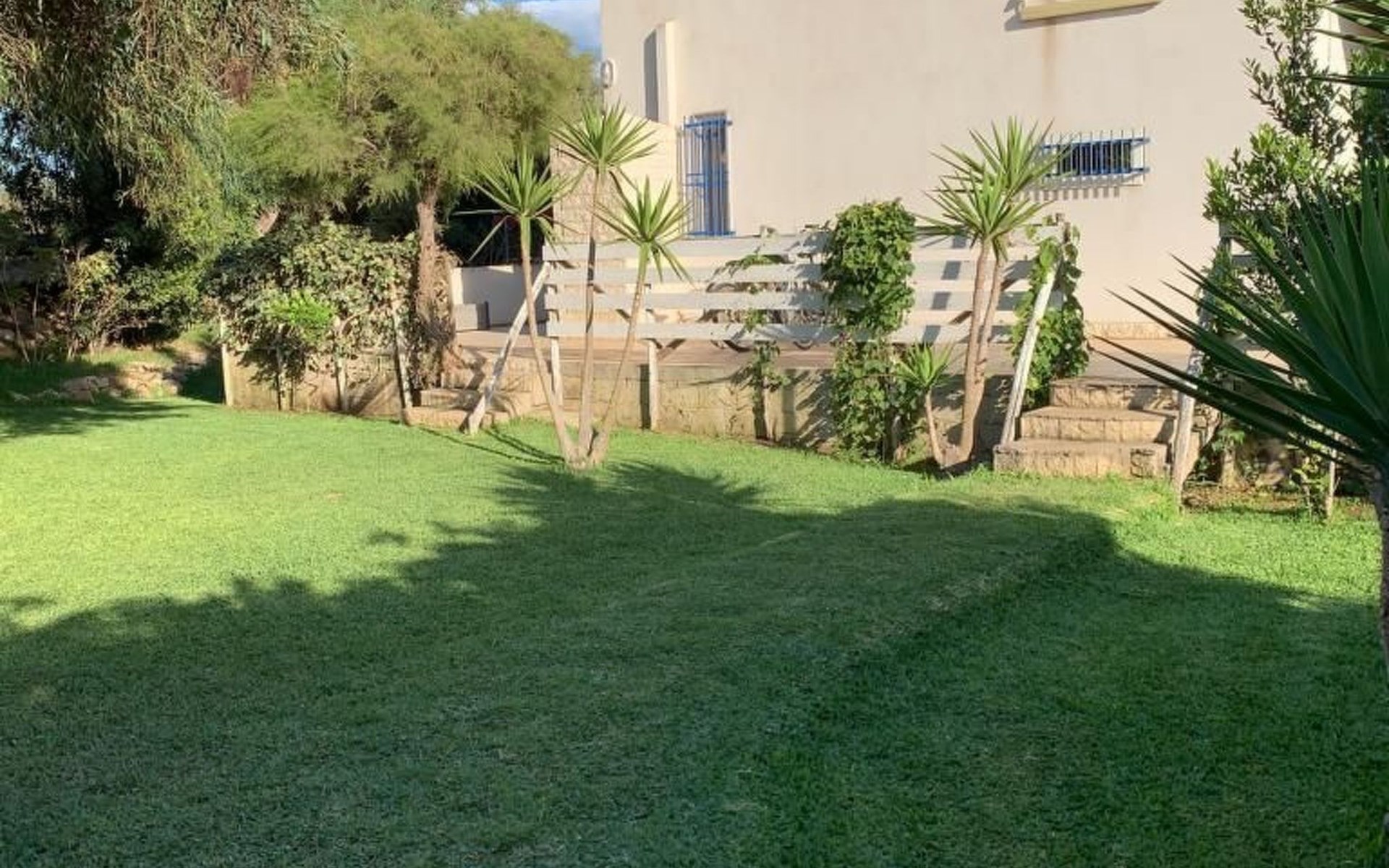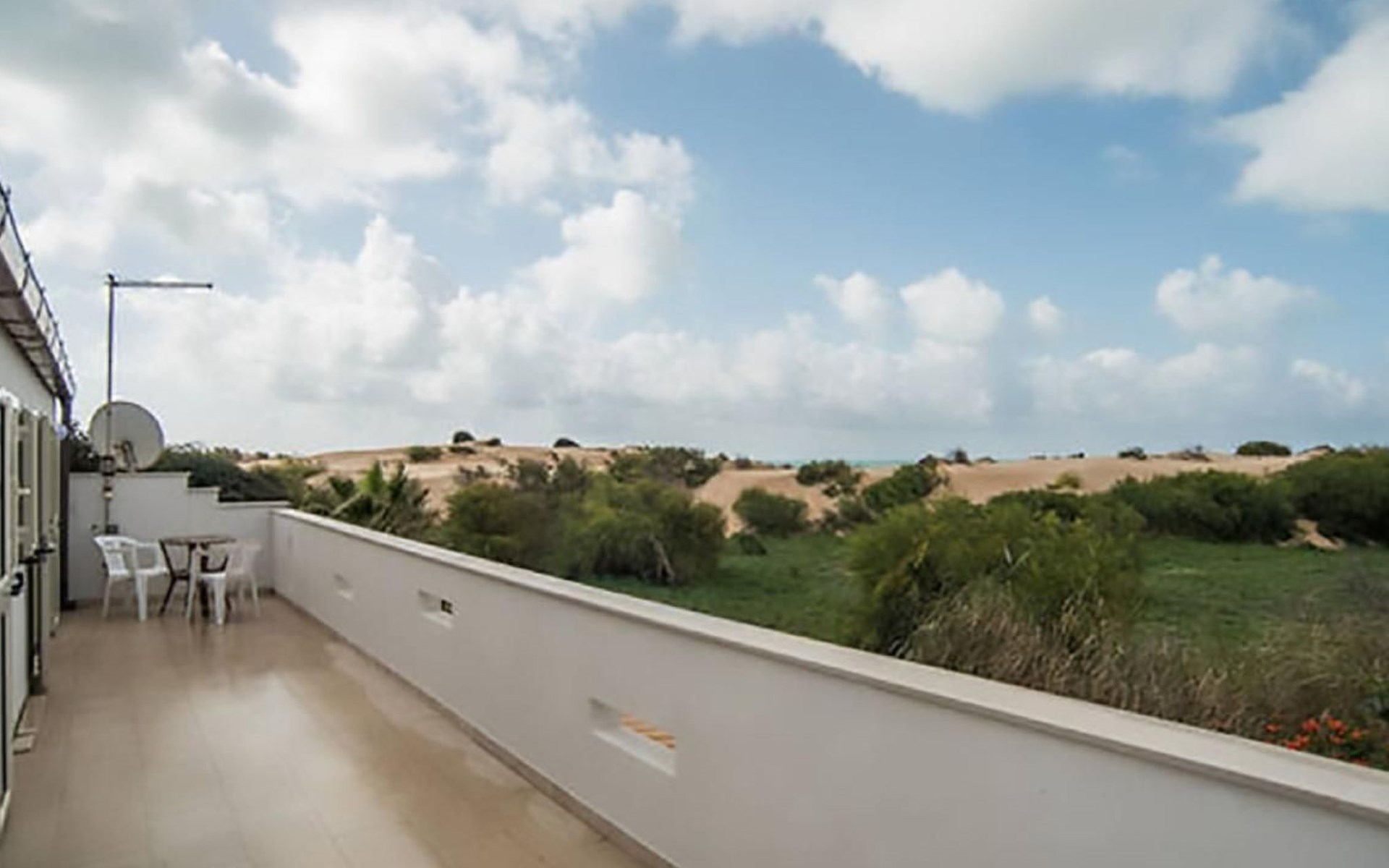 Der Außenbereich der Villa ist eine wahre Oase der Ruhe: Die Gäste können den großen Garten nutzen, der ideal für entspannende Momente im Freien ist, sowie Annehmlichkeiten wie einen Parkplatz und eine Außendusche, die perfekt für eine Abkühlung auf dem Rückweg vom Strand ist. Der Garten ist mit Gartenmöbeln ausgestattet, die für ein Abendessen unter dem Sternenhimmel oder einfach zum Entspannen im Schatten genutzt werden können.