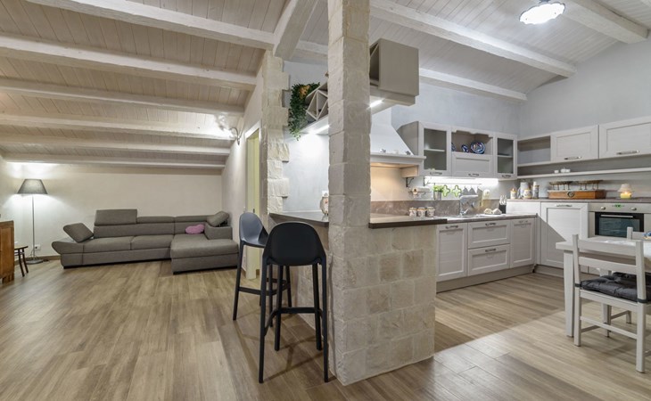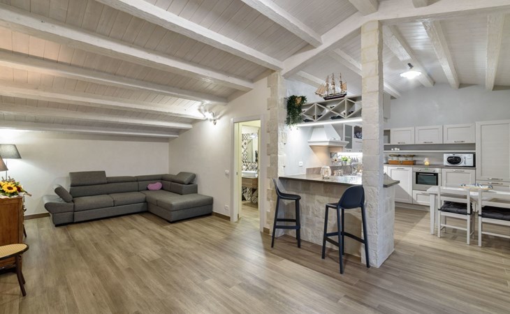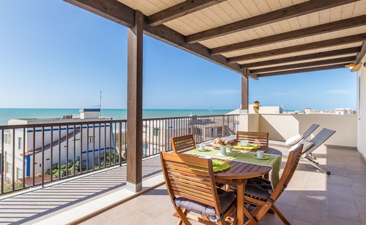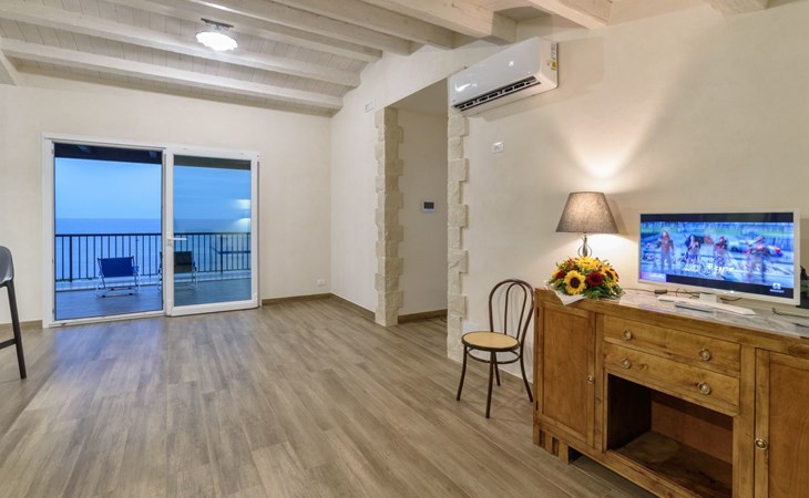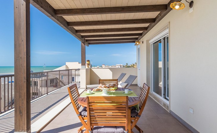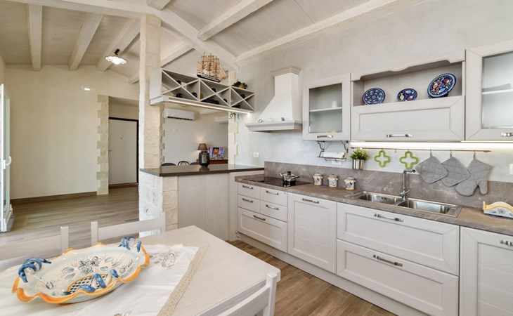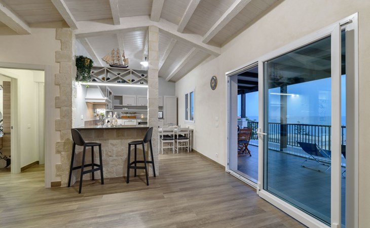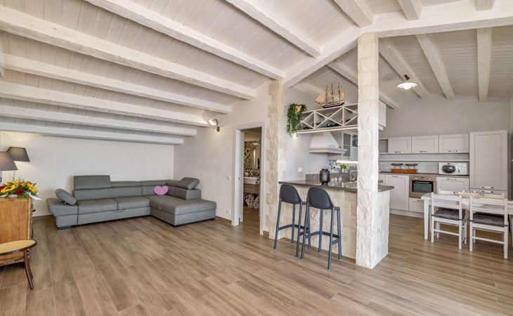 Das Appartement befindet sich im zweiten Stock und bietet wunderschöne Ausblicke auf das Meer und die Küste von Donnalucata. Es wurde erst kürzlich renoviert und mit Sorgfalt im modernen Stil mit antiken Möbeln ausgestattet.