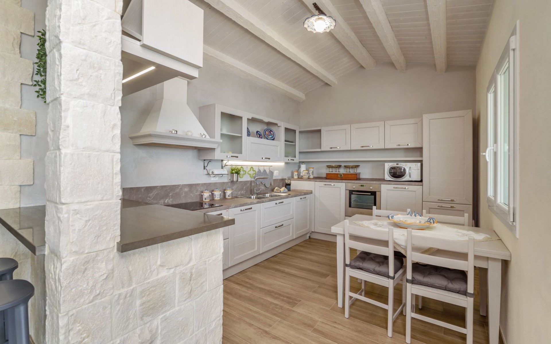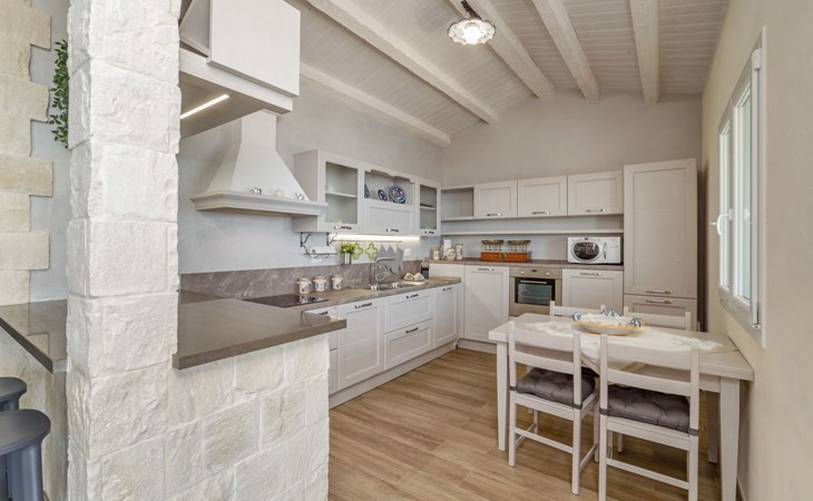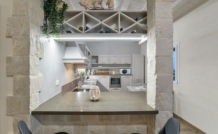 Die moderne und elegante Küche mit jeglichem Komfort verfügt über Induktionsherd, Kühl,- Gefrierkombination, Backofen, Mikrowelle und Geschirrspüler.