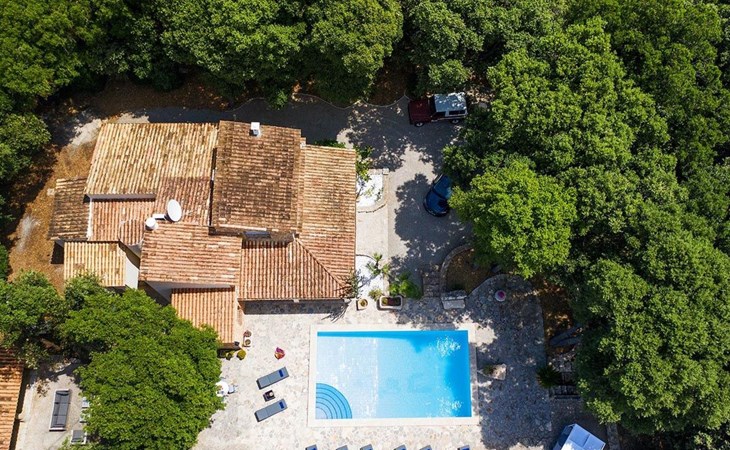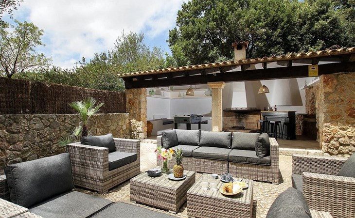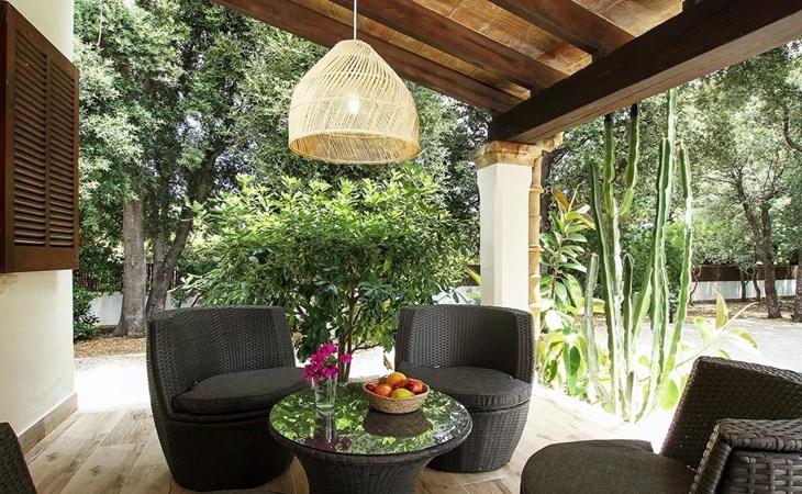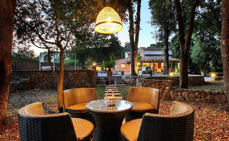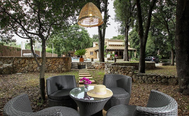 Schließlich gibt es im vorderen Teil des Hauses eine kleine Plattform mit einem Tisch und 4 Stühlen für diejenigen, die lieber im Schatten der Steineichen sitzen.