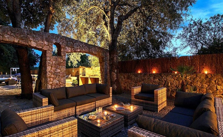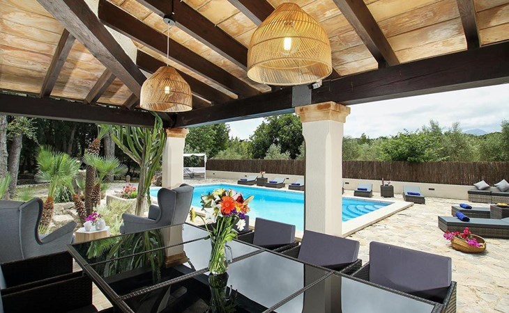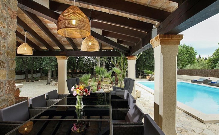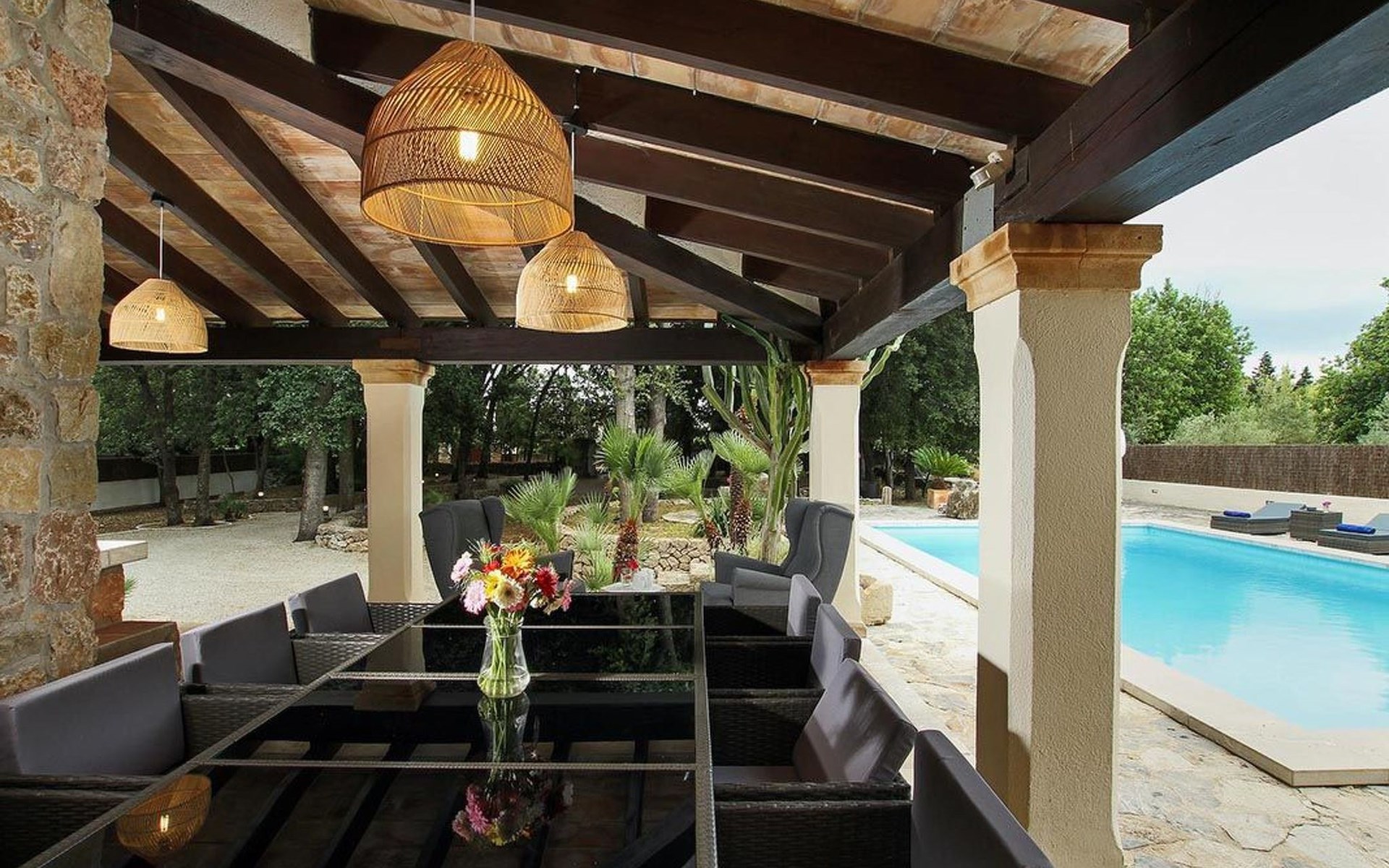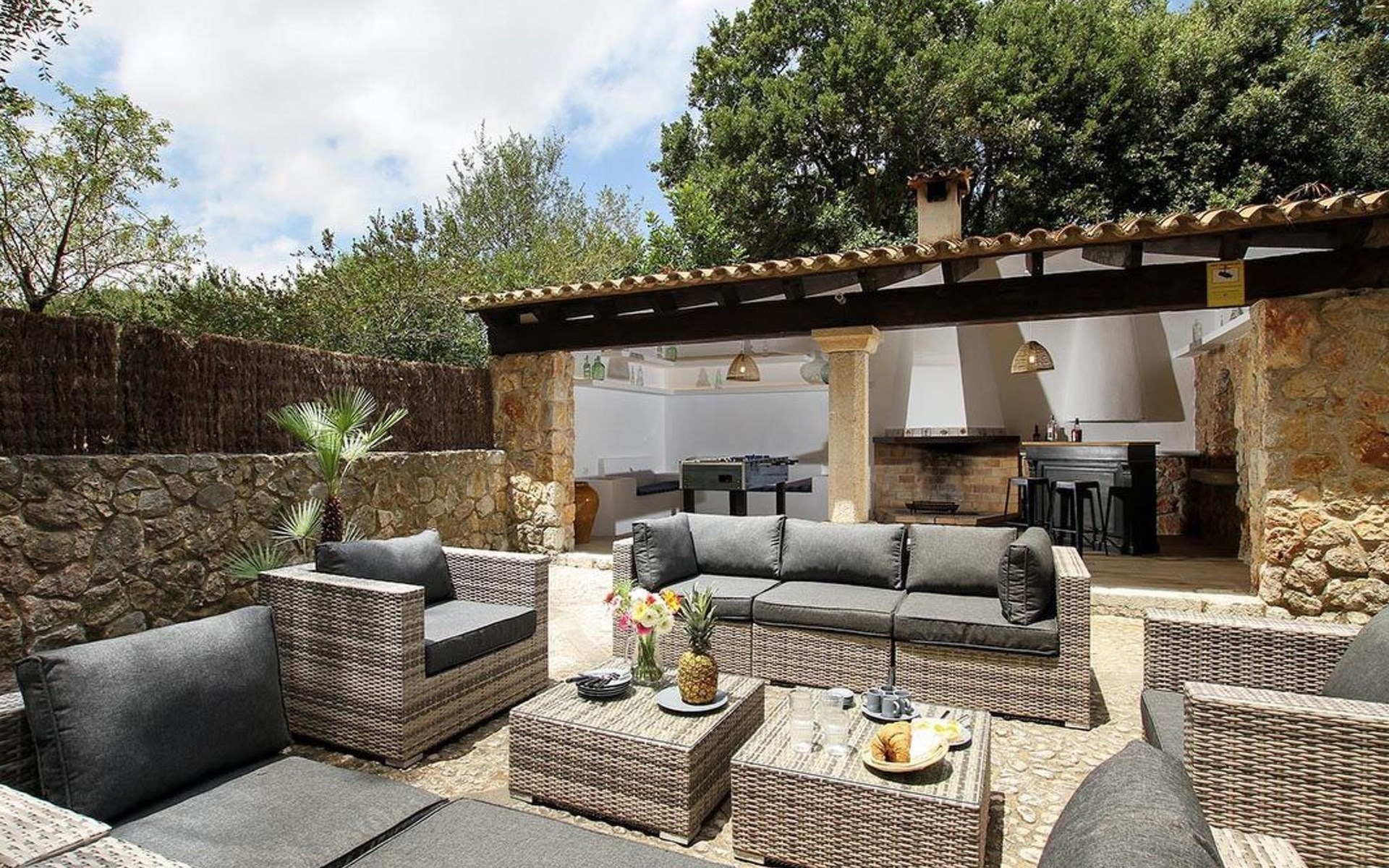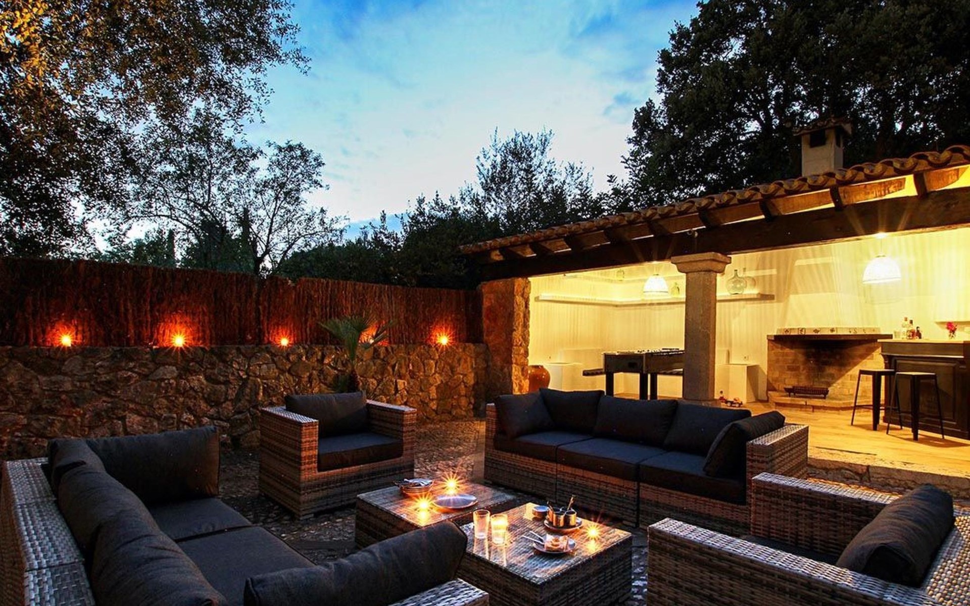 Der Außenbereich verfügt über mehrere Räume und Ruhezonen, so dass der Kunde verschiedene Atmosphären genießen kann. Die überdachte Hauptterrasse ist mit einem Außentisch für 8 Personen ausgestattet und ist die praktischste, da sie einfachen Zugang zur Küche und zum Grill hat. Die nicht überdachte Terrasse ist ideal für alle, die gerne grillen.