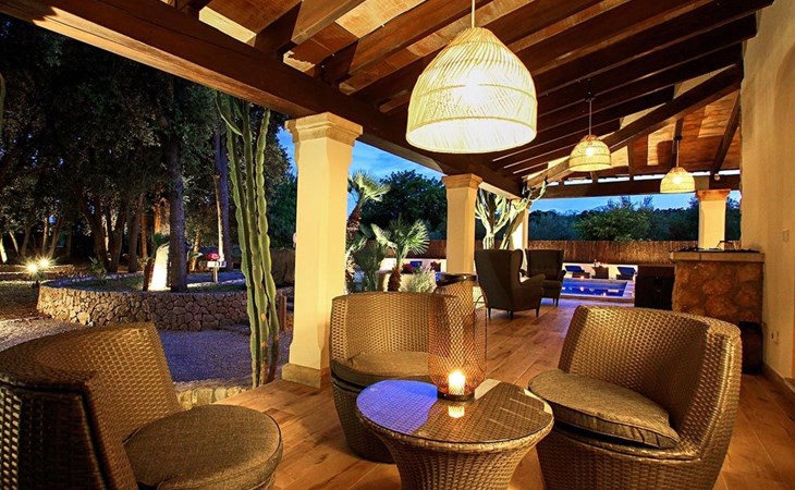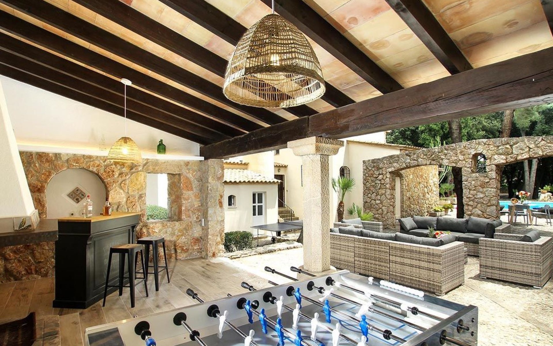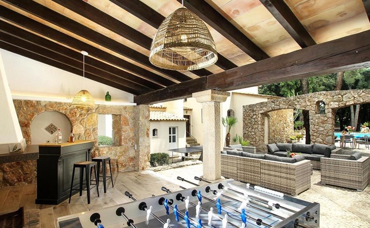 Die Chill-out-Zone, die sich auf einer anderen Terrasse befindet und durch einige schöne Steinbögen zugänglich ist, ermöglicht es denjenigen, die eine ruhigere Atmosphäre bevorzugen, sich nach dem Abendessen zu entspannen. Die andere überdachte Terrasse (im selben Raum) verfügt über eine kleine Bar und einen Tischfußball.