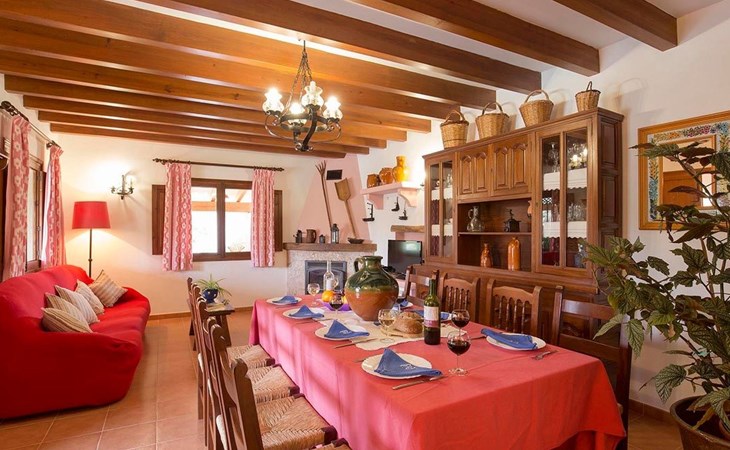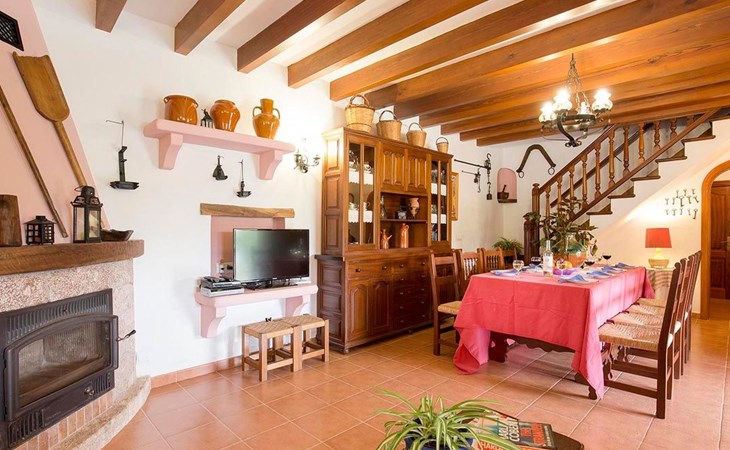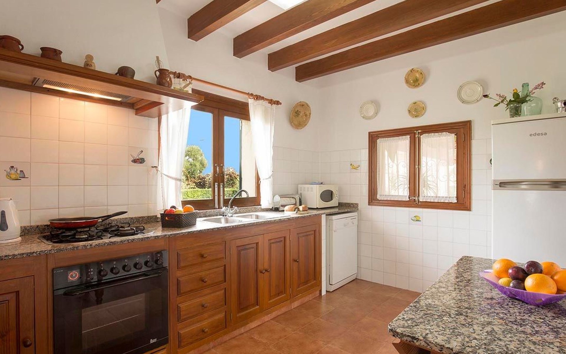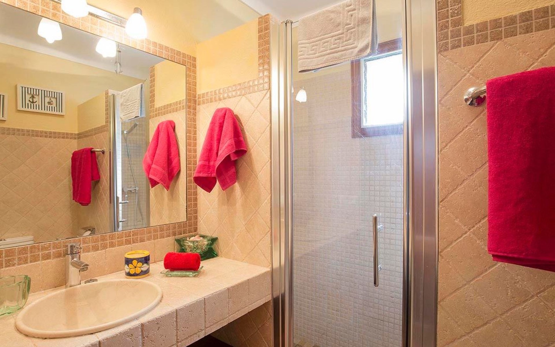 Im Inneren ist das Haus traditionell eingerichtet und mit Holzbalkendecken und Terrakottaböden dekoriert. Wir erreichen die Villa durch die Haupttür neben der vorderen Terrasse, die direkt zum geräumigen Wohnzimmer führt. Rechts führt eine Tür in die Einbauküche, die mit allen notwendigen Geräten in einem Ferienhaus ausgestattet ist. Auf dieser Ebene des Hauses gibt es auch ein Schlafzimmer mit Doppelbett und ein separates Badezimmer mit Dusche.Der Rest der Zimmer befindet sich im Obergeschoss. Sie bestehen aus zwei Doppel- und einem Zweibettzimmer sowie einem kompletten Badezimmer. Alle Zimmer sind klimatisiert (mit eingeschränkten Öffnungszeiten).