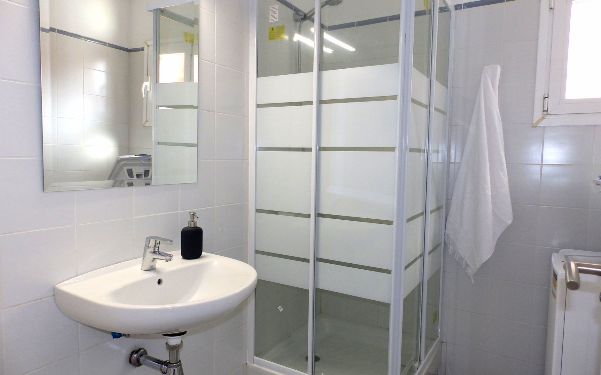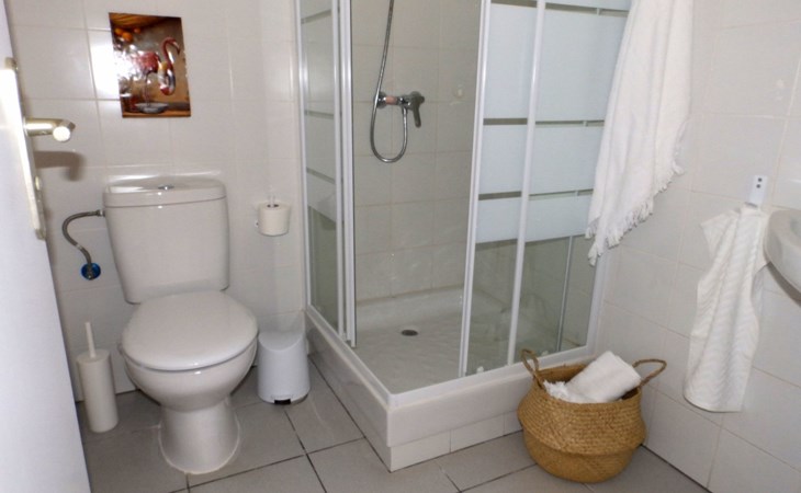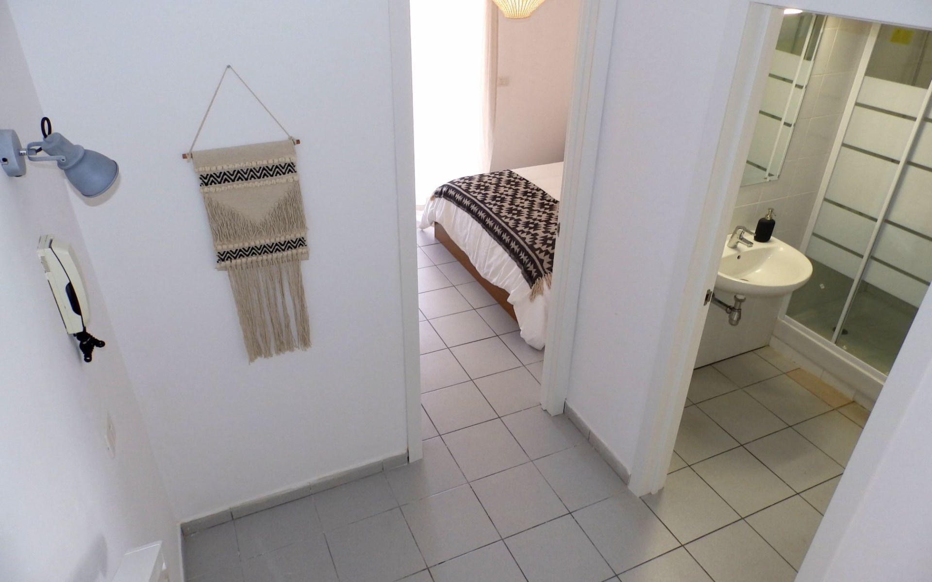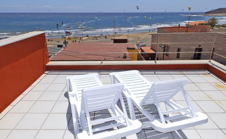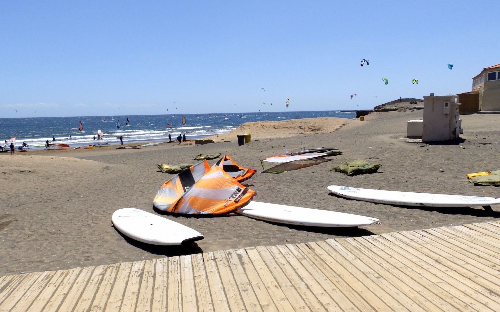 Untere Etage: zwei Schlafzimmer, eines mit einem Doppelbett und das andere mit zwei Einzelbetten, sowie ein komplettes Badezimmer mit Dusche und Waschmaschine. Außerdem gibt es einen praktischen Abstellraum, der sich perfekt für die Aufbewahrung von Sportgeräten wie Windsurf- oder Kitesurfbrettern eignet.
