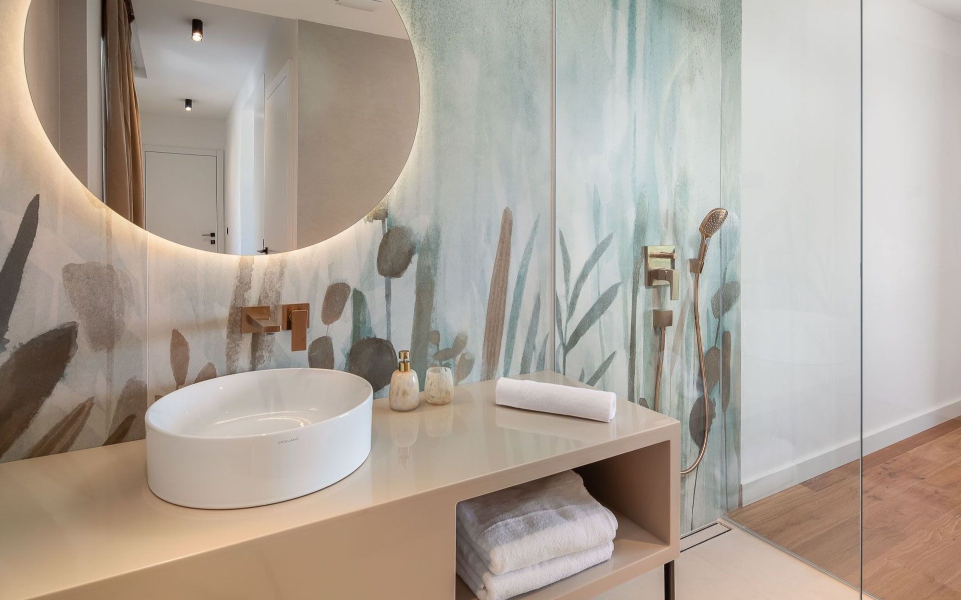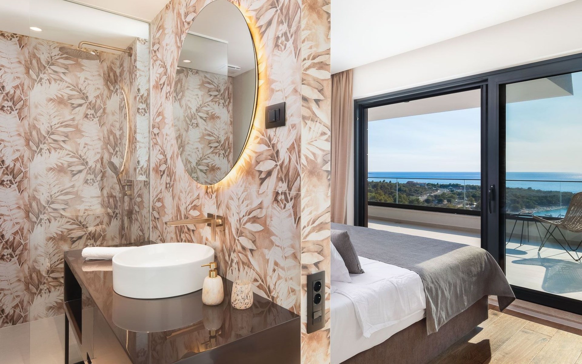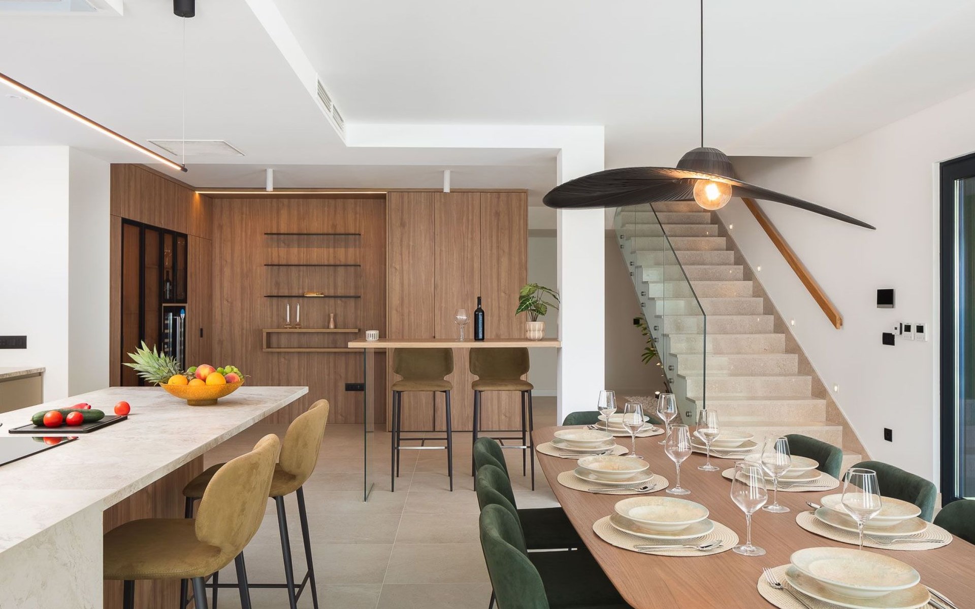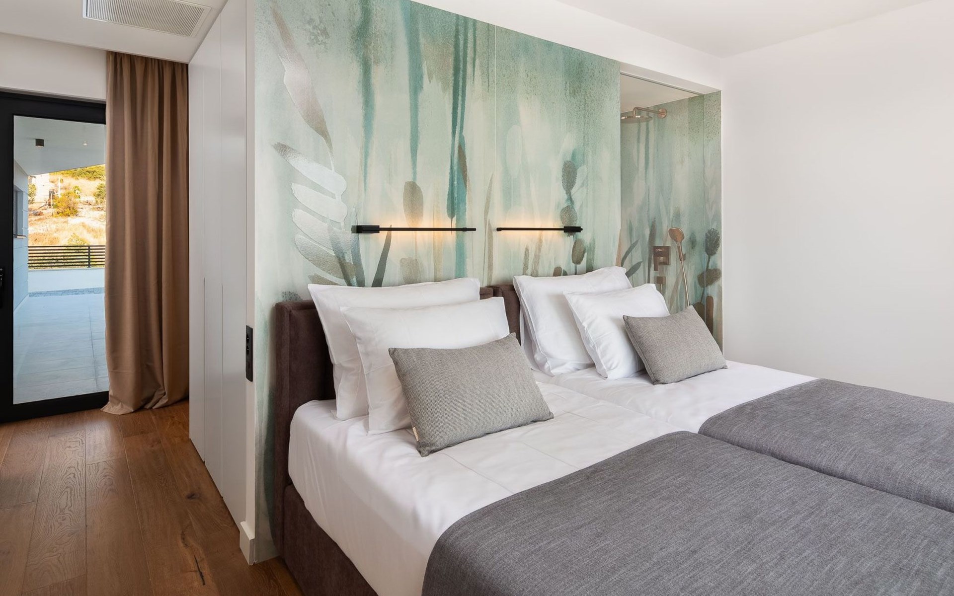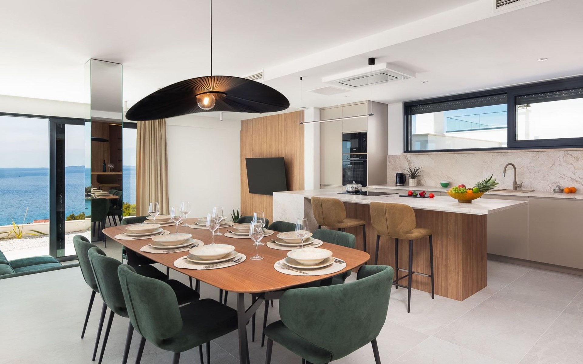 Das Innere der Villa bietet eine umfassende Ausstattung, die Ihren Aufenthalt zu einem luxuriösen Erlebnis macht. Alle Zimmer sind mit Fußbodenheizung und Klimaanlage ausgestattet, so dass Sie sich unabhängig von der Jahreszeit wohlfühlen. Eine voll ausgestattete Küche mit Geschirrspüler, Kaffeemaschine und Kaffeekapseln/Pods ermöglicht die problemlose Zubereitung von Mahlzeiten. Zu den weiteren Annehmlichkeiten gehören eine Waschmaschine und ein Wäschetrockner zur alleinigen Nutzung im Haus, so dass Sie alle praktischen Annehmlichkeiten wie zu Hause zur Hand haben.