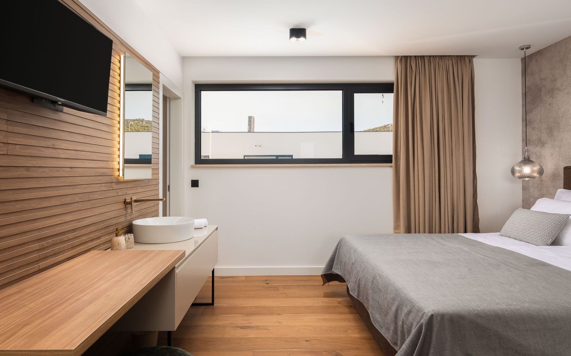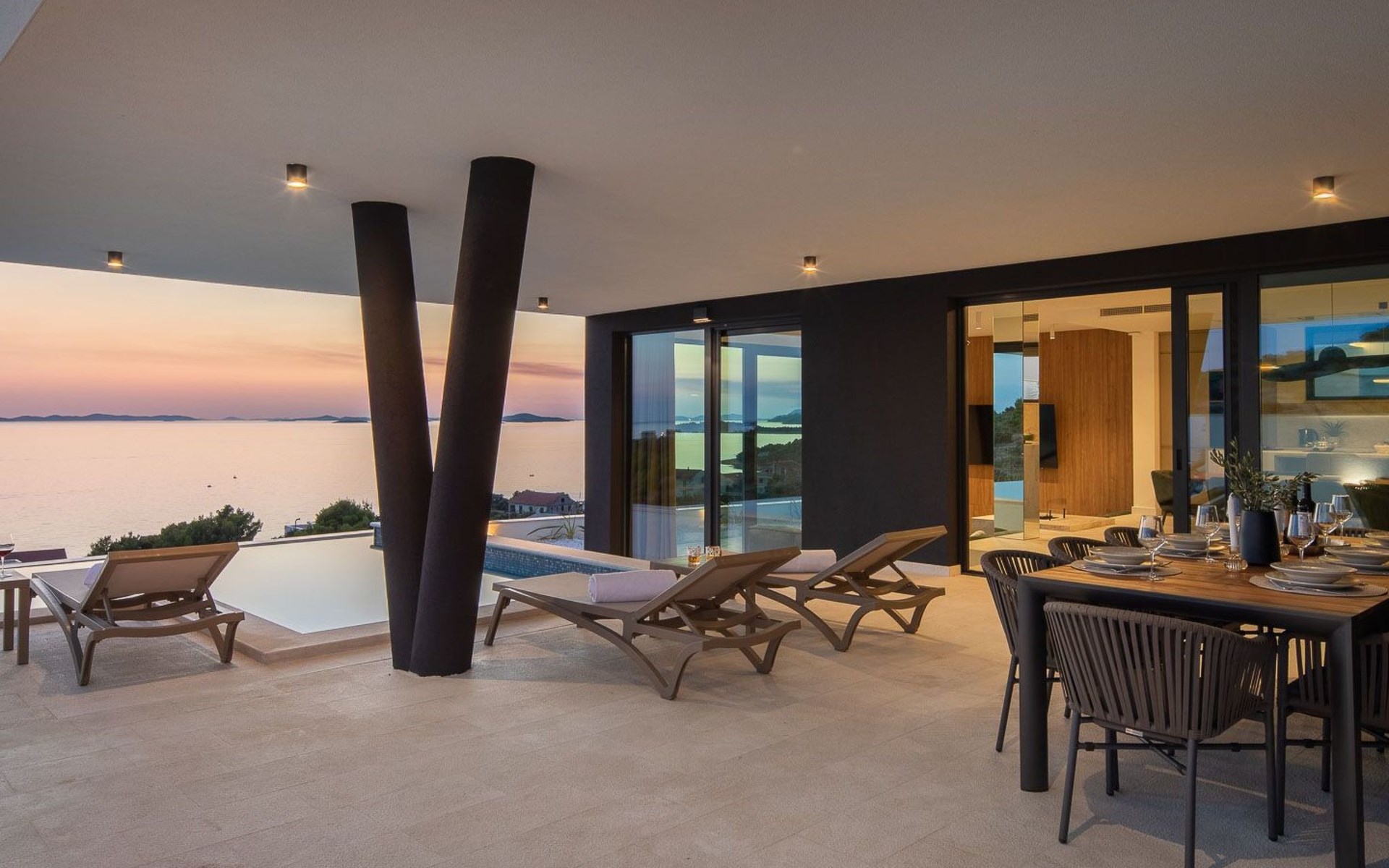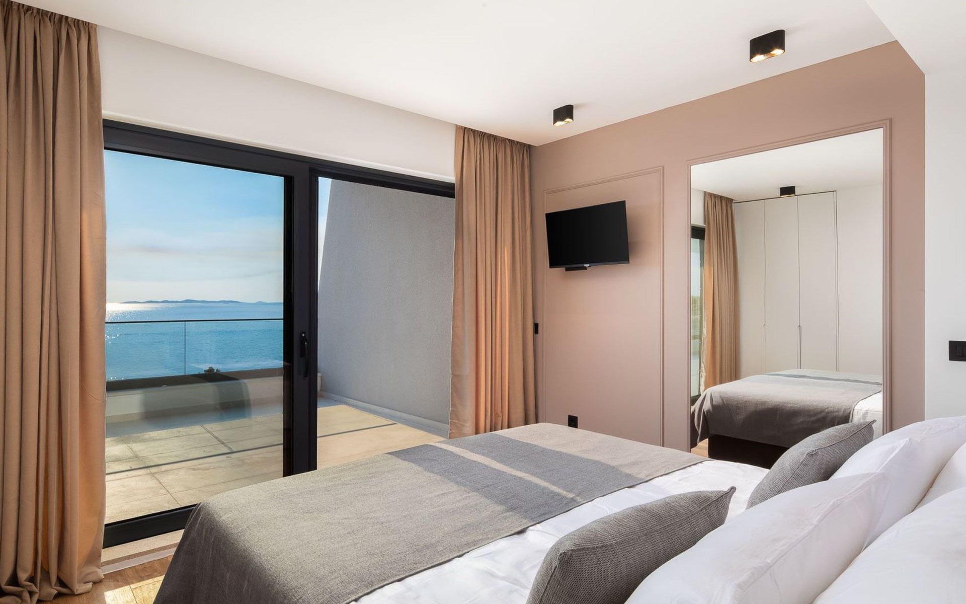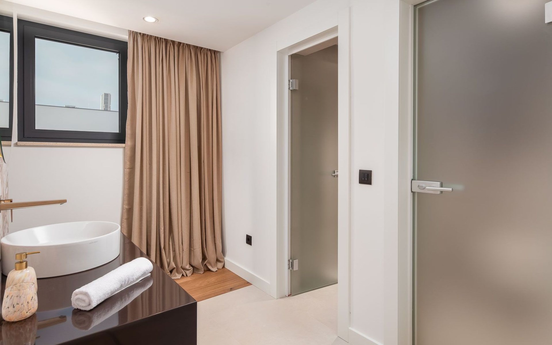 Das Innere der Villa bietet eine umfassende Ausstattung, die Ihren Aufenthalt zu einem luxuriösen Erlebnis macht. Alle Zimmer sind mit Fußbodenheizung und Klimaanlage ausgestattet, so dass Sie sich unabhängig von der Jahreszeit wohlfühlen. Eine voll ausgestattete Küche mit Geschirrspüler, Kaffeemaschine und Kaffeekapseln/Pods ermöglicht die problemlose Zubereitung von Mahlzeiten. Zu den weiteren Annehmlichkeiten gehören eine Waschmaschine und ein Wäschetrockner zur alleinigen Nutzung im Haus, so dass Sie alle praktischen Annehmlichkeiten wie zu Hause zur Hand haben.