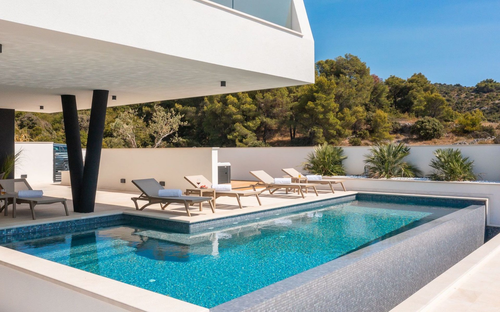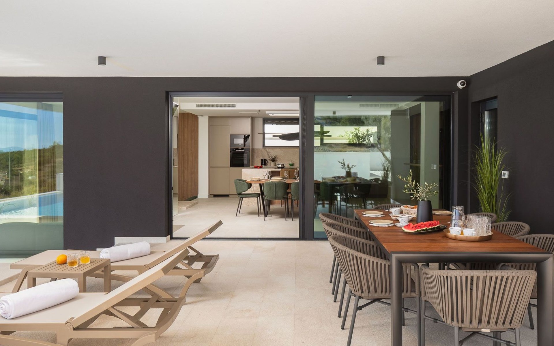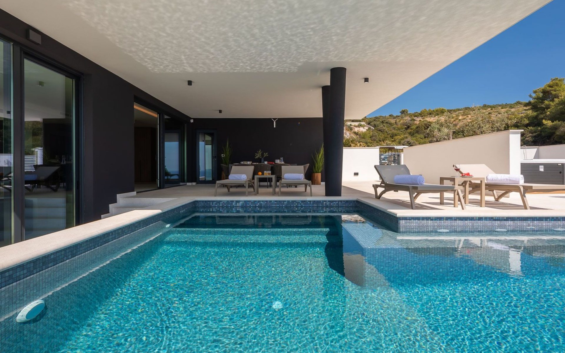 Der Außenbereich der Villa Oliva ist ebenso beeindruckend und verfügt über einen privaten Pool zur alleinigen Nutzung, der endlosen Spaß und Entspannung unter der Sonne verspricht. Die geräumige Terrasse ist ein idealer Ort, um sich zu versammeln oder ruhige Momente zu genießen, wobei die ruhige Umgebung zum allgemeinen Charme Ihres Aufenthalts beiträgt. Die Abwesenheit von Haustieren garantiert eine saubere und ruhige Umgebung für alle Gäste.