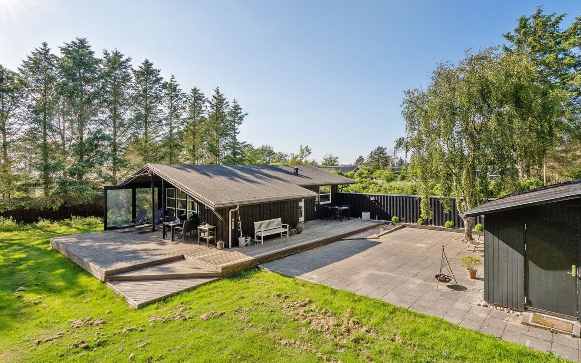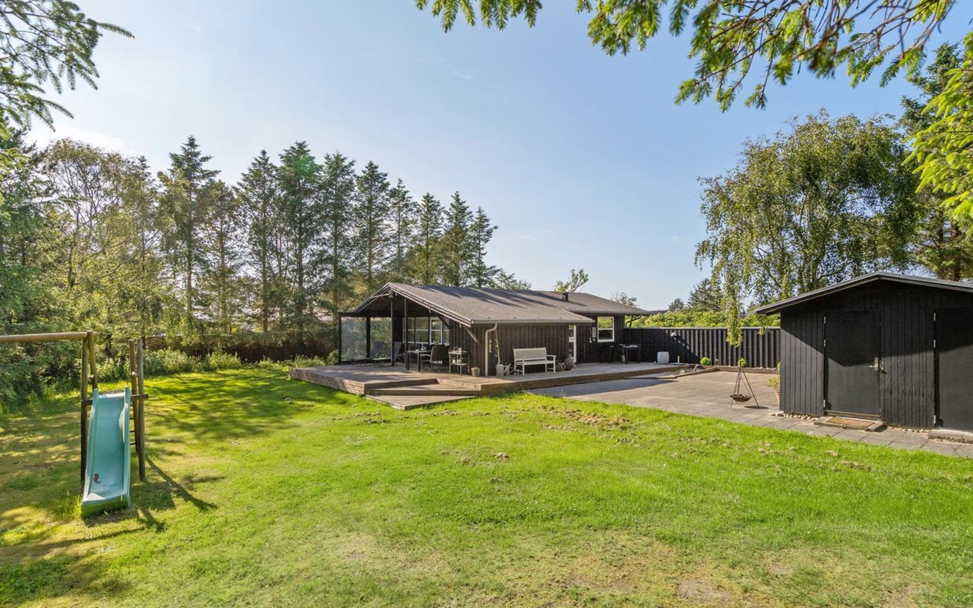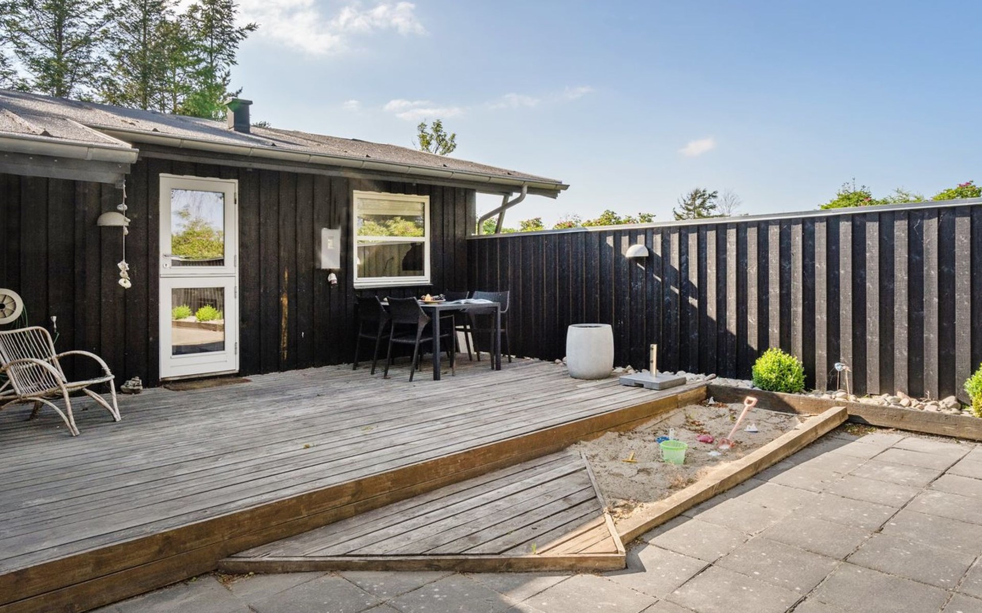 Einfamilienhaus, Baujahr 1975. 1.2 km vom Meer. Zur Alleinbenutzung: naturbelassenes Grundstück 1'252 m2. Terrasse (85 m2), Grill, Kinderspielplatz (Schaukel). Lebensmittelgeschäft 1 km. Der Besitzer akzeptiert keine Jugendgruppen.
