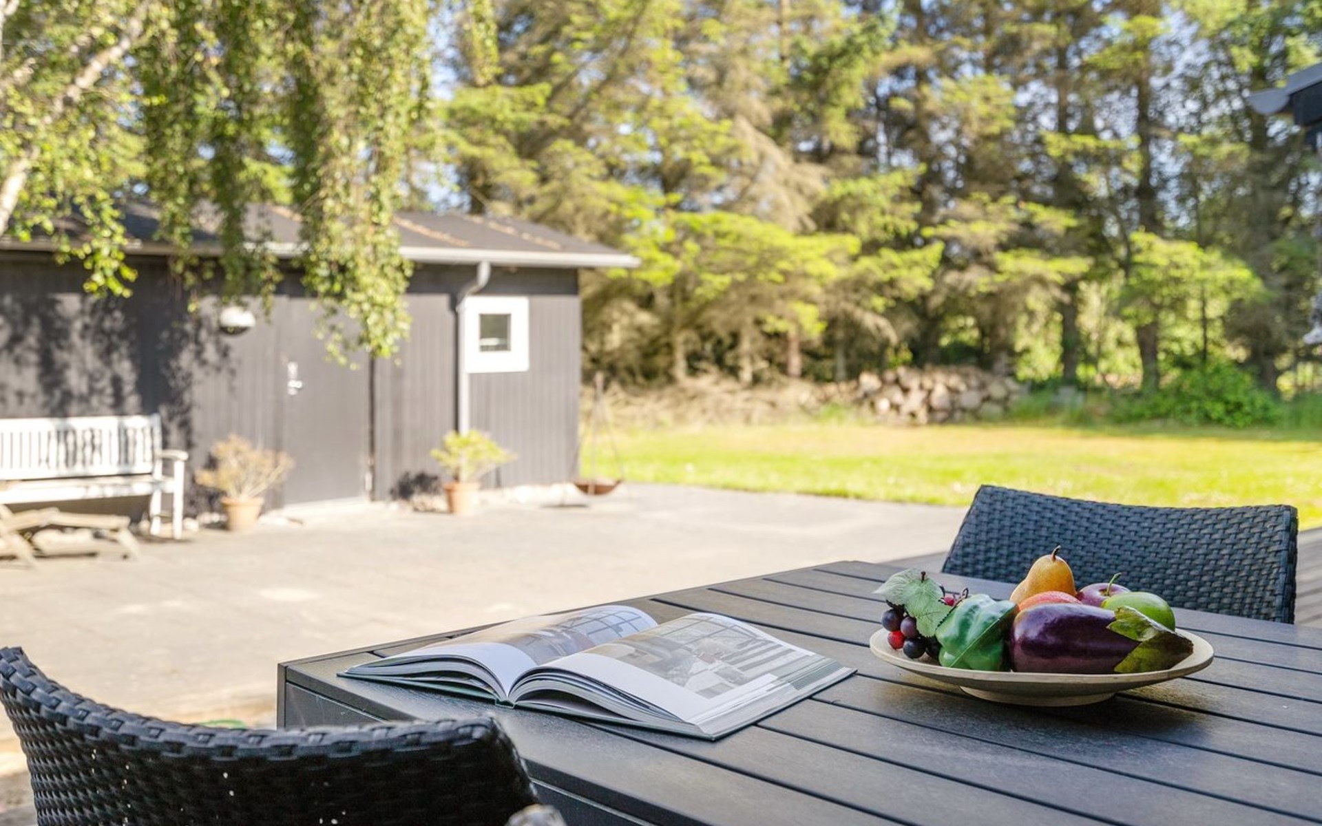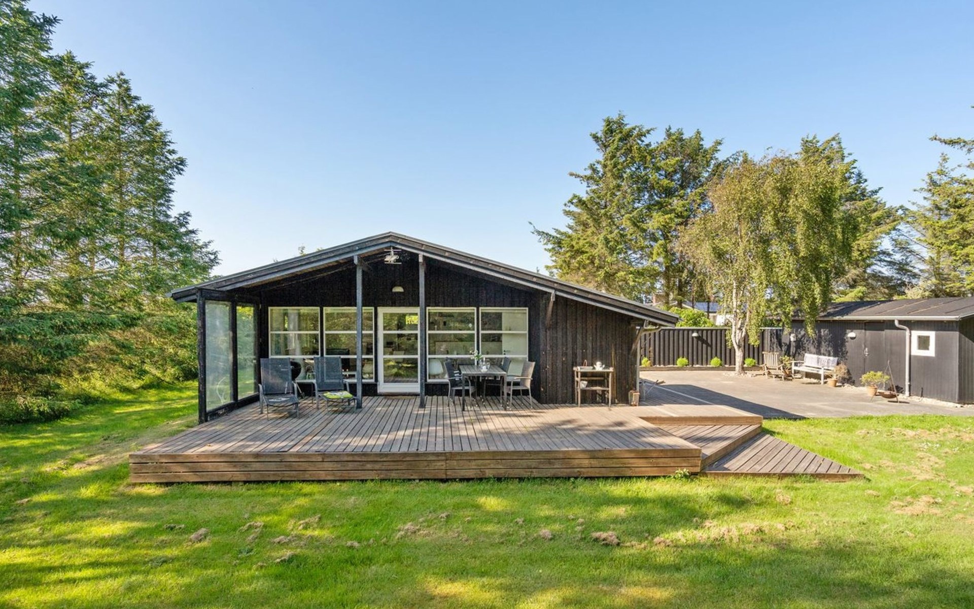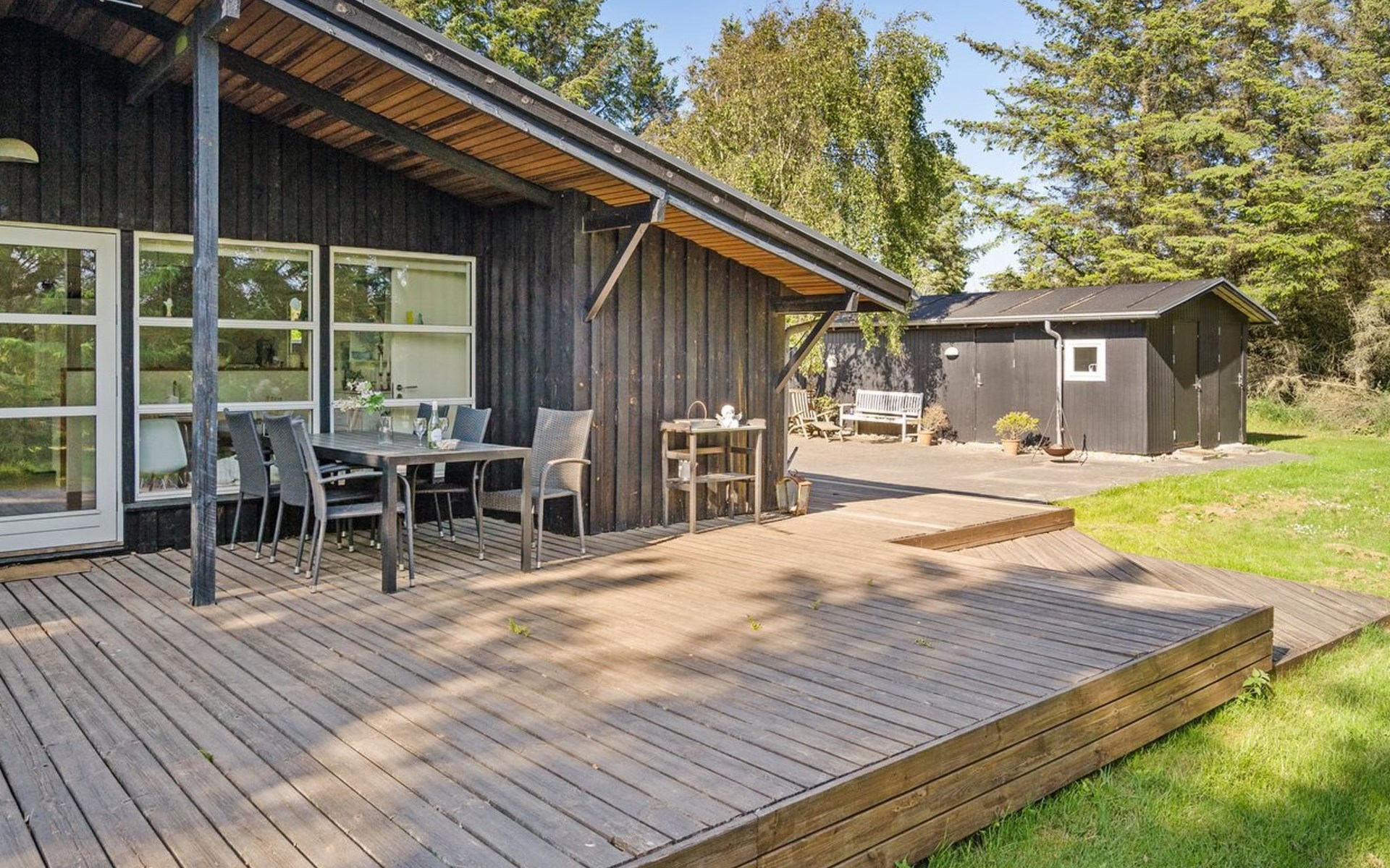 Einfamilienhaus, Baujahr 1975. 1.2 km vom Meer. Zur Alleinbenutzung: naturbelassenes Grundstück 1'252 m2. Terrasse (85 m2), Grill, Kinderspielplatz (Schaukel). Lebensmittelgeschäft 1 km. Der Besitzer akzeptiert keine Jugendgruppen.