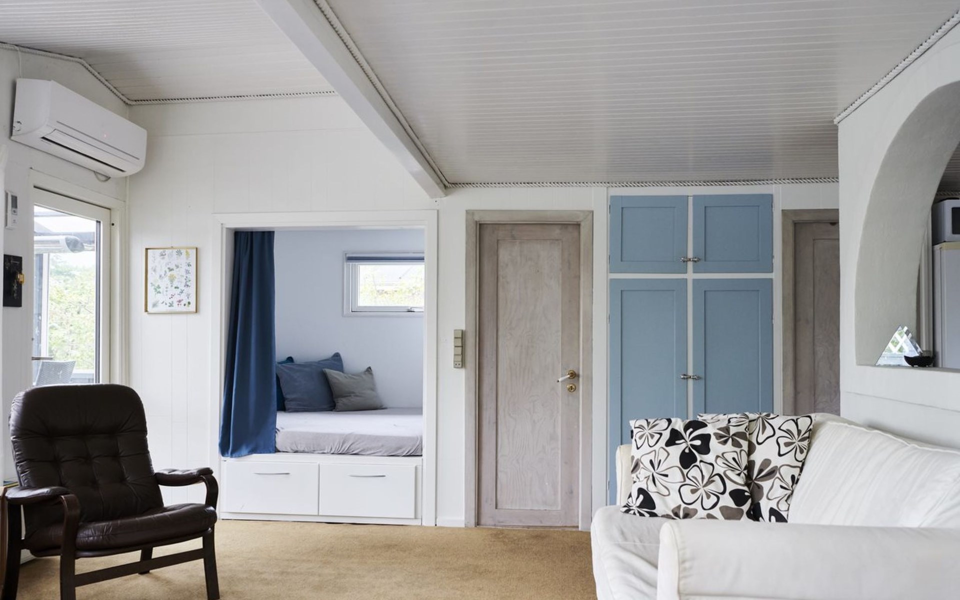 Einfamilienhaus, Baujahr 1967. 200 m vom Meer. Zur Alleinbenutzung: Grundstück 810 m2, gepflegter Garten. Aussendusche, Parkplatz beim Haus. Lebensmittelgeschäft 1.5 km. Der Besitzer akzeptiert keine Jugendgruppen.