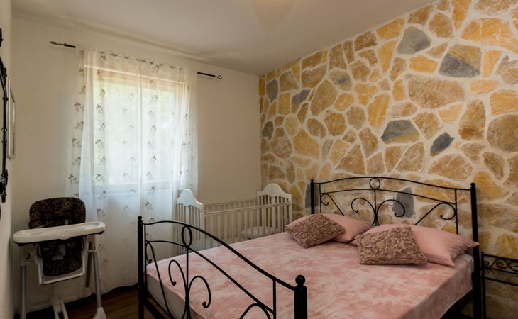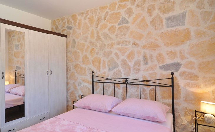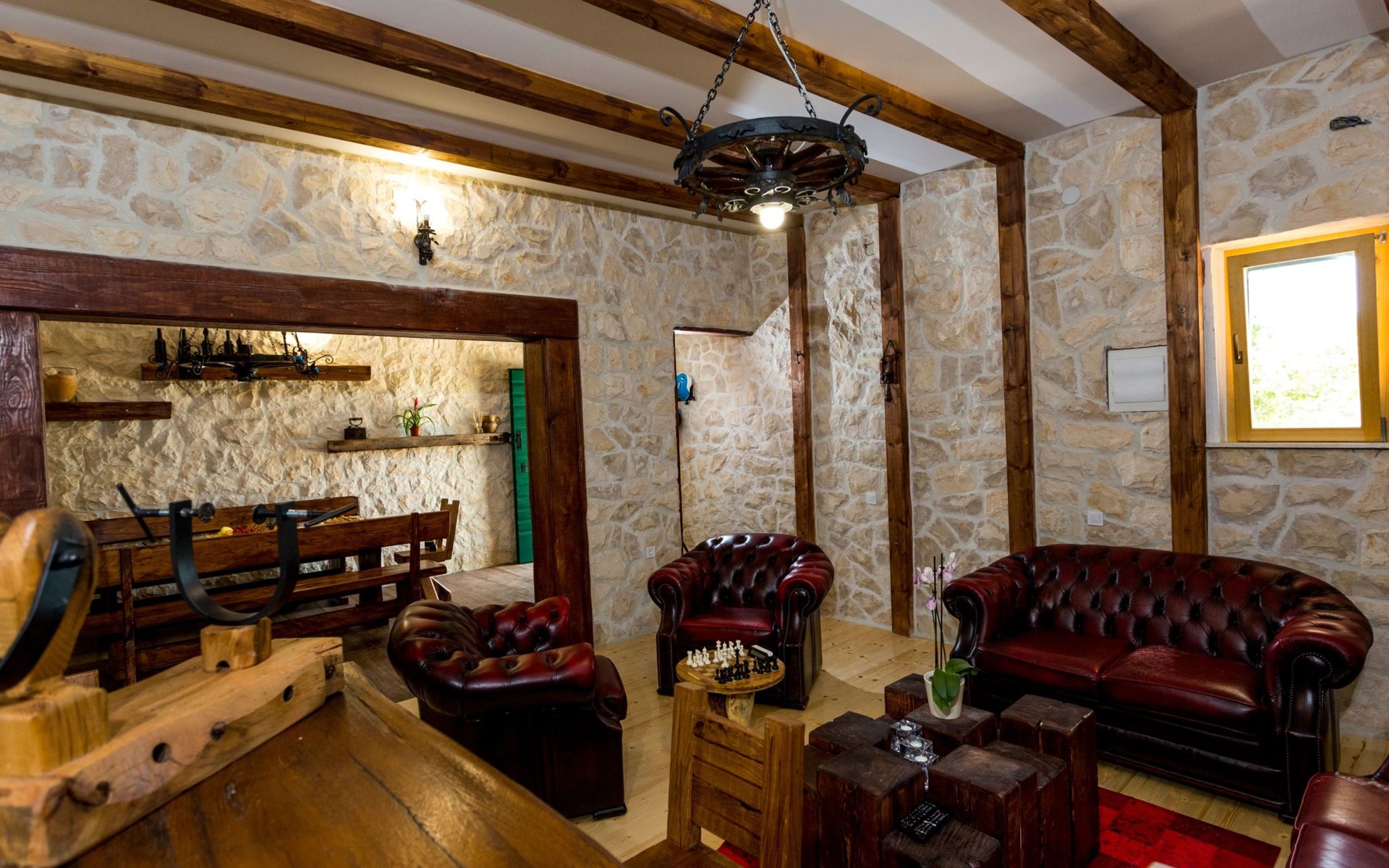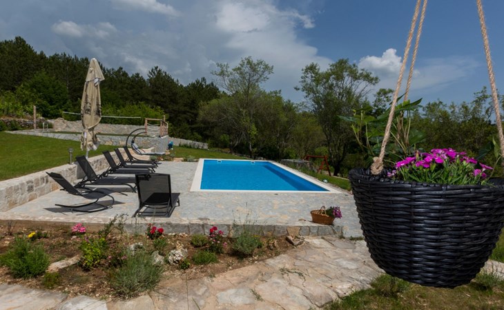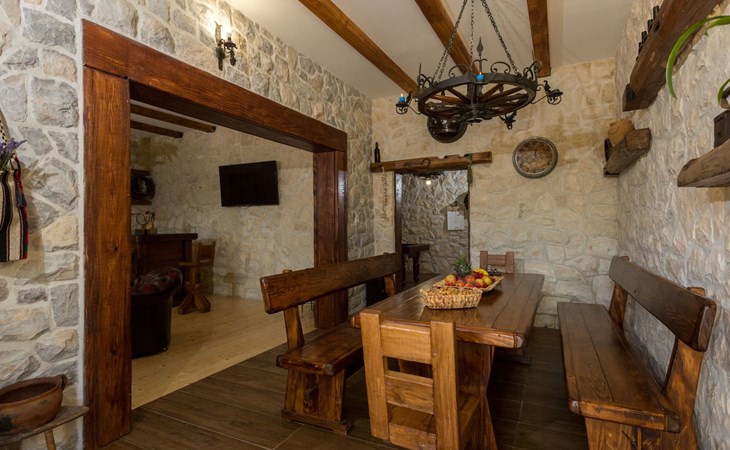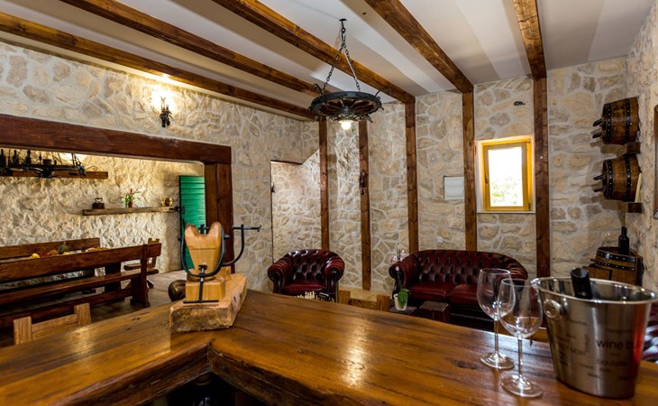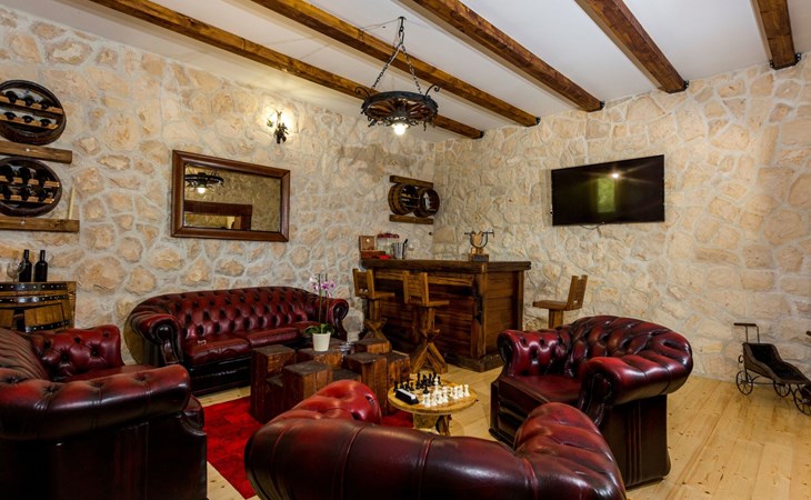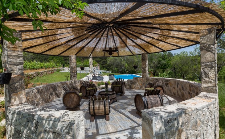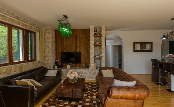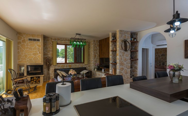 Die Villa wurde 2018 im traditionellen Stil renoviert. Es verfügt über 240 m2, auf 3 Etagen mit voll ausgestatteter Küche, 5 Schlafzimmern, 3 Badezimmern, 2 Wohnzimmern (75 m2 + 20 m2) und Balkon. Im Erdgeschoss befindet sich ein 80 m2 großer Wohn-/Partyraum (Konoba) mit Innenausstattung aus Stein-/Holzmaterialien. Ein großer Billardtisch, luxuriöse Sitzmöbel, ein großer Flachbildfernseher und ein Audiosystem mit Karaoke + Esstischgarnitur bieten den Gästen einen großartigen Ort für Spaß und Party den ganzen Tag und die ganze Nacht. Auf dieser Etage befindet sich eine Toilette. Im 1. Stock gibt es: große neue, voll ausgestattete Küche, 2 Schlafzimmer, Badezimmer und Wohnzimmer. Es verfügt über einen Kamin für den Winter und eine Klimaanlage für den Sommer. Der große Balkon (30 m²) bietet eine Lounge-Sitzgarnitur im Freien und einen großen Küchentisch, sodass Gäste im Freien zu Mittag essen oder einfach nur den Blick auf den Pool und die Umgebung rund um das Haus genießen können. Im 2. Stock gibt es 3 große Schlafzimmer und ein großes Badezimmer mit Whirlpool.
