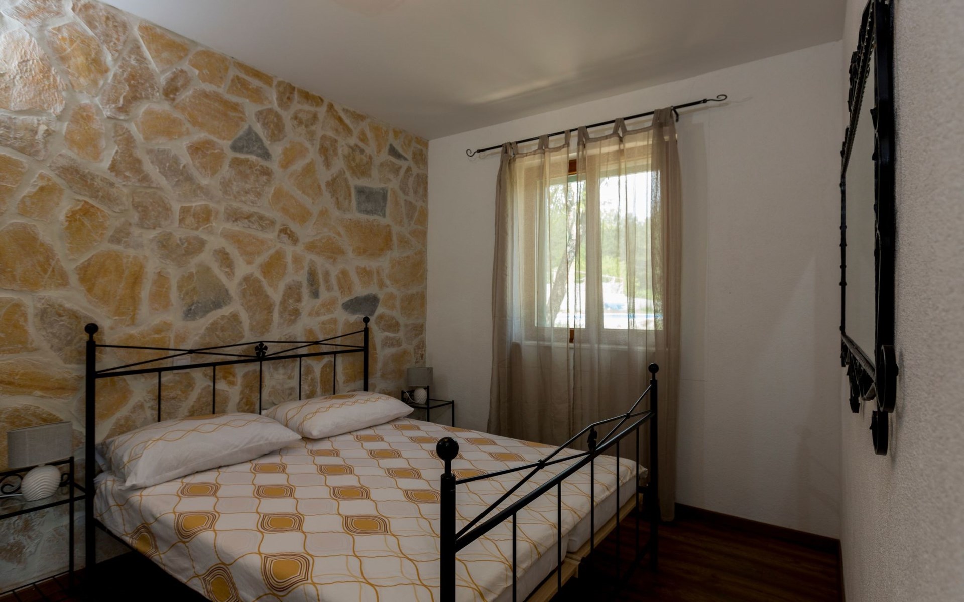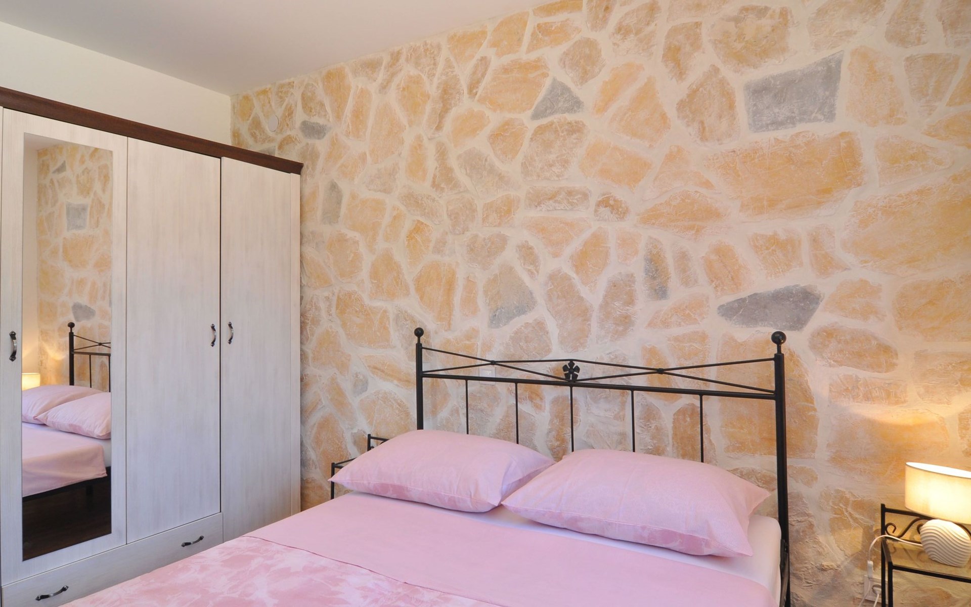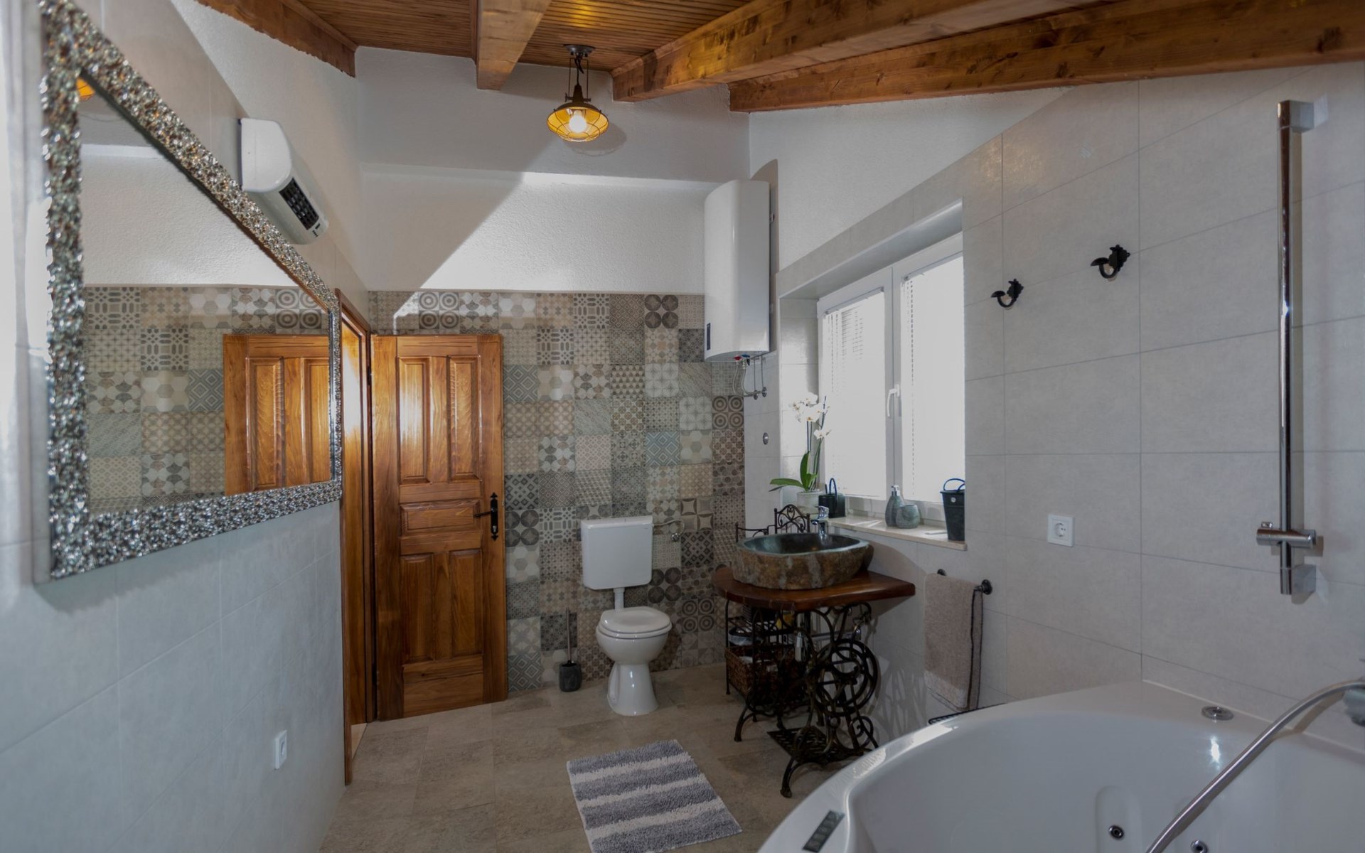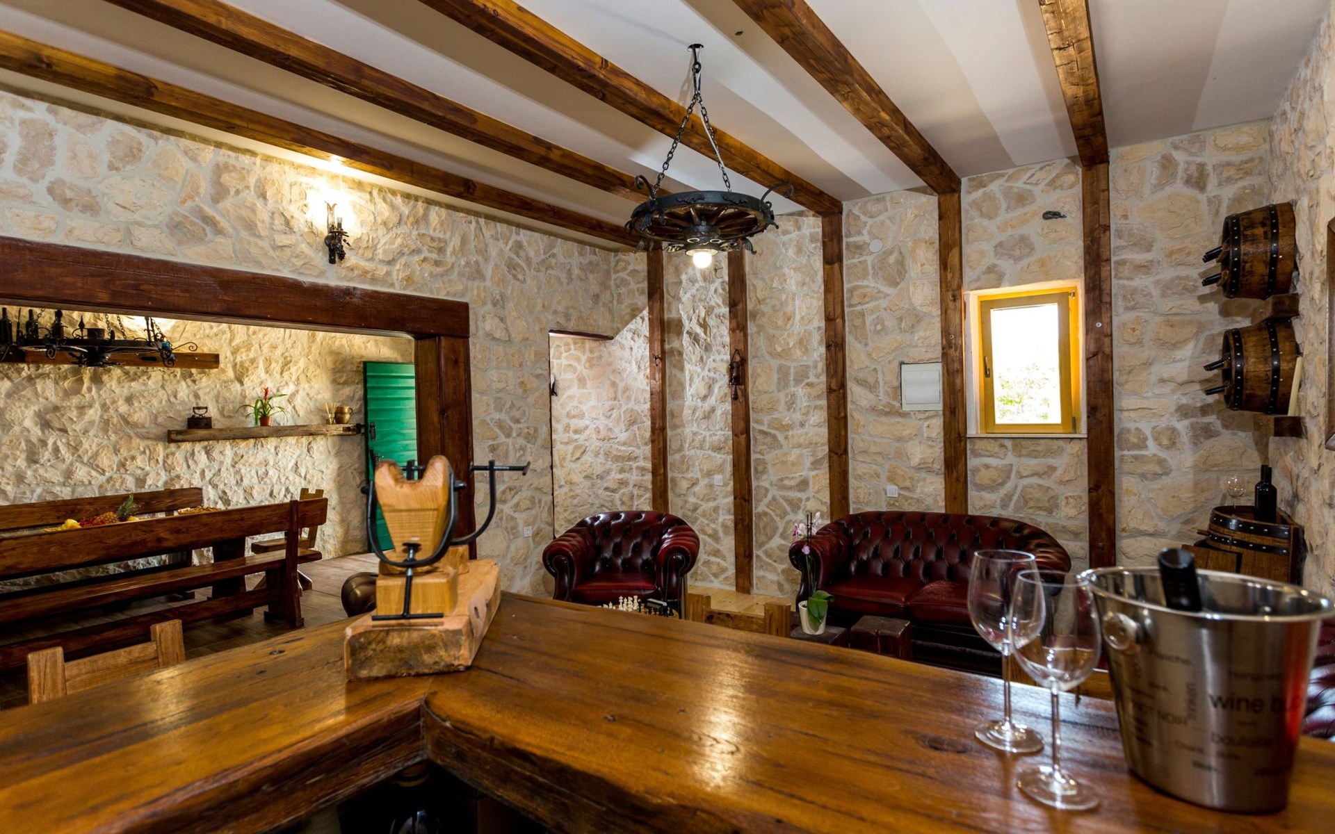 Die Villa wurde 2018 im traditionellen Stil renoviert. Es verfügt über 240 m2, auf 3 Etagen mit voll ausgestatteter Küche, 5 Schlafzimmern, 3 Badezimmern, 2 Wohnzimmern (75 m2 + 20 m2) und Balkon. Im Erdgeschoss befindet sich ein 80 m2 großer Wohn-/Partyraum (Konoba) mit Innenausstattung aus Stein-/Holzmaterialien. Ein großer Billardtisch, luxuriöse Sitzmöbel, ein großer Flachbildfernseher und ein Audiosystem mit Karaoke + Esstischgarnitur bieten den Gästen einen großartigen Ort für Spaß und Party den ganzen Tag und die ganze Nacht. Auf dieser Etage befindet sich eine Toilette. Im 1. Stock gibt es: große neue, voll ausgestattete Küche, 2 Schlafzimmer, Badezimmer und Wohnzimmer. Es verfügt über einen Kamin für den Winter und eine Klimaanlage für den Sommer. Der große Balkon (30 m²) bietet eine Lounge-Sitzgarnitur im Freien und einen großen Küchentisch, sodass Gäste im Freien zu Mittag essen oder einfach nur den Blick auf den Pool und die Umgebung rund um das Haus genießen können. Im 2. Stock gibt es 3 große Schlafzimmer und ein großes Badezimmer mit Whirlpool.