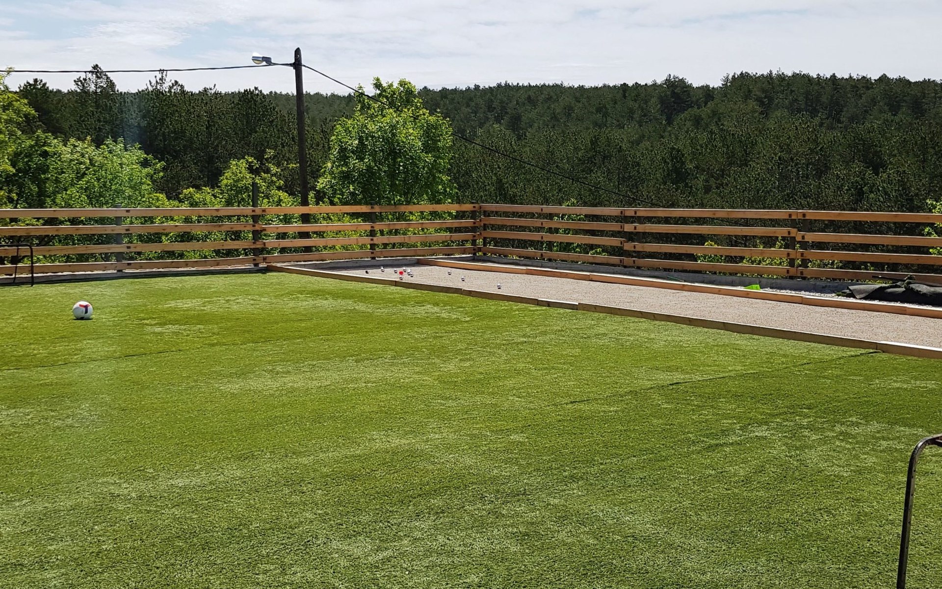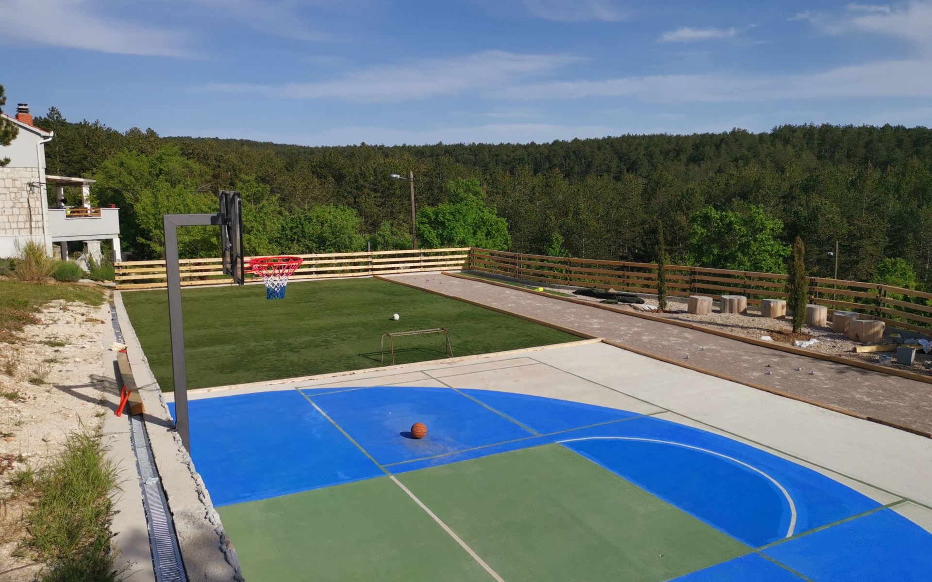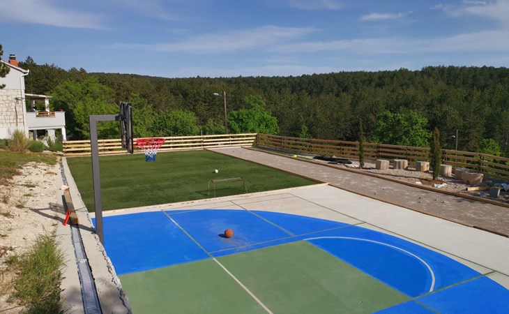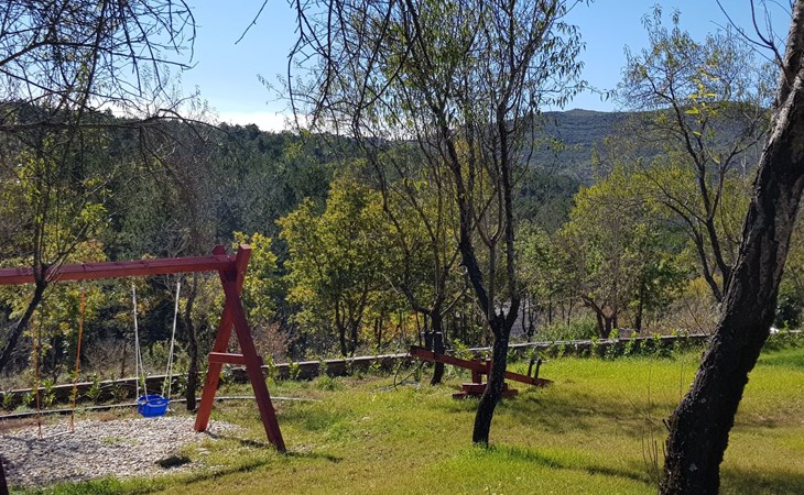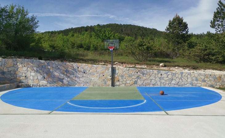 Das Grundstück ist 3000 m2 groß und verfügt über einen großen beheizten Swimmingpool (10 m x 4 m). Es verfügt über eine Sonnenterrasse, ein Multisportgelände auf 550 m2, einen Kinderspielplatz und einen schönen Garten. Der Ort ist entspannend für Geist und Körper und bietet den Gästen viel Privatsphäre. Die große Sonnenterrasse rund um den beheizten Pool mit Multisportgelände bietet einen großartigen Ort zum Ausruhen direkt neben dem bewaldeten Berggebiet. Der große Garten rund um die Villa bietet großartige Möglichkeiten für einen entspannten, körperlich und geistig erfrischenden Urlaub. Für aktive Gäste bieten wir Fahrräder für eine zauberhafte Mountainbike-/Crossbike-Offroad-Tour von mehr als 22 km Länge an, die direkt vor der Villa beginnt.