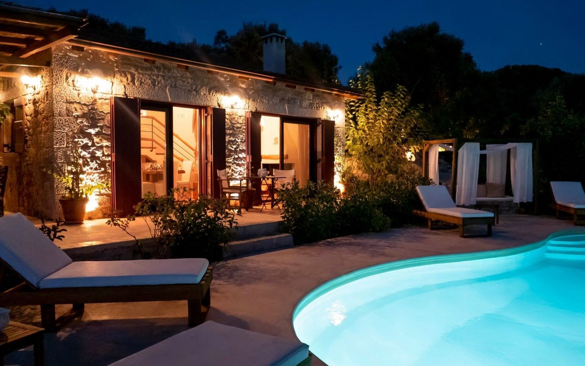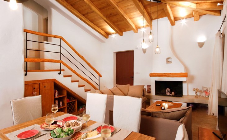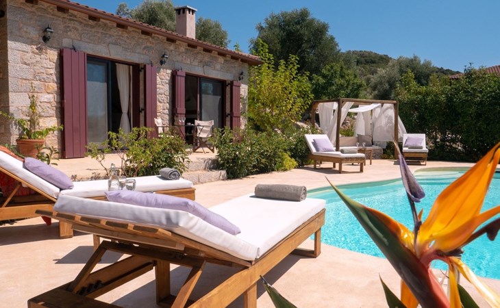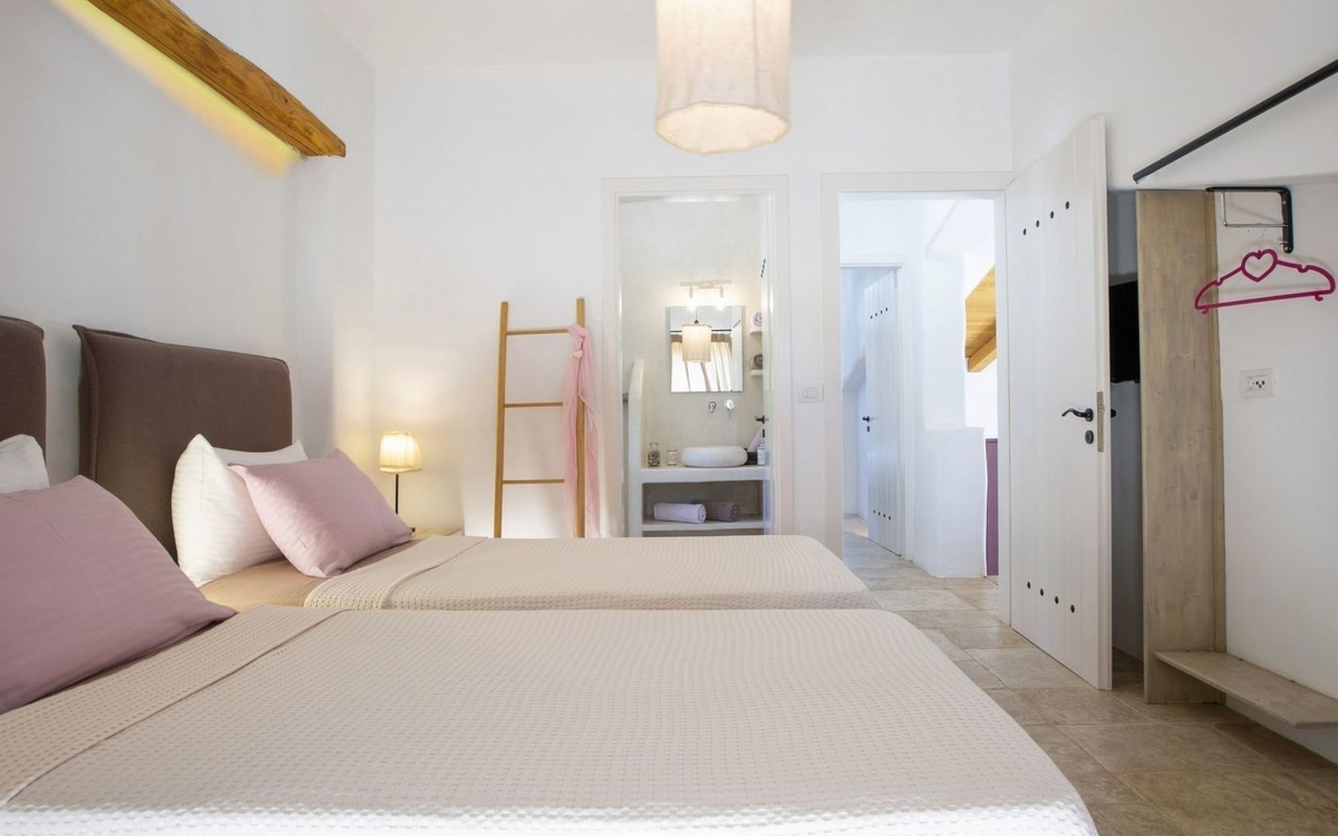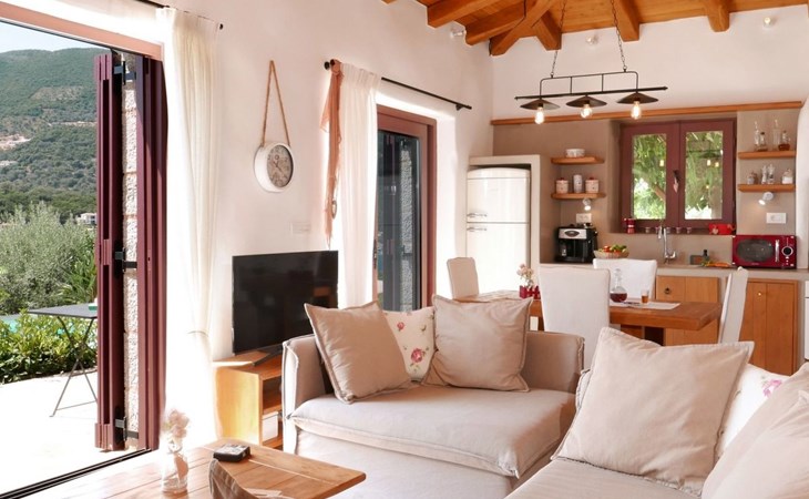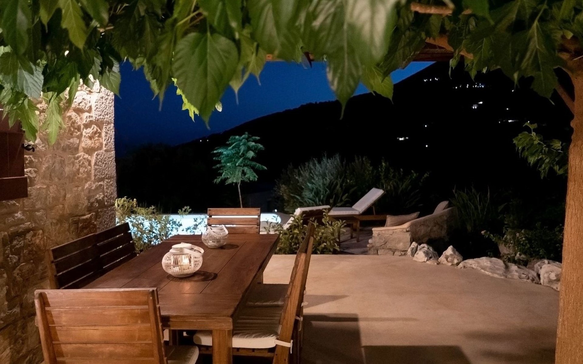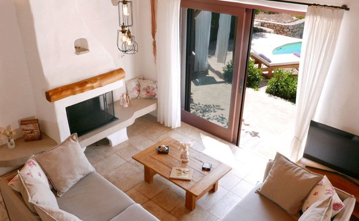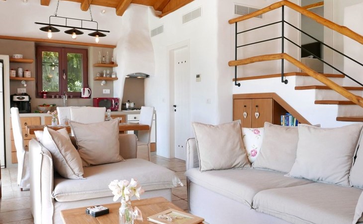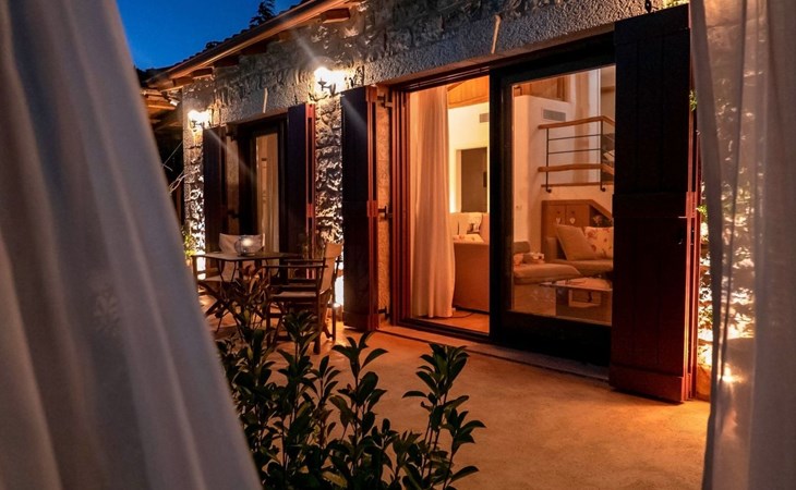 Luxus und Natur Auf dem vier Hektar großen Grundstück wurden erdige Farben und natürliche Materialien gewählt, um die Natur nicht zu verletzen und die Wohnungen in Harmonie mit ihr zu errichten, während die Flora der Umgebung erhalten bleibt und sie buchstäblich im Schoß des Hügels versteckt wird. Bänke aus Naturstein, verschiedene Ebenen, Wege, Olivenbäume, Gemüsegärten, Obstbäume, schöne Ecken, versteckt oder sichtbar, bilden die Hauptbestandteile des Anwesens. Die einzelnen Steinwohnungen mit der modernen Ausstattung, den geräumigen Terrassen und den privaten Swimmingpools bilden einen diskreten Luxus.