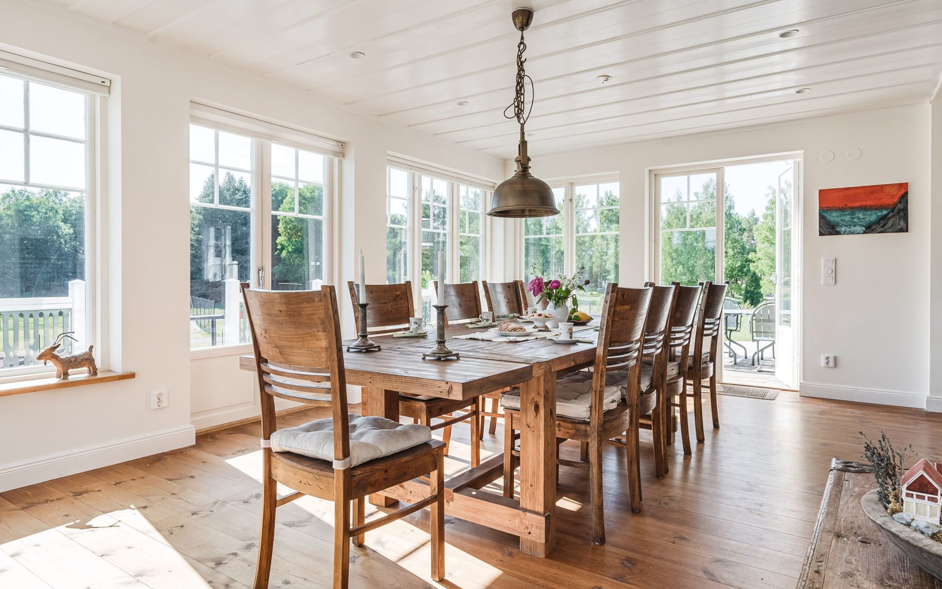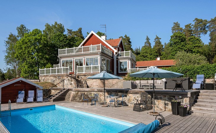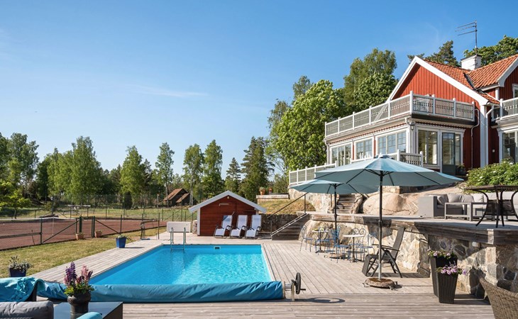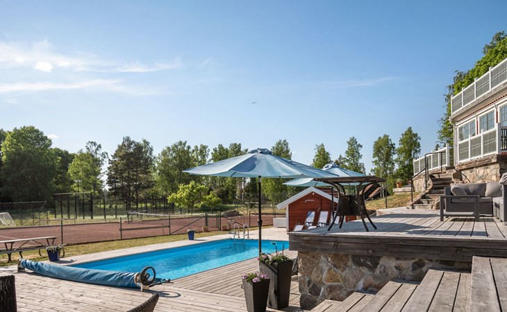 Sehr schönes Haus "Skarpsätter Sportgård", umgeben von Bäumen und Feldern. Alleinstehende Lage. Zur Alleinbenutzung: naturbelassenes Grundstück, Naturgarten, Schwimmbad beheizt, nicht einsehbar (saisonale Verfügbarkeit: 15.Mai. und 15.Sep.). Tennis (1 x Sandbelag), Tischtennis, Parkplatz beim Haus. Bushaltestelle "Gubbklinten" 4.5 km, Bahnstation "Strängnäs" 21 km. Ein Teil des Hauses ist geschlossen und nicht bewohnt.