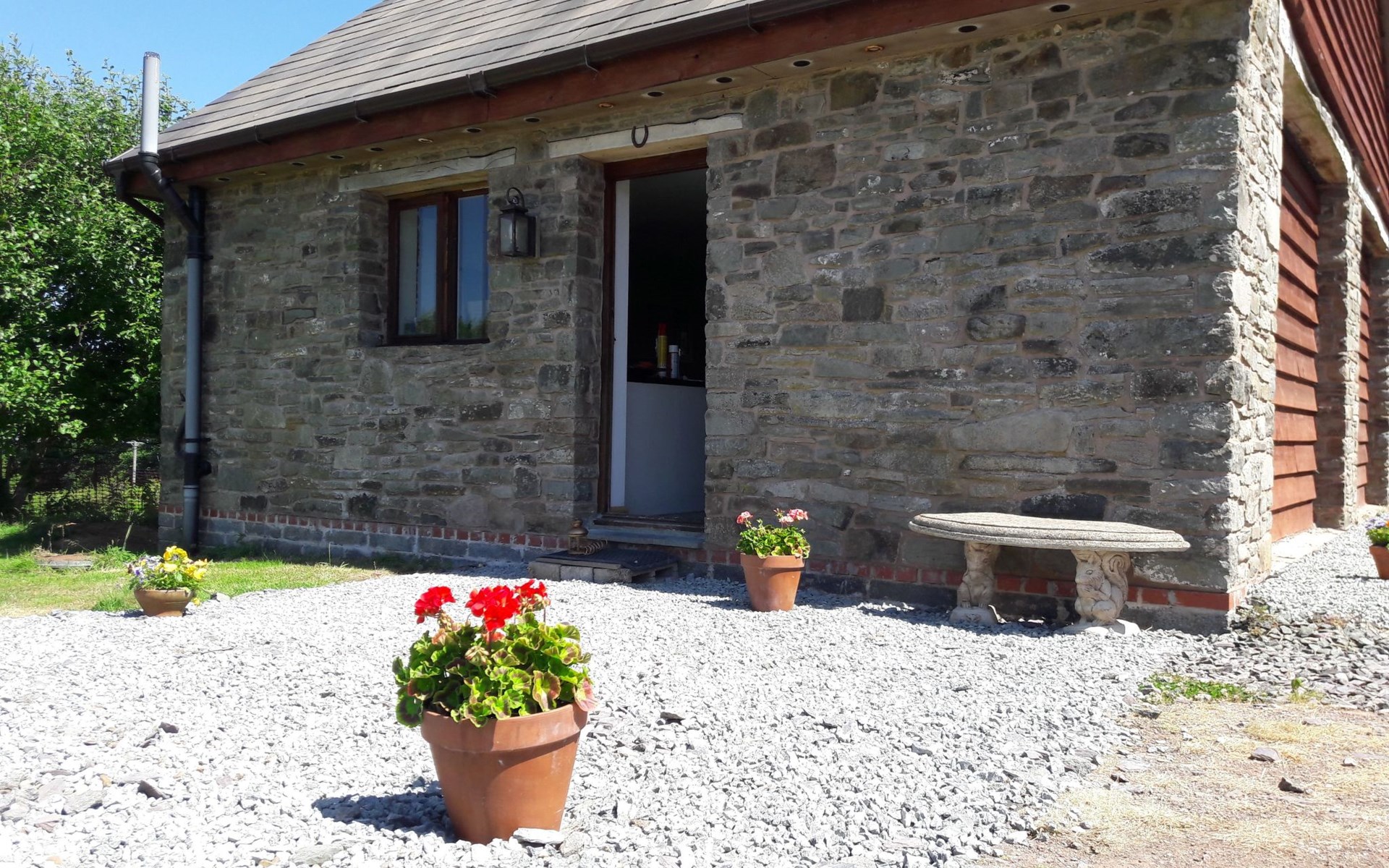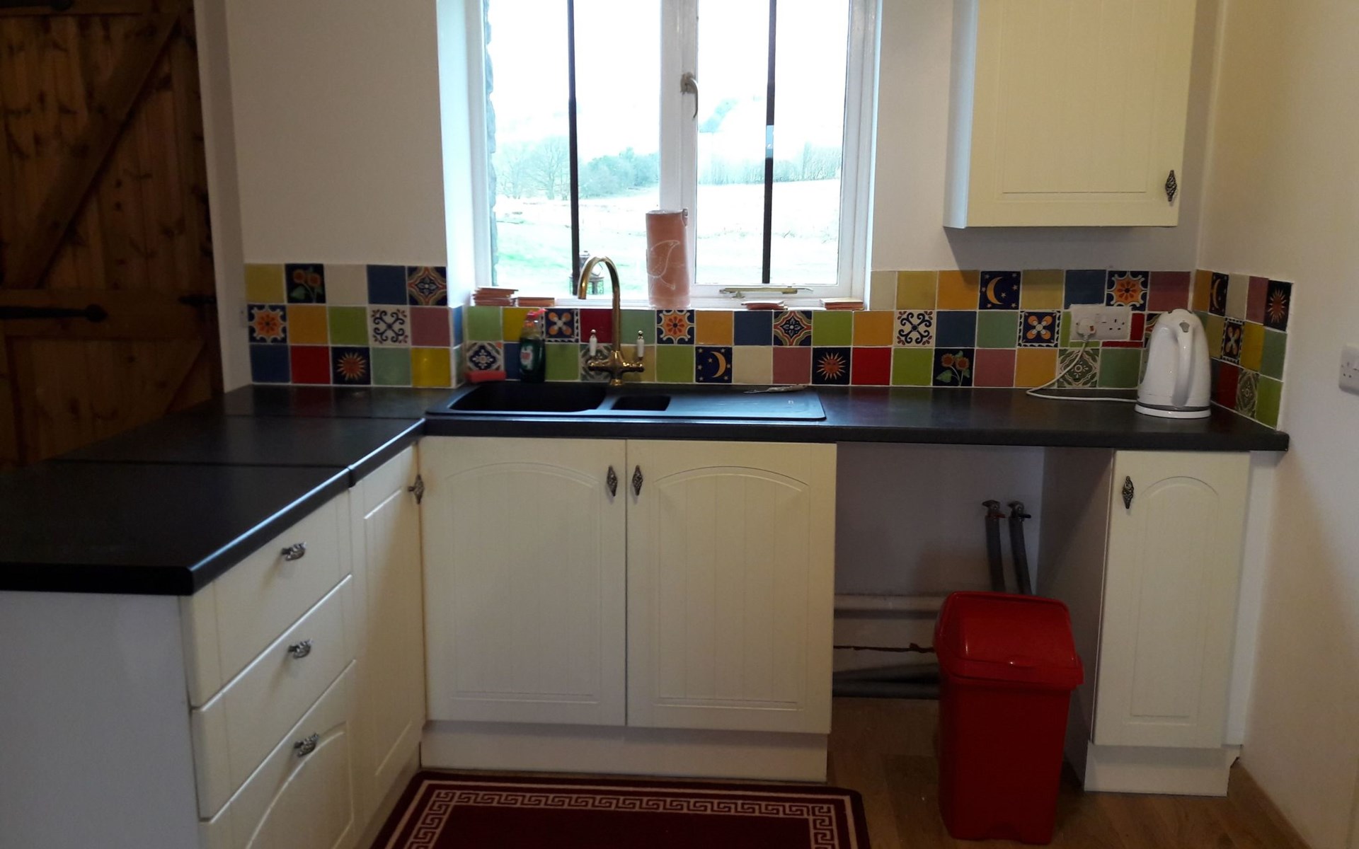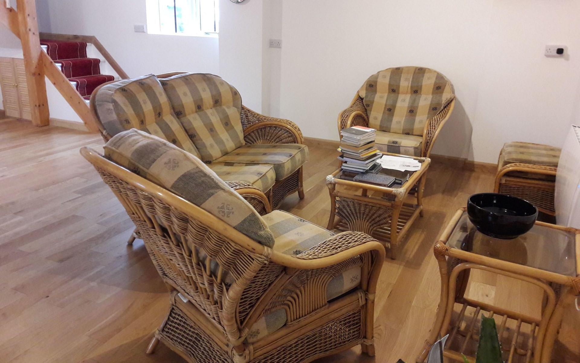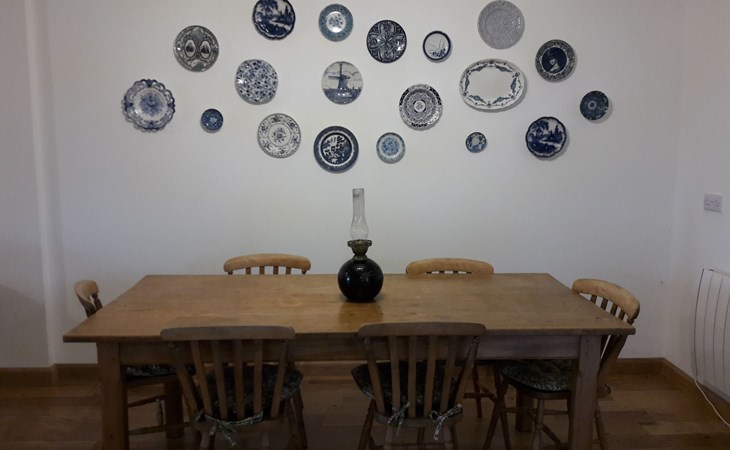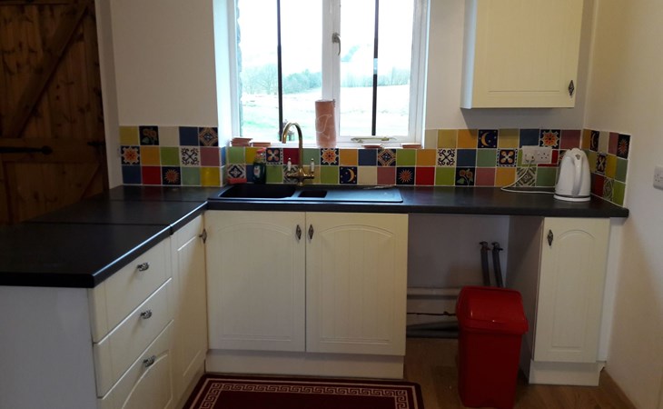 - Das Barn Annexe ist geräumig, schick, sauber und komfortabel. Es ist bewusst nicht überladen, aber mit allem ausgestattet, was man für einen angenehmen Aufenthalt braucht. - Die untere Etage ist offen gestaltet und verfügt über eine geräumige Küche, einen Ess- und einen Wohnbereich sowie eine Toilette. Die Küche ist mit Herd, Grill, Backofen, Mikrowelle, Kühlschrank und Gefrierschrank ausgestattet. Der Essbereich bietet Platz für bis zu sechs Personen an einem traditionellen Esstisch im Bauernhausstil. Der Wohnbereich verfügt über einen Satellitenfernseher mit Soundbar und Bassanlage sowie bequeme Sitzgelegenheiten - genau das Richtige zum Entspannen! - Im Obergeschoss befinden sich zwei Schlafzimmer (eines mit einem Doppelbett, eines mit zwei Einzelbetten) und ein Badezimmer mit Dusche und WC. - Die Heizung erfolgt über elektrische Heizkörper (vier im Erdgeschoss und zwei im Obergeschoss), mit elektrischer Fußbodenheizung im Badezimmer.