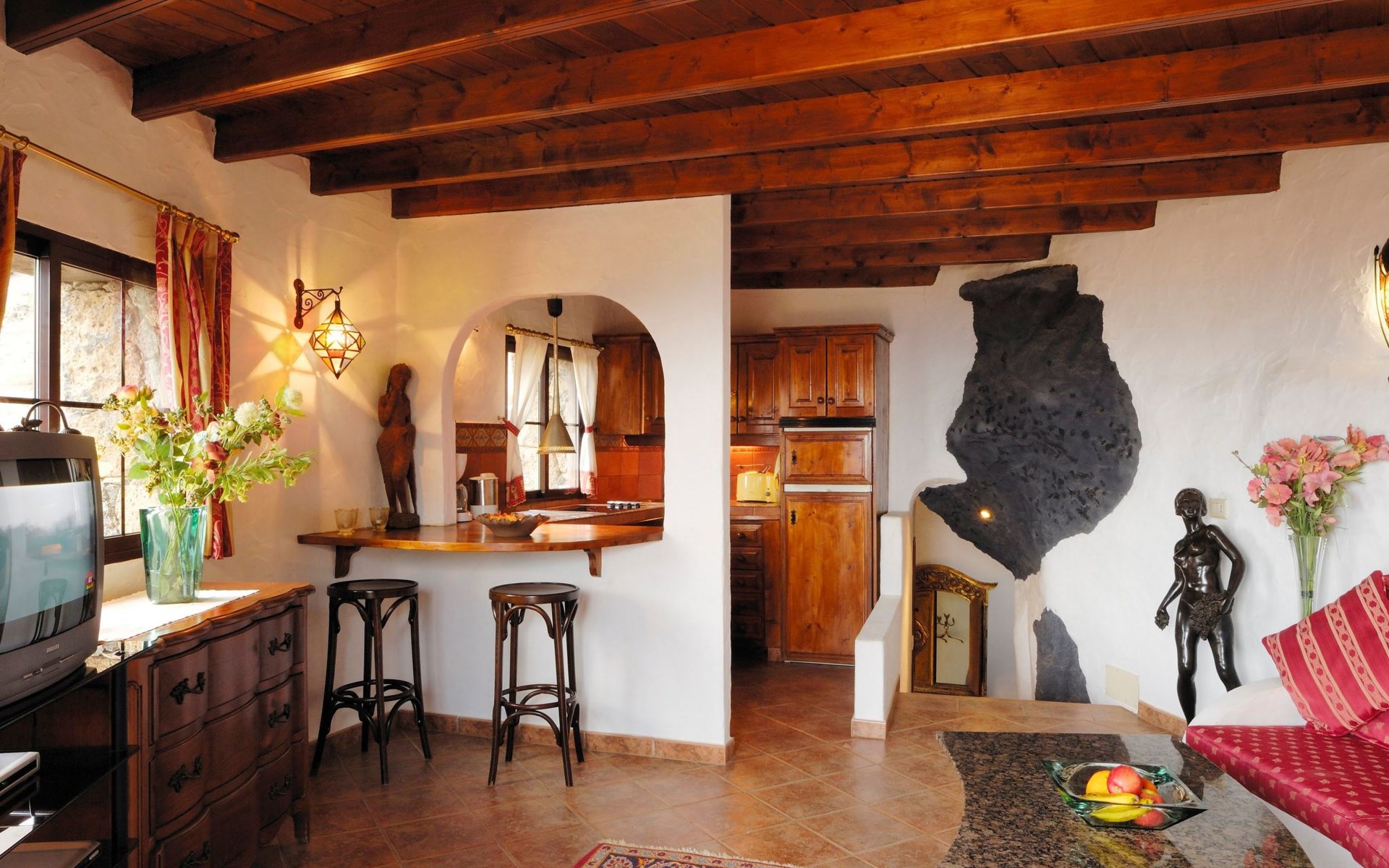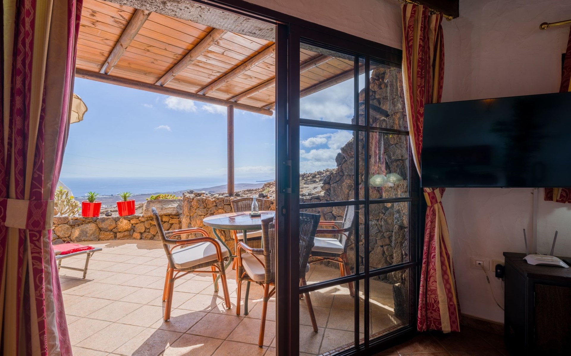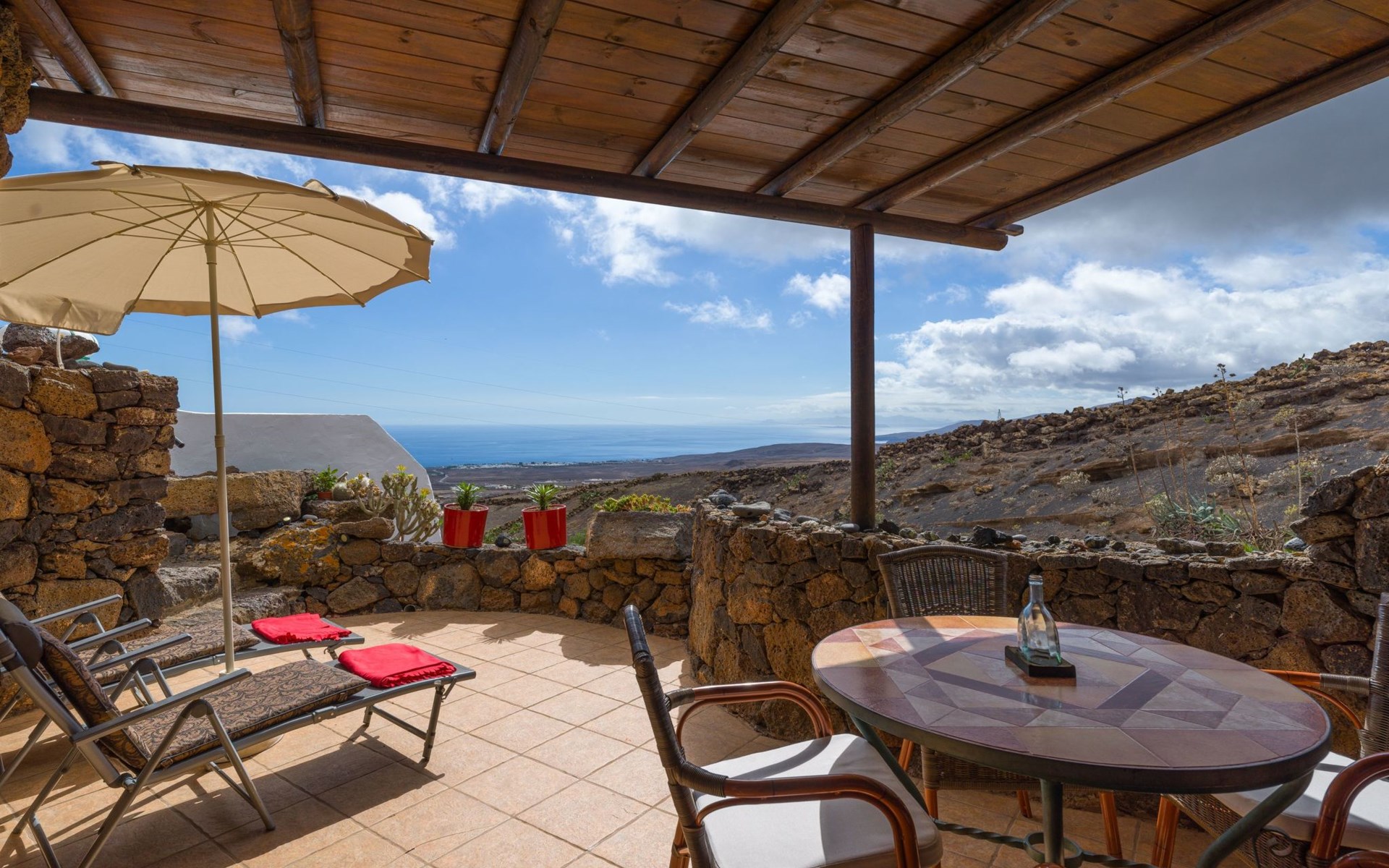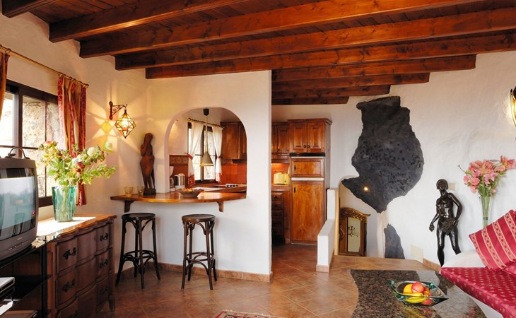 Das Innere des Castillo Lanzarote ist ein Zeugnis für Luxus und Komfort. Das ruhige Ambiente ist das Ergebnis der nahtlosen Integration der Inneneinrichtung in die natürliche Umgebung. Ein Schlafzimmer in einer vulkanischen Höhle sorgt für eine einzigartige romantische Atmosphäre. Das Anwesen ist mit einem temperaturgeregelten, beheizten Pool für das ganze Jahr über, ultraschnellem Glasfaser-Wi-Fi und Satellitenfernsehen ausgestattet, um sowohl Freizeit- als auch Arbeitsbedürfnisse zu befriedigen. Mit zwei gemütlichen Schlafzimmern und einem raffinierten Duschraum bietet dieser Innenraum Ruhe, Komfort und Stil für Familien, Freunde oder romantische Ausflüge.