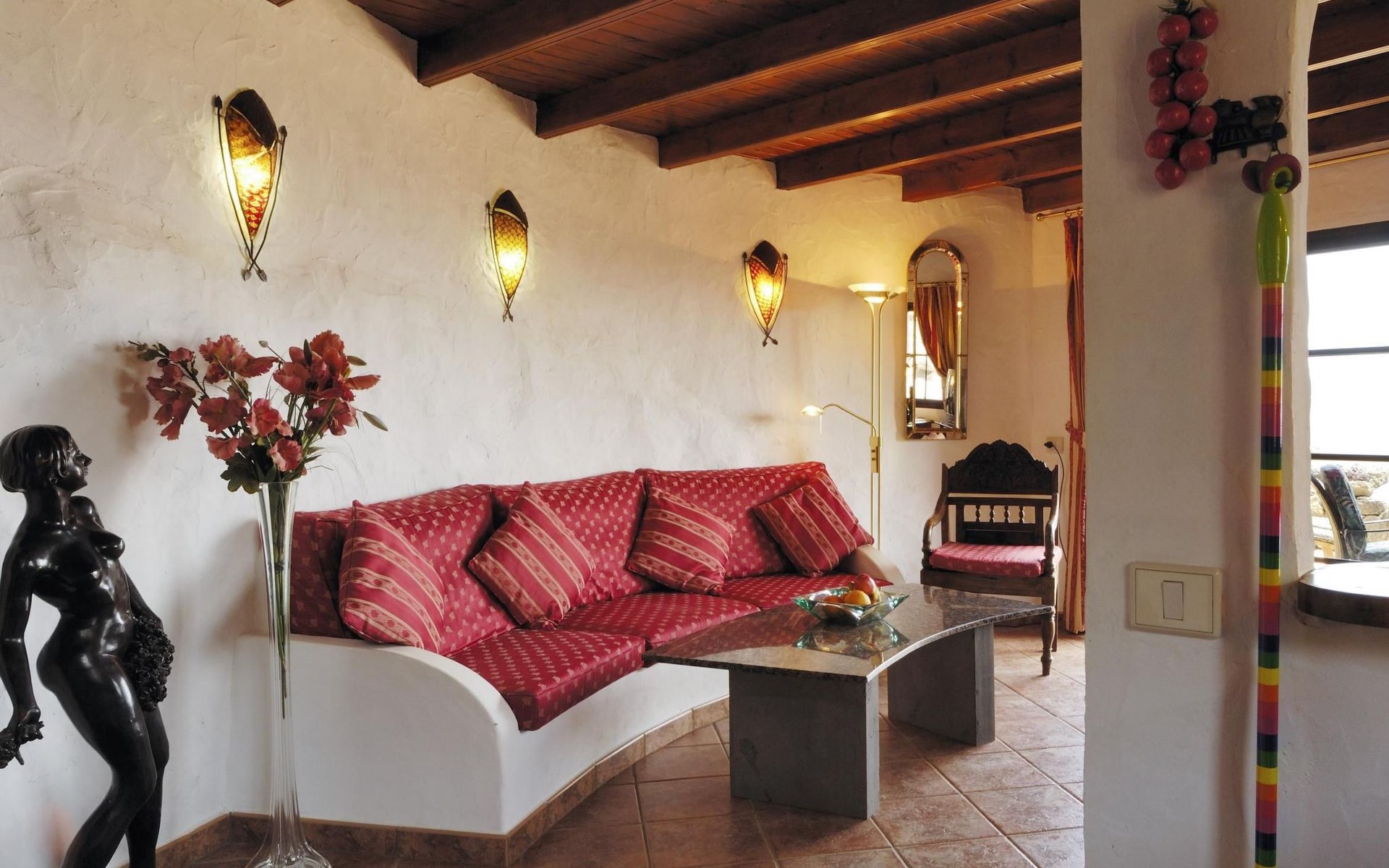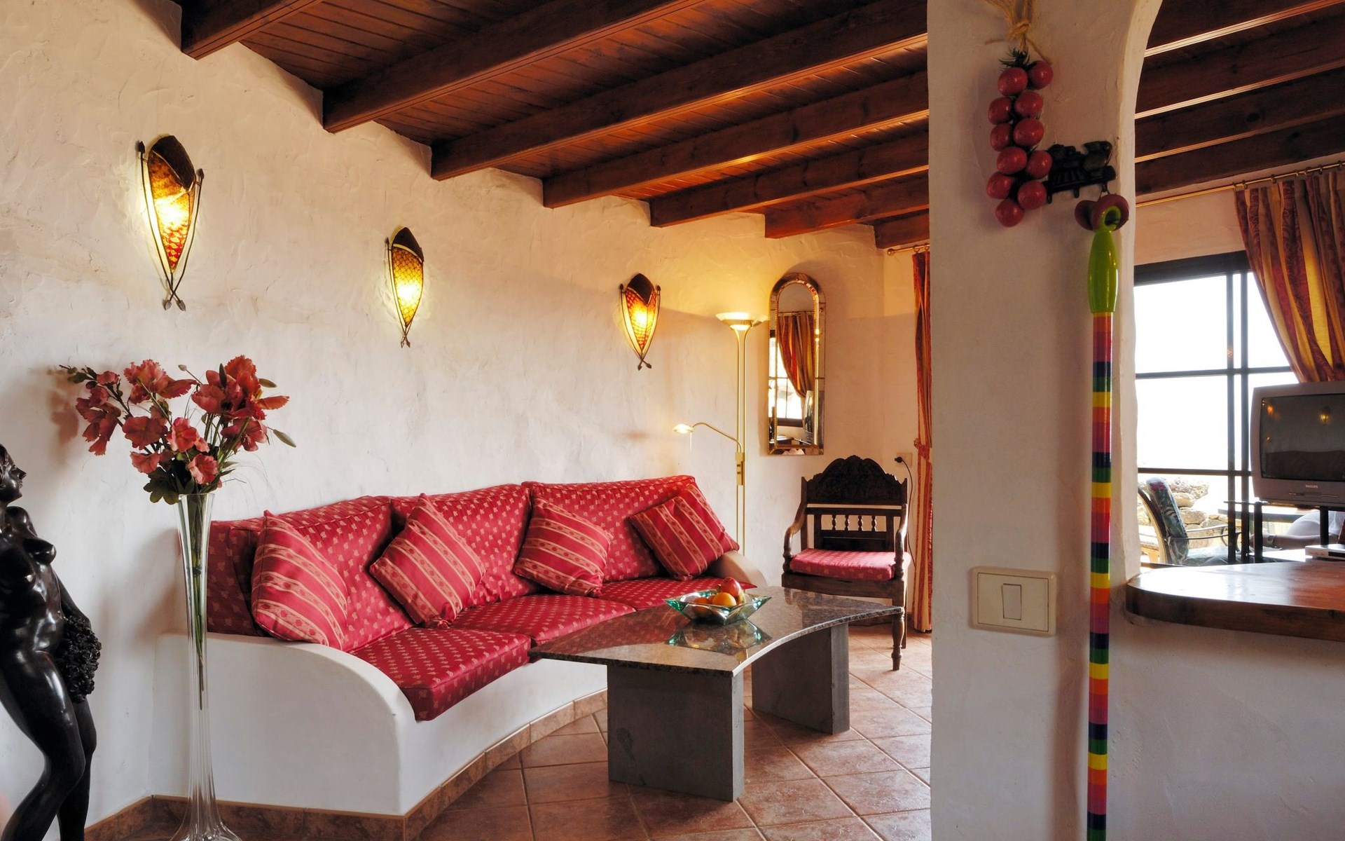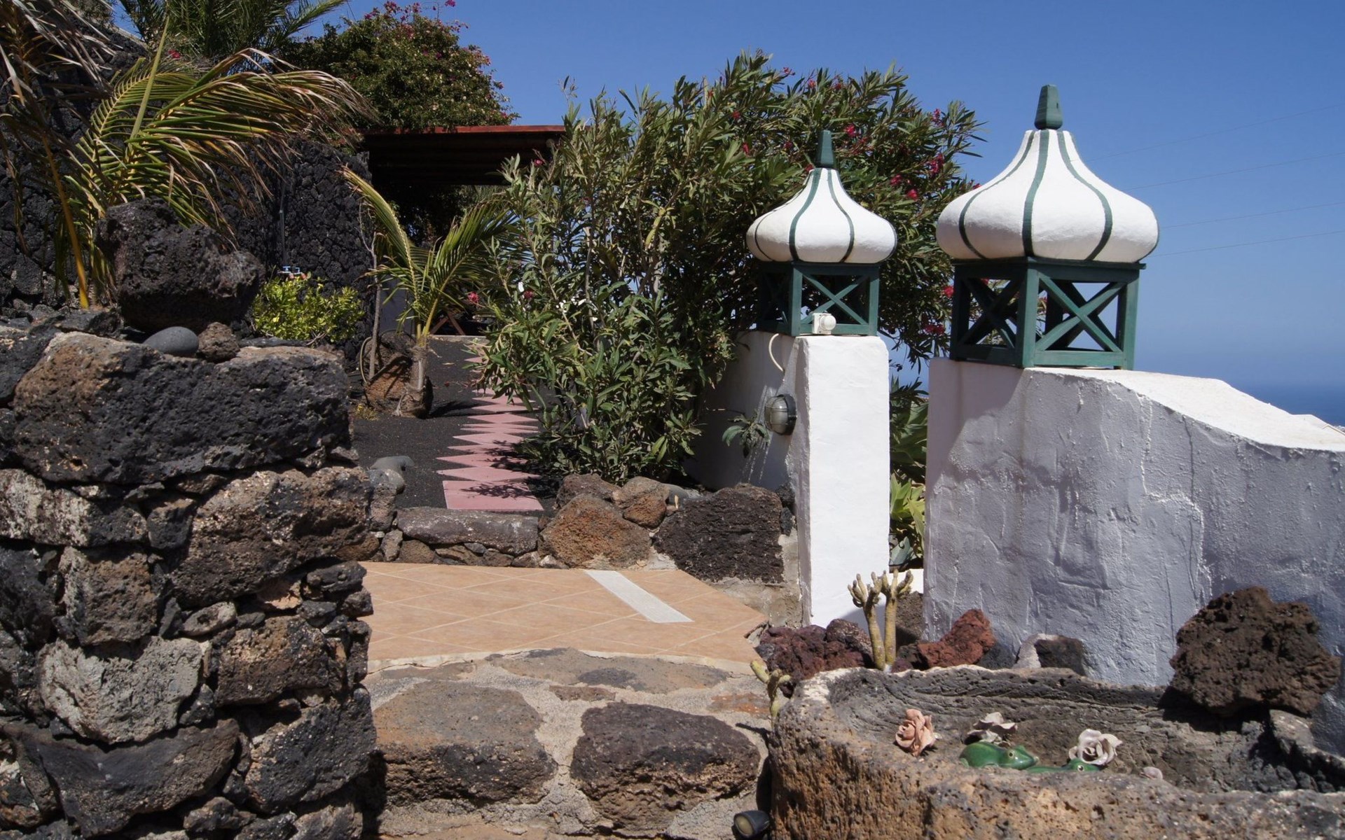 Das Innere des Castillo Lanzarote ist ein Zeugnis für Luxus und Komfort. Das ruhige Ambiente ist das Ergebnis der nahtlosen Integration der Inneneinrichtung in die natürliche Umgebung. Ein Schlafzimmer in einer vulkanischen Höhle sorgt für eine einzigartige romantische Atmosphäre. Das Anwesen ist mit einem temperaturgeregelten, beheizten Pool für das ganze Jahr über, ultraschnellem Glasfaser-Wi-Fi und Satellitenfernsehen ausgestattet, um sowohl Freizeit- als auch Arbeitsbedürfnisse zu befriedigen. Mit zwei gemütlichen Schlafzimmern und einem raffinierten Duschraum bietet dieser Innenraum Ruhe, Komfort und Stil für Familien, Freunde oder romantische Ausflüge.