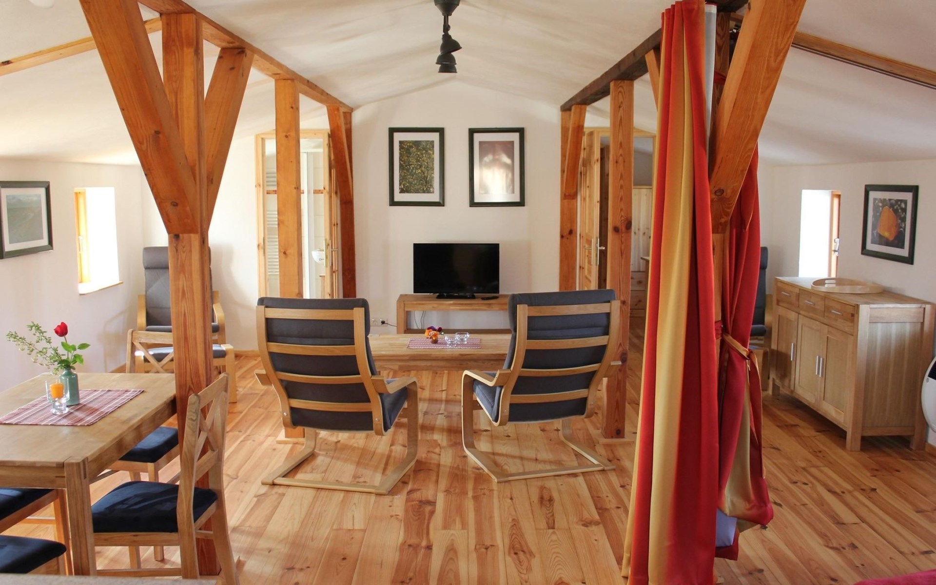 Holzmöbel sorgen in allen Räumen für eine warme, wohnliche Atmosphäre.