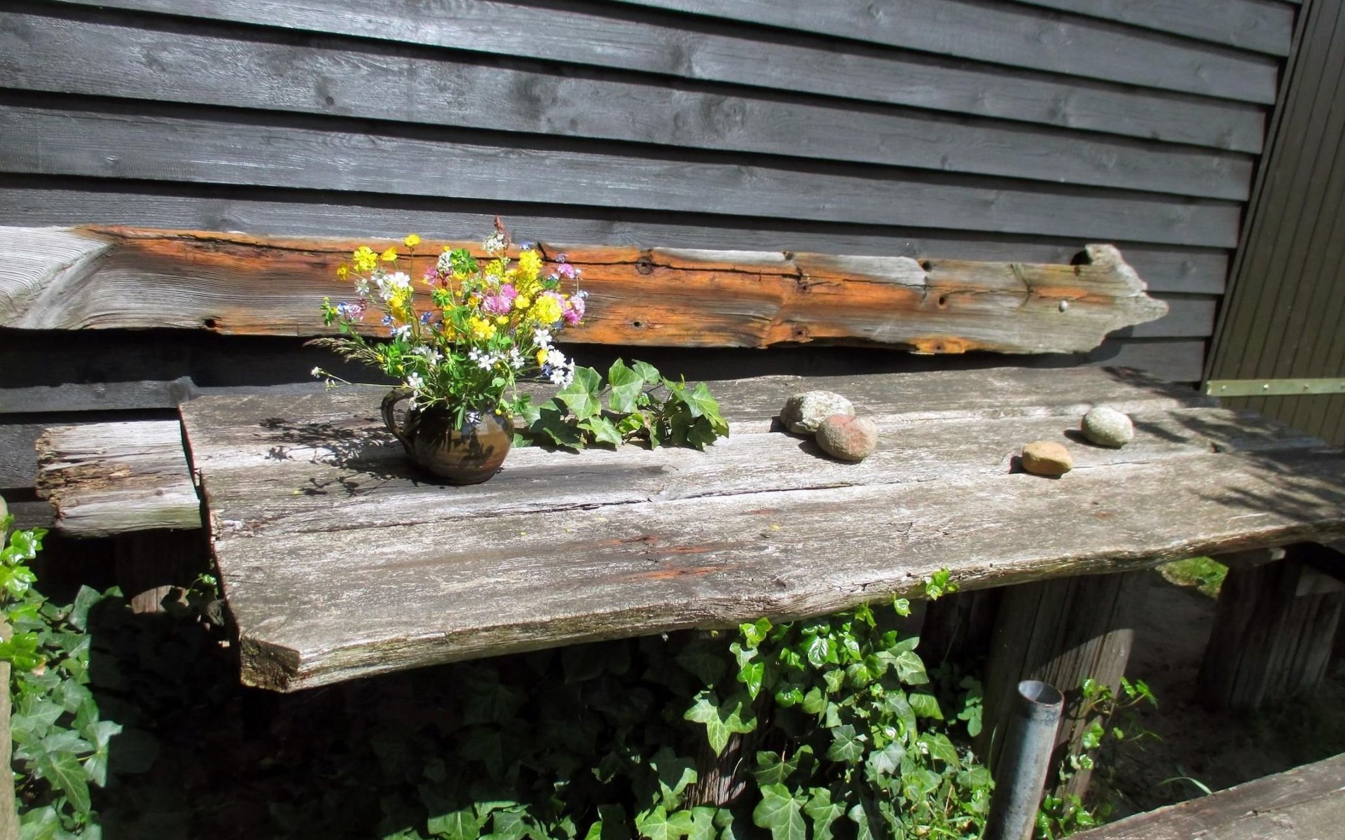 Draußen erwartet Sie ein weitläufiger Hof mit verschiedenen Sitzmöglichkeiten zum Sonnen, Lesen oder einfach zum Durchatmen. Eine rustikale Sitzecke im Garten lädt zum Verweilen ein – und bietet die Möglichkeit, den Tag am Grill ausklingen zu lassen.